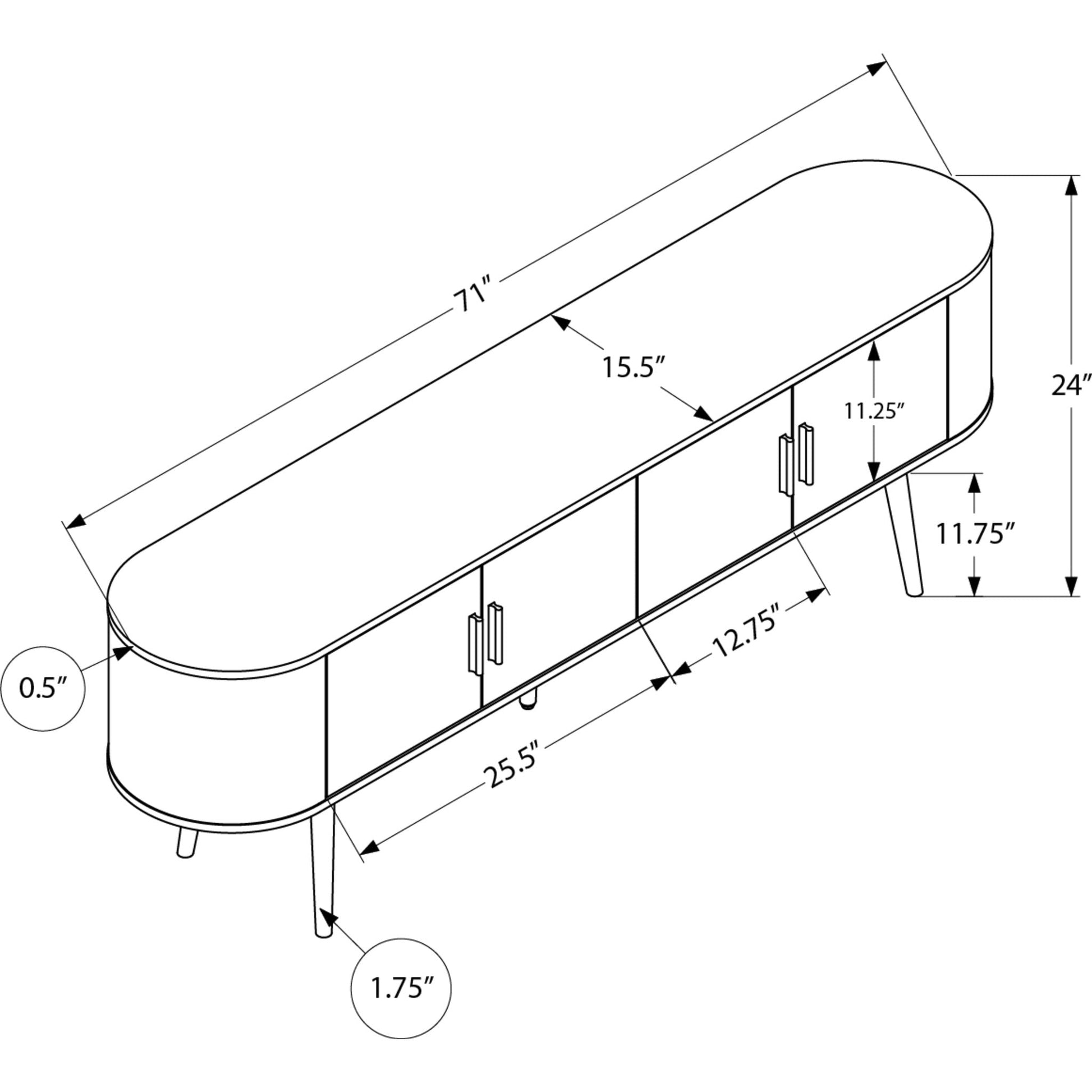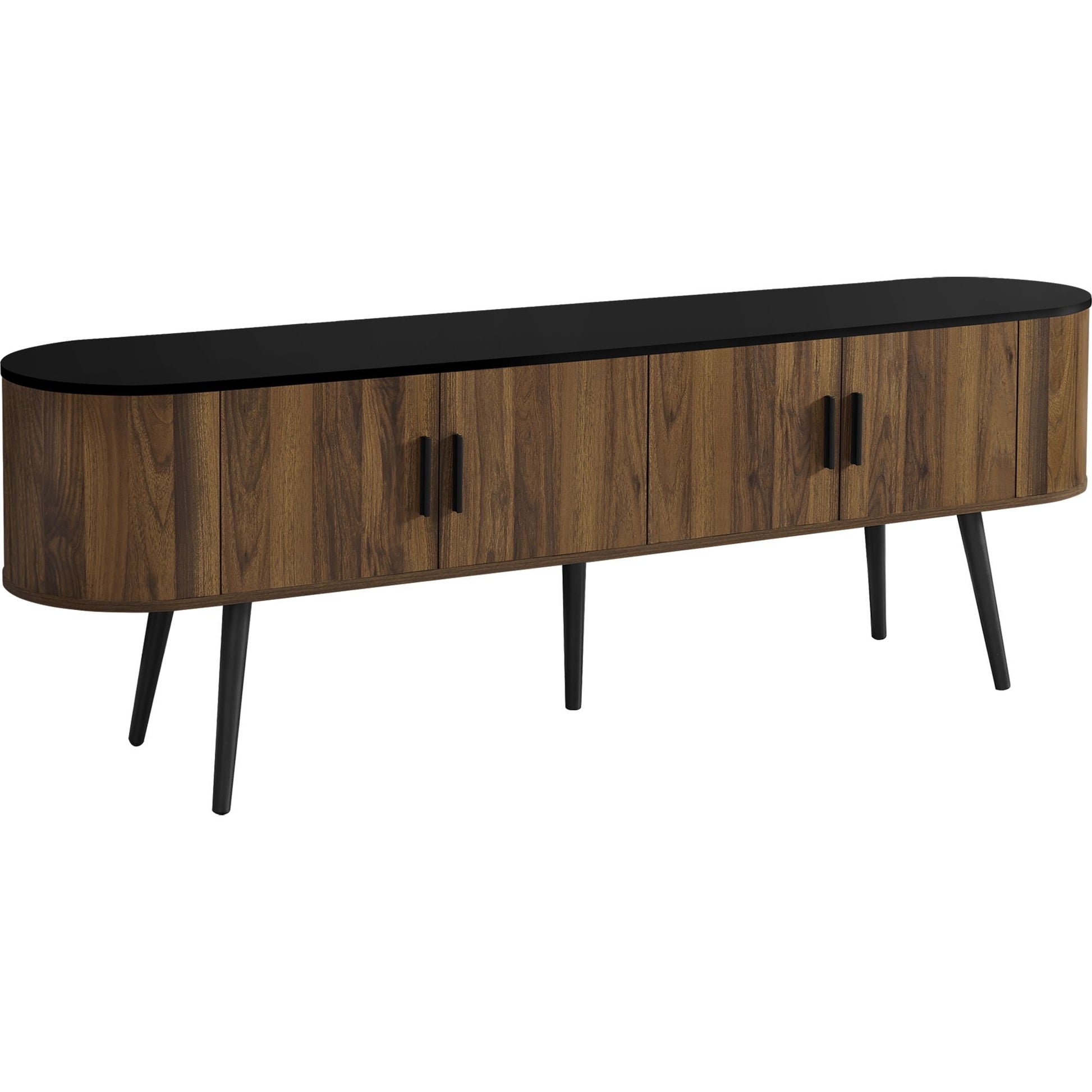 Découvrez notre meuble TV élégant et tendance qui sublimera votre espace de vie ! Cette console de 72 pouces est conçue pour durer avec des pieds en bois massif noir et une construction robuste pour une qualité durable. Son design bicolore, avec son plateau en stratifié noir lisse et facile à nettoyer, et ses 4 portes en stratifié imitation bois de noyer, dotées d'élégantes poignées noires, ajoute une touche rétro à votre décoration. Organisez votre salon grâce à de spacieux rangements et à deux passe-câbles dissimulés pour dissimuler les fils disgracieux. Ses côtés incurvés apportent une touche contemporaine et Mid-Century à ce meuble TV, le complétant parfaitement pour votre chambre ou votre salon. Facile à assembler grâce aux instructions illustrées, aux protections de sol et à toute la quincaillerie incluses, ce meuble TV offre également des rangements fermés pour un espace de divertissement soigné et élégant.