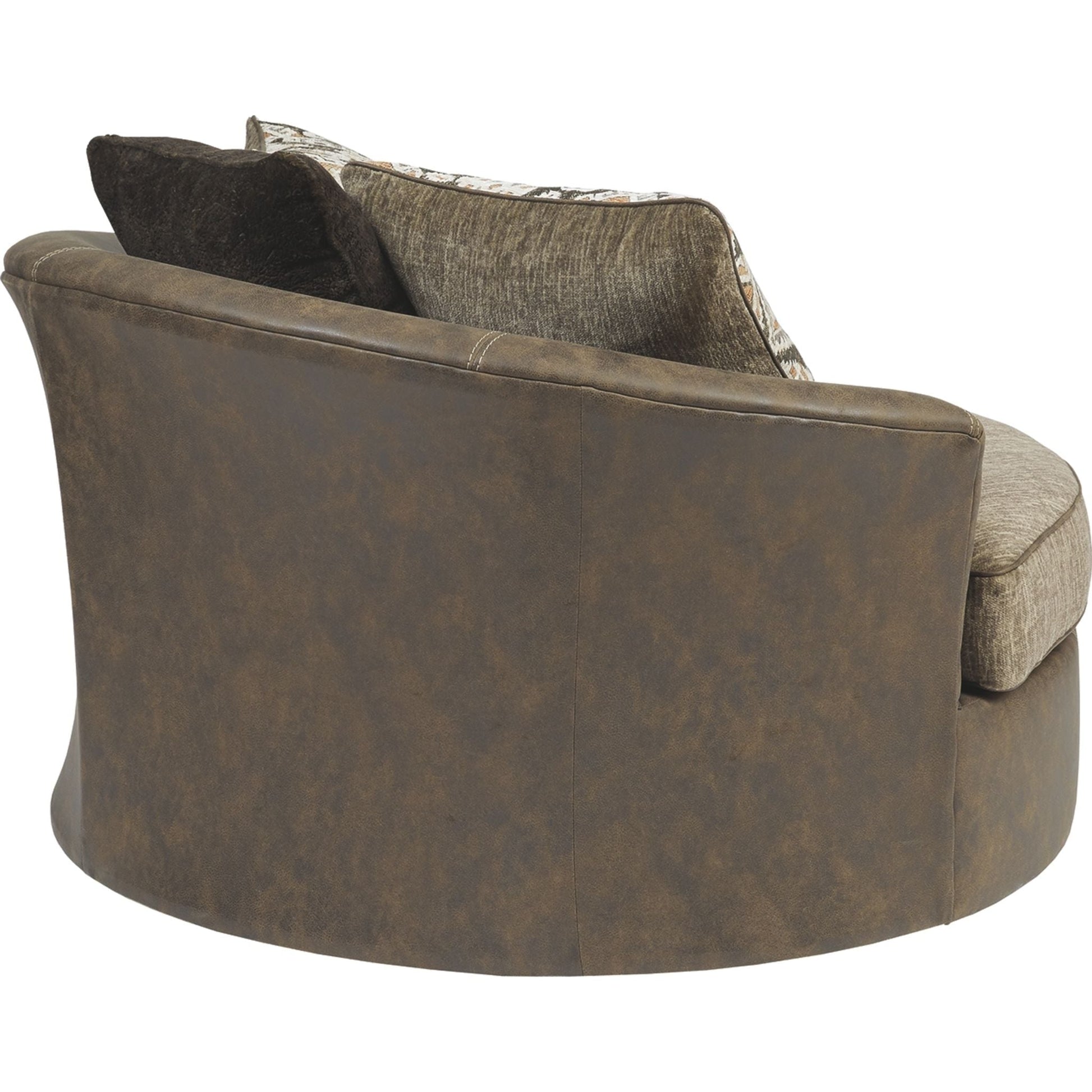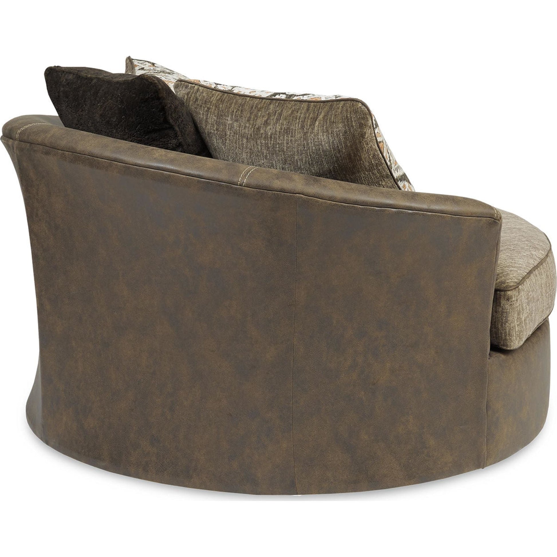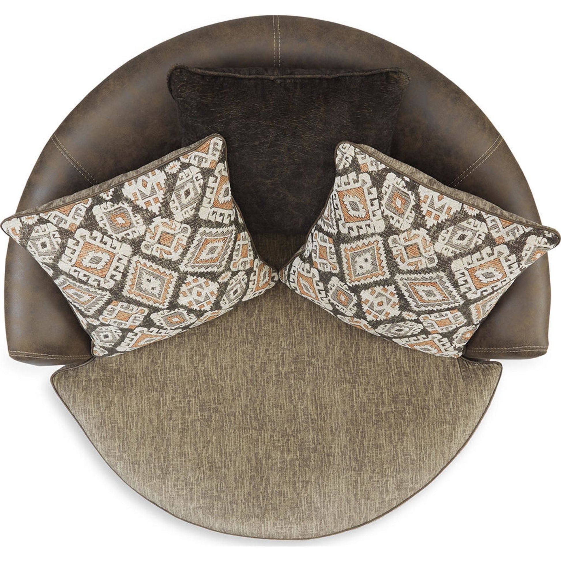 On dit qu'on ne peut pas tout avoir. Ce fauteuil d'appoint pivotant surdimensionné au style indulgent ne partage pas cet avis. Alliant style décontracté et ambiance chaleureuse et cosy, ce fauteuil résolument moderne est le compromis idéal. Son similicuir robuste est rehaussé d'un traitement patiné et de surpiqûres contrastées. Rassurez-vous, un coussin spacieux enveloppé de chenille moelleuse offre une sensation de confort incomparable. Des coussins décoratifs design rehaussent l'esthétique.