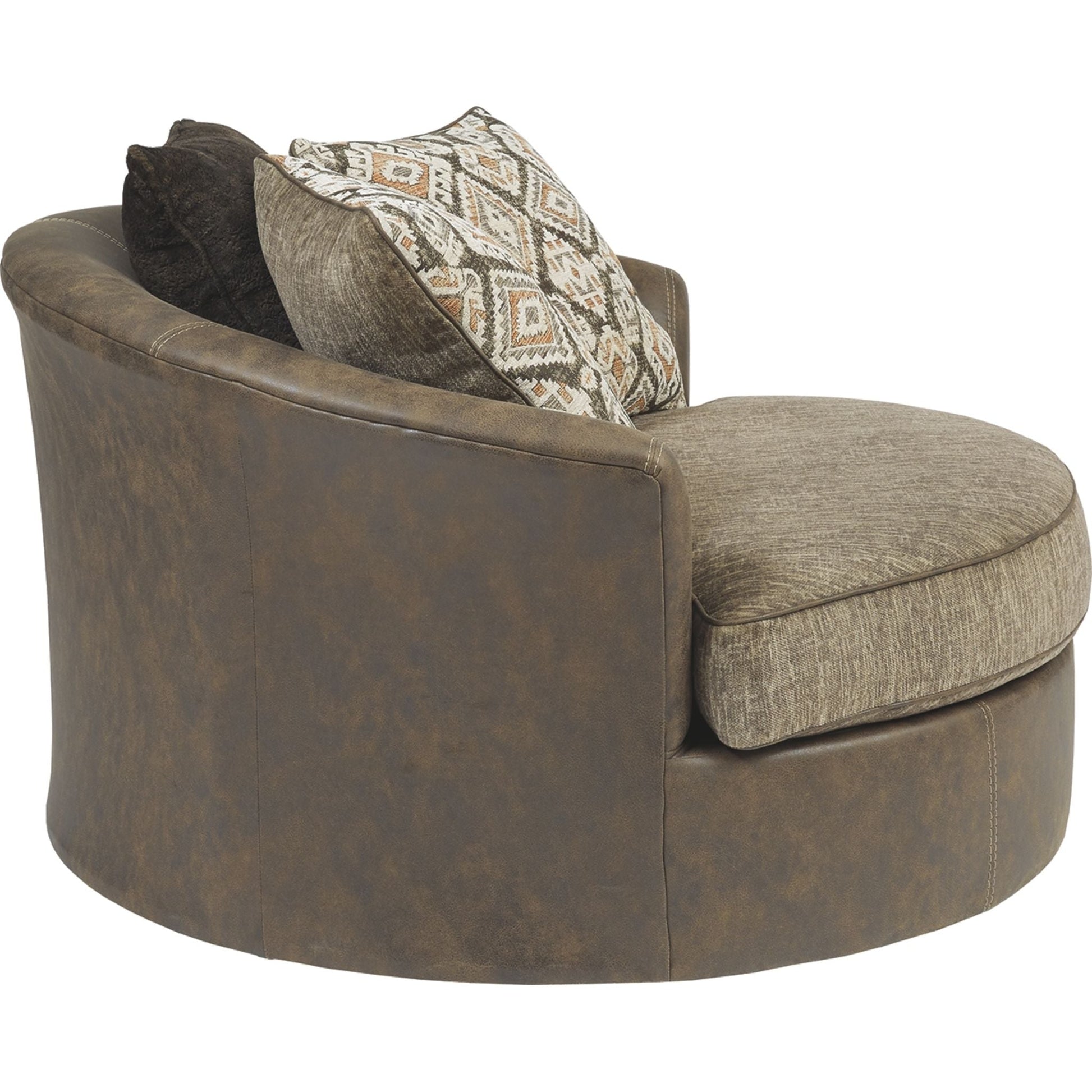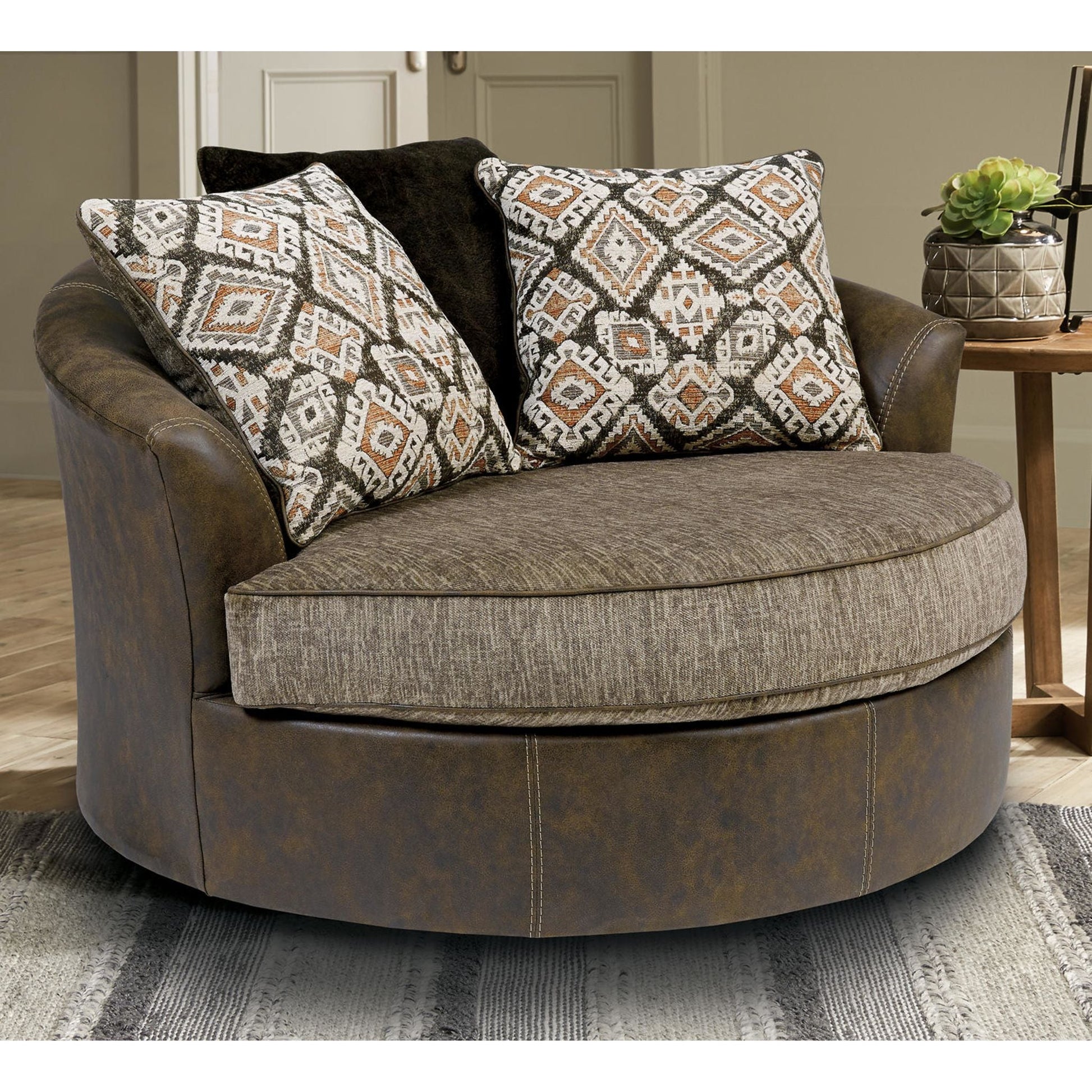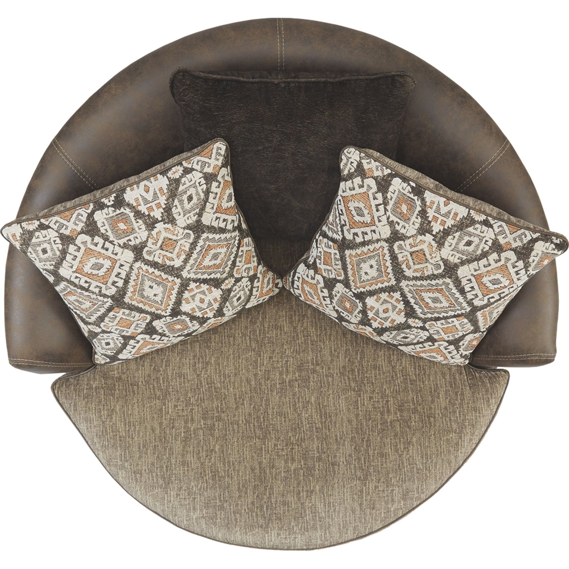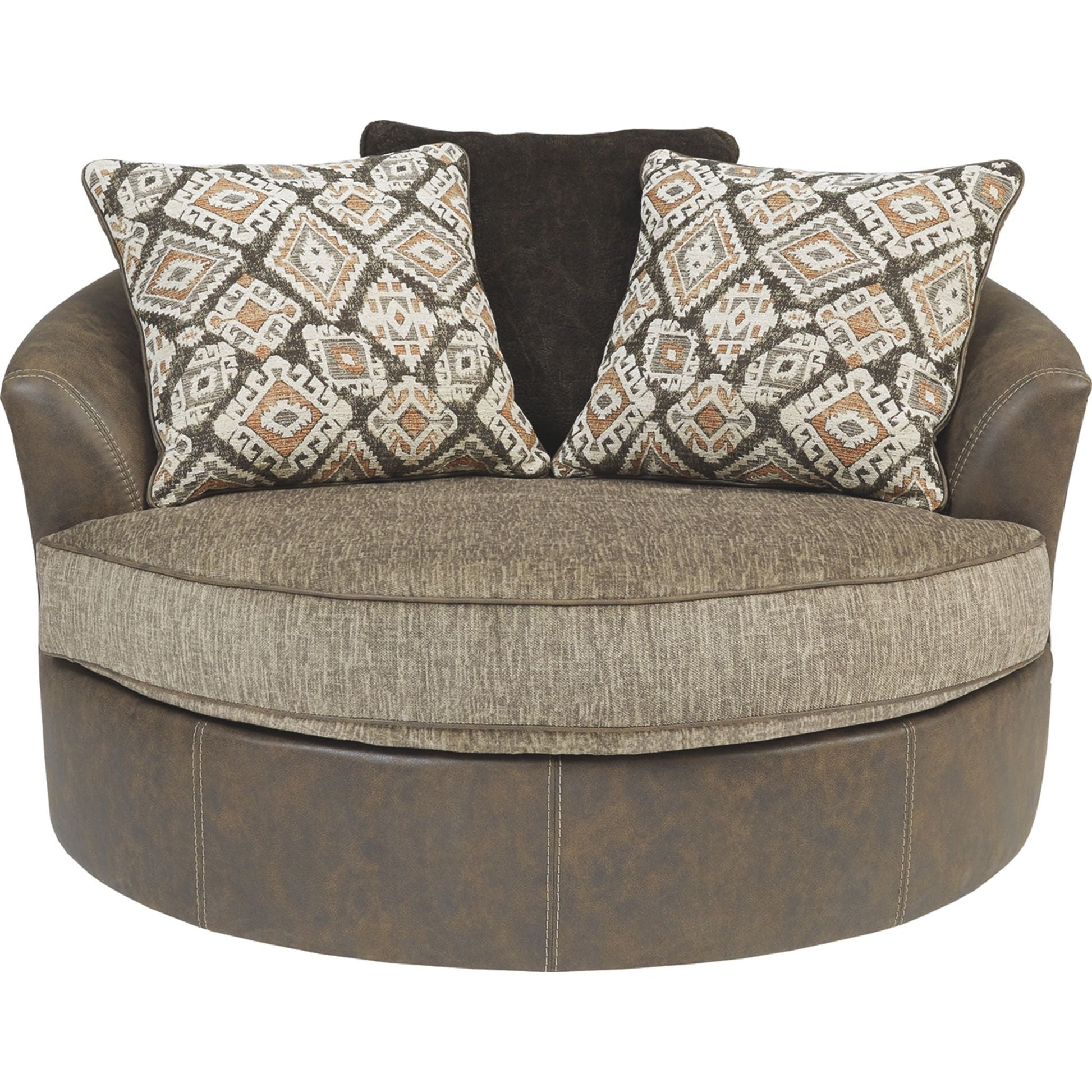 On dit qu'on ne peut pas tout avoir. Ce fauteuil d'appoint pivotant surdimensionné au style indulgent ne partage pas cet avis. Alliant style décontracté et ambiance chaleureuse et cosy, ce fauteuil résolument moderne est le compromis idéal. Son similicuir robuste est rehaussé d'un traitement patiné et de surpiqûres contrastées. Rassurez-vous, un coussin spacieux enveloppé de chenille moelleuse offre une sensation de confort incomparable. Des coussins décoratifs design rehaussent l'esthétique.