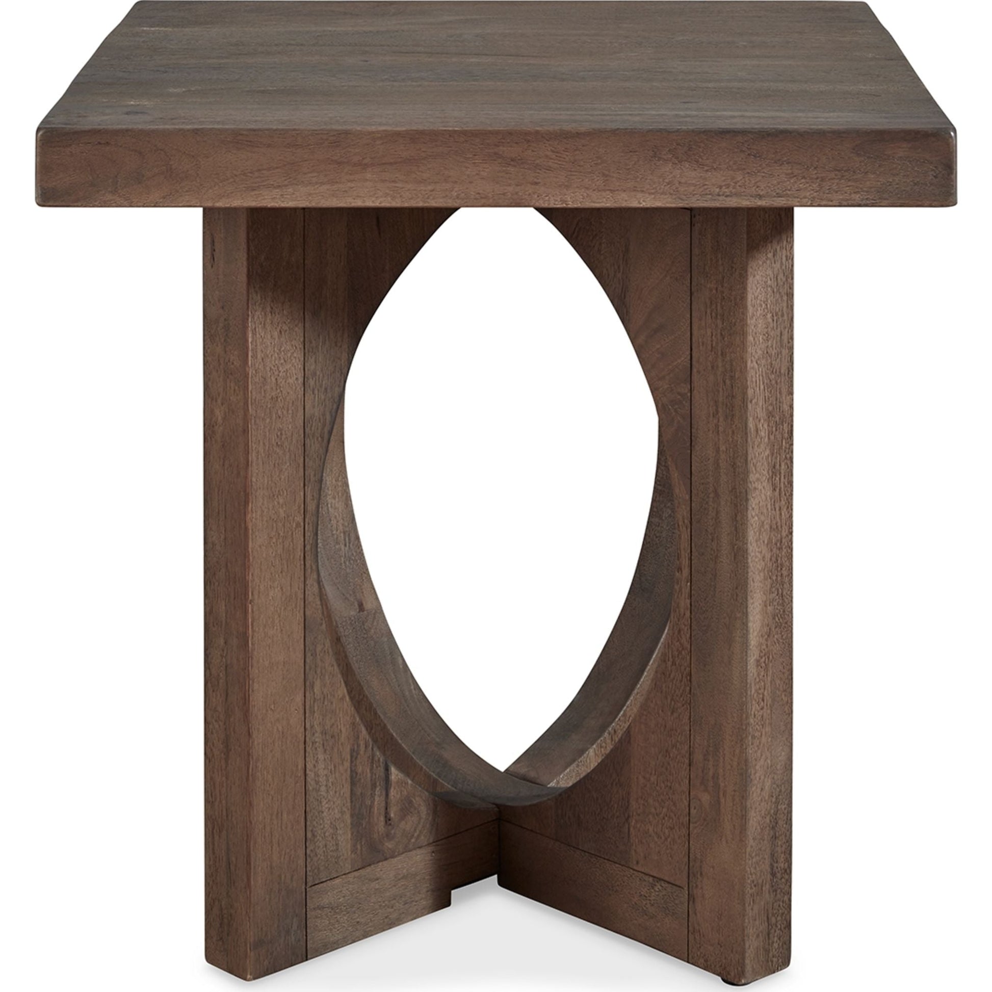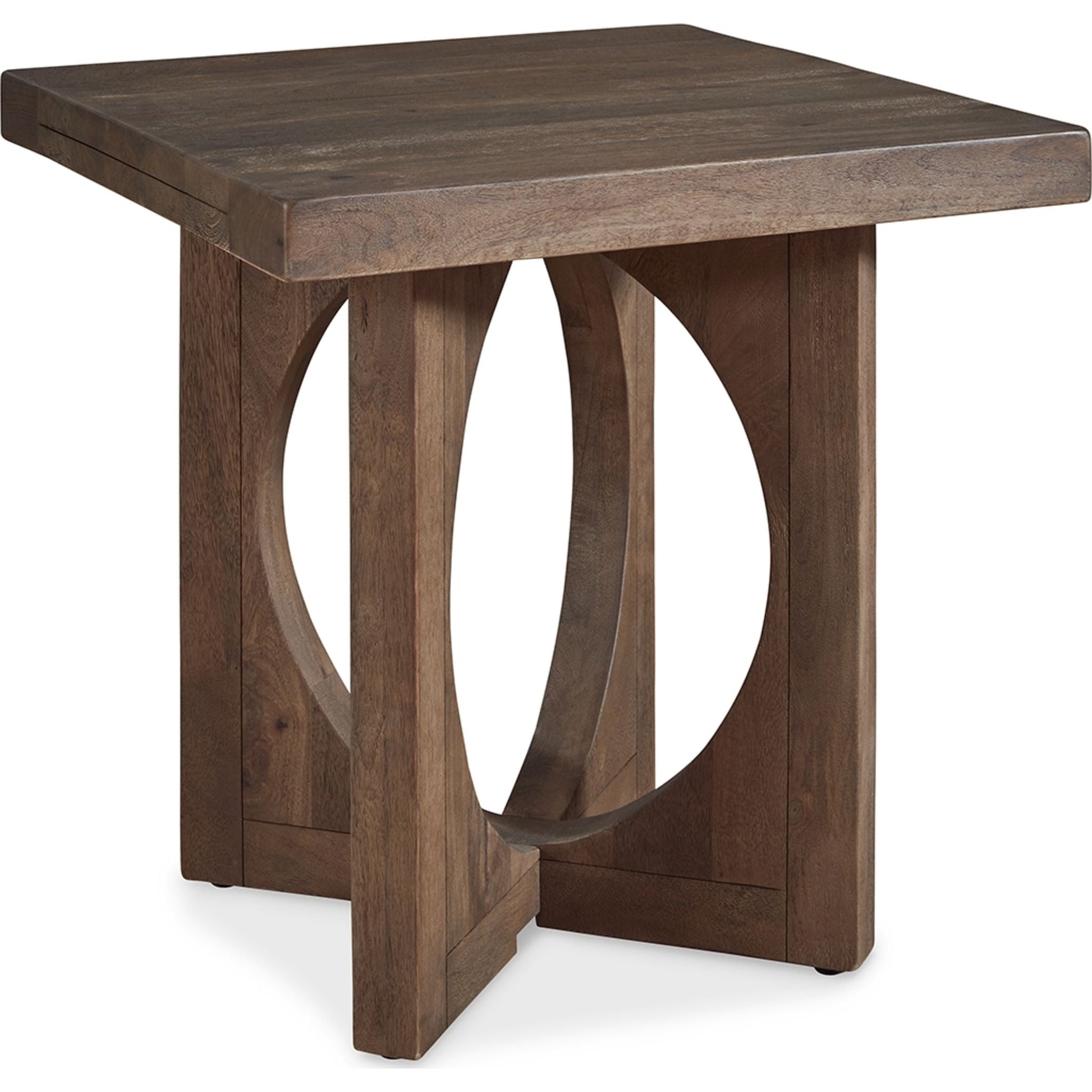 Attirez l'attention avec cette table d'appoint. Avec sa finition brun moyen, cette pièce sculpturale est à la fois une œuvre d'art et une fonction quotidienne. Son imposante base en « X » aux découpes circulaires impressionne par son style géométrique, accueillant lampes, objets de décoration ou essentiels du quotidien avec une touche avant-gardiste.