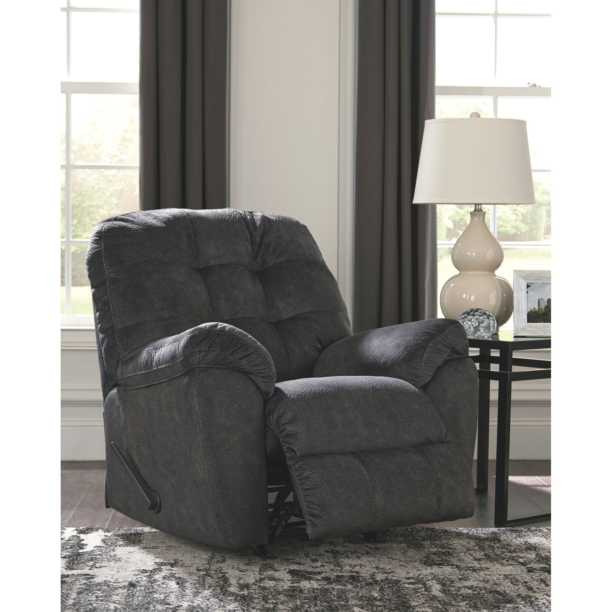 Envie d'un mélange parfait de confort décadent et de style contemporain ? Laissez-vous séduire par ce fauteuil inclinable à bascule sensationnel. Son rembourrage capitonné et ses épais accoudoirs à plateau-coussin allient avec brio style et confort. D'un toucher merveilleusement moelleux, son tissu gris granit est le choix idéal pour un look chic et tendance.