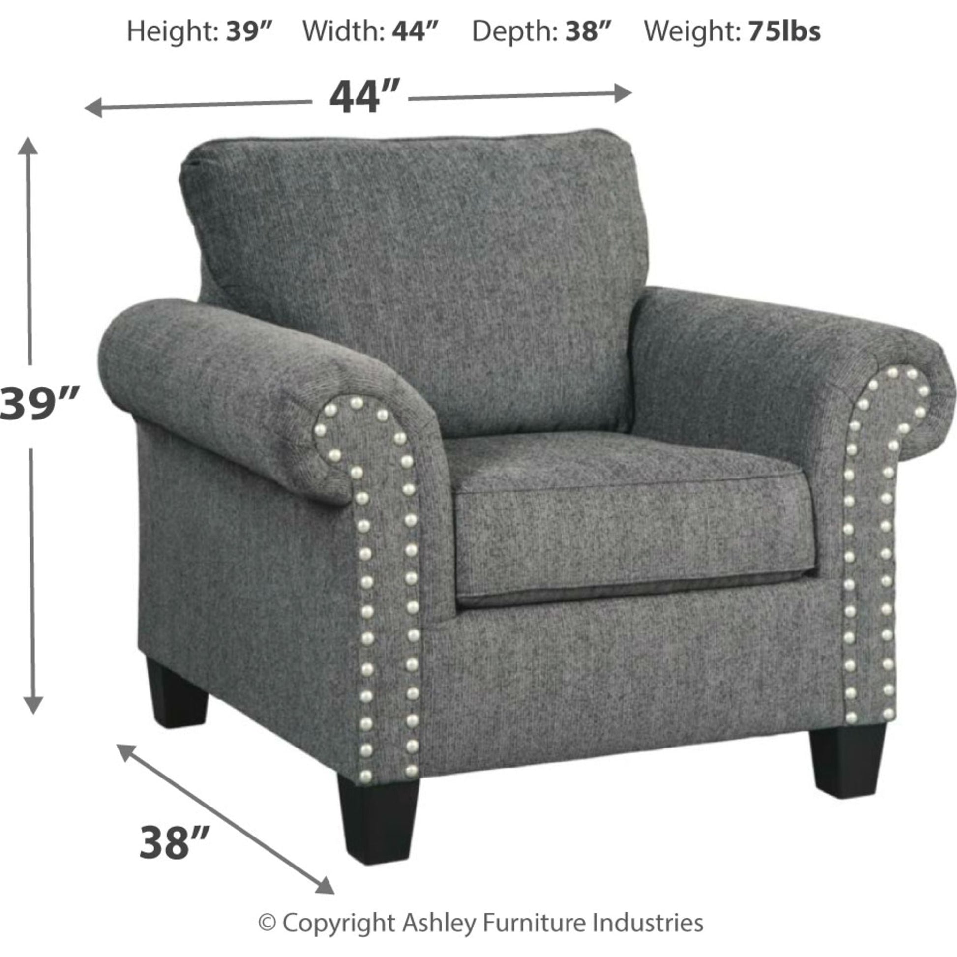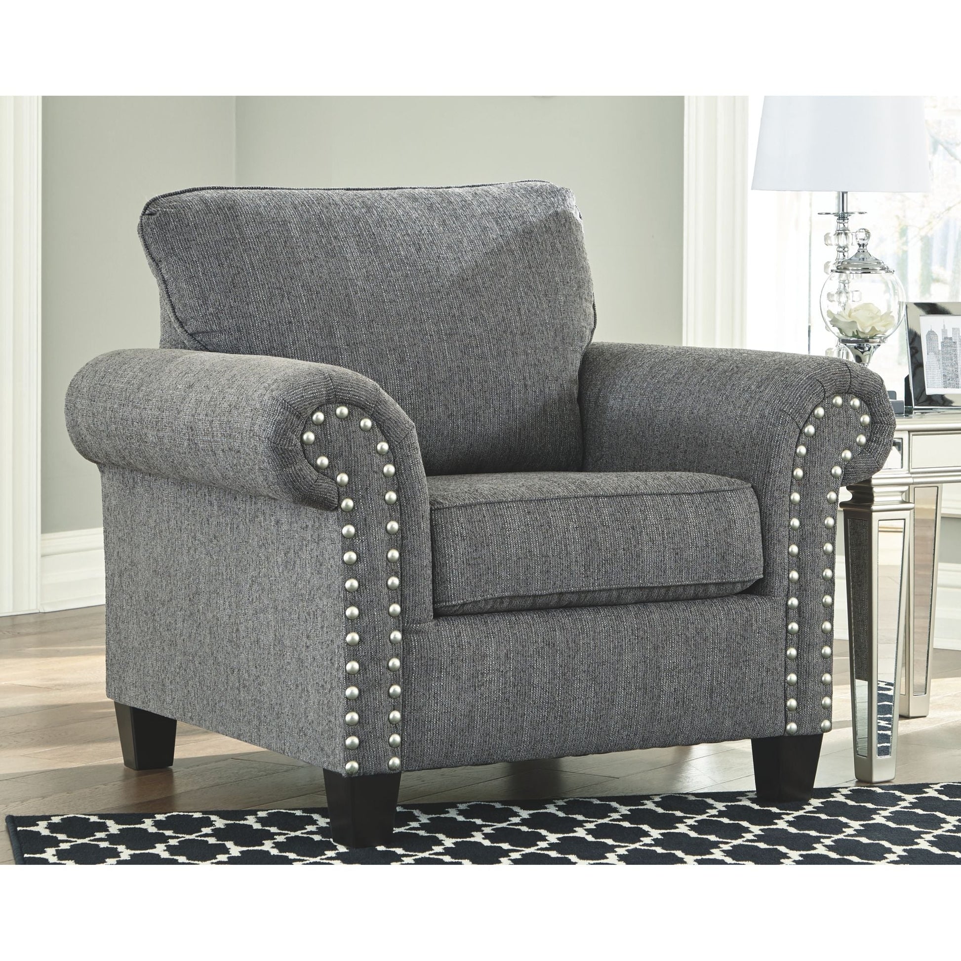 Un rêve contemporain. Cette chaise a tout pour plaire. Son profil design est accentué par des accoudoirs roulés et une finition cloutée couleur étain. Revêtue d'un tissu chenille texturé, elle est à la hauteur de son style. Ses pieds fuselés complètent le style de haut en bas.