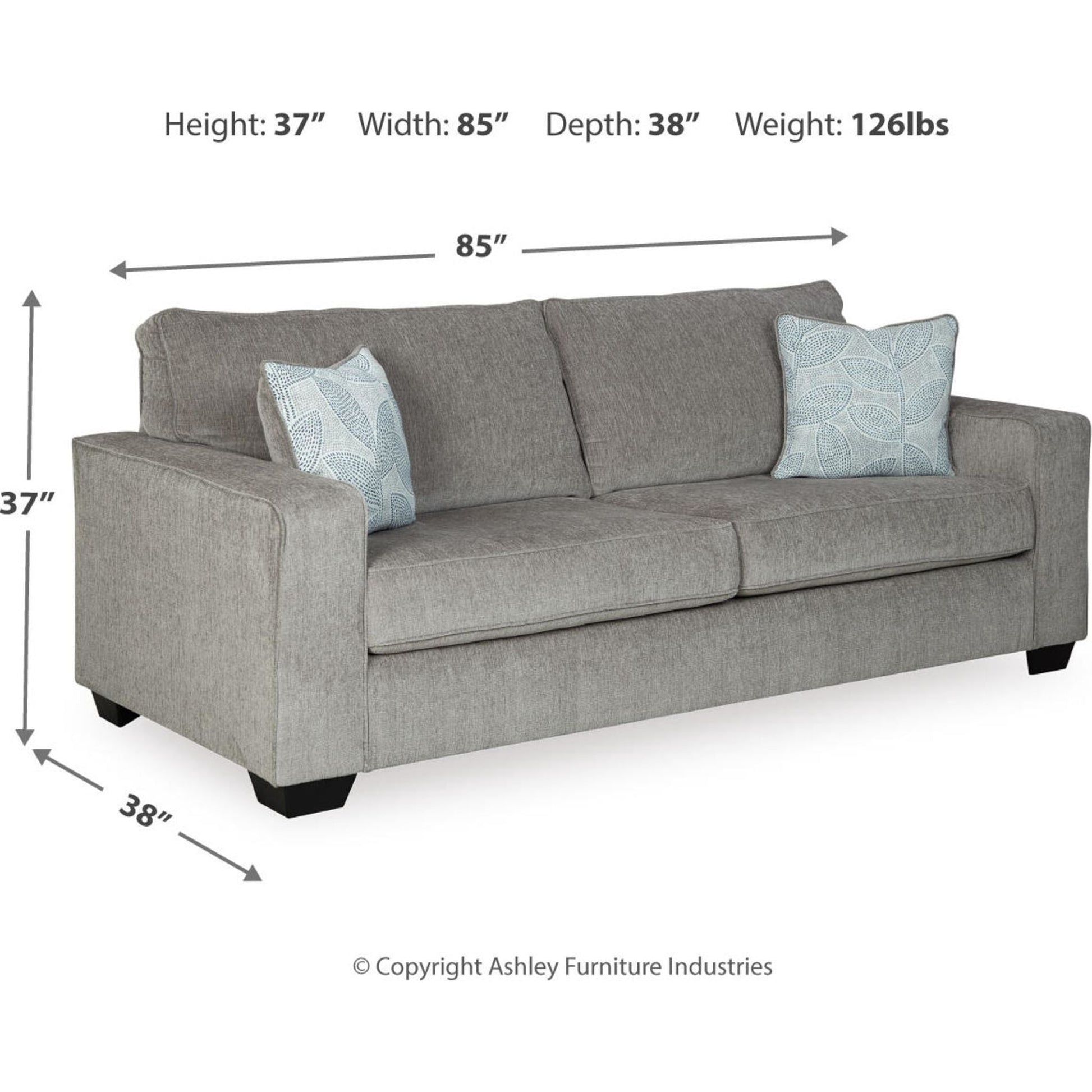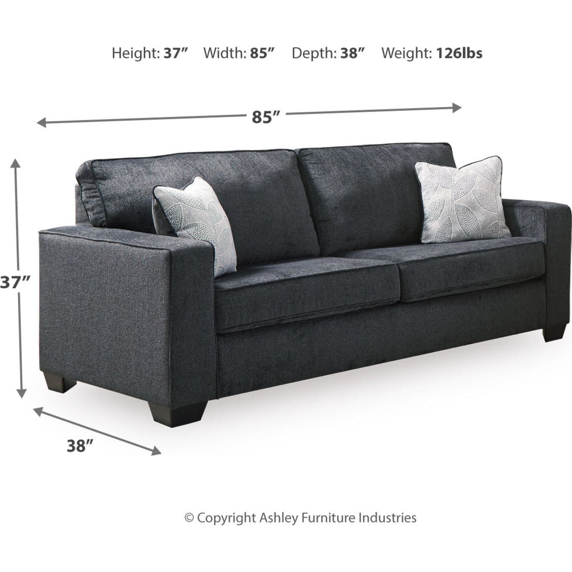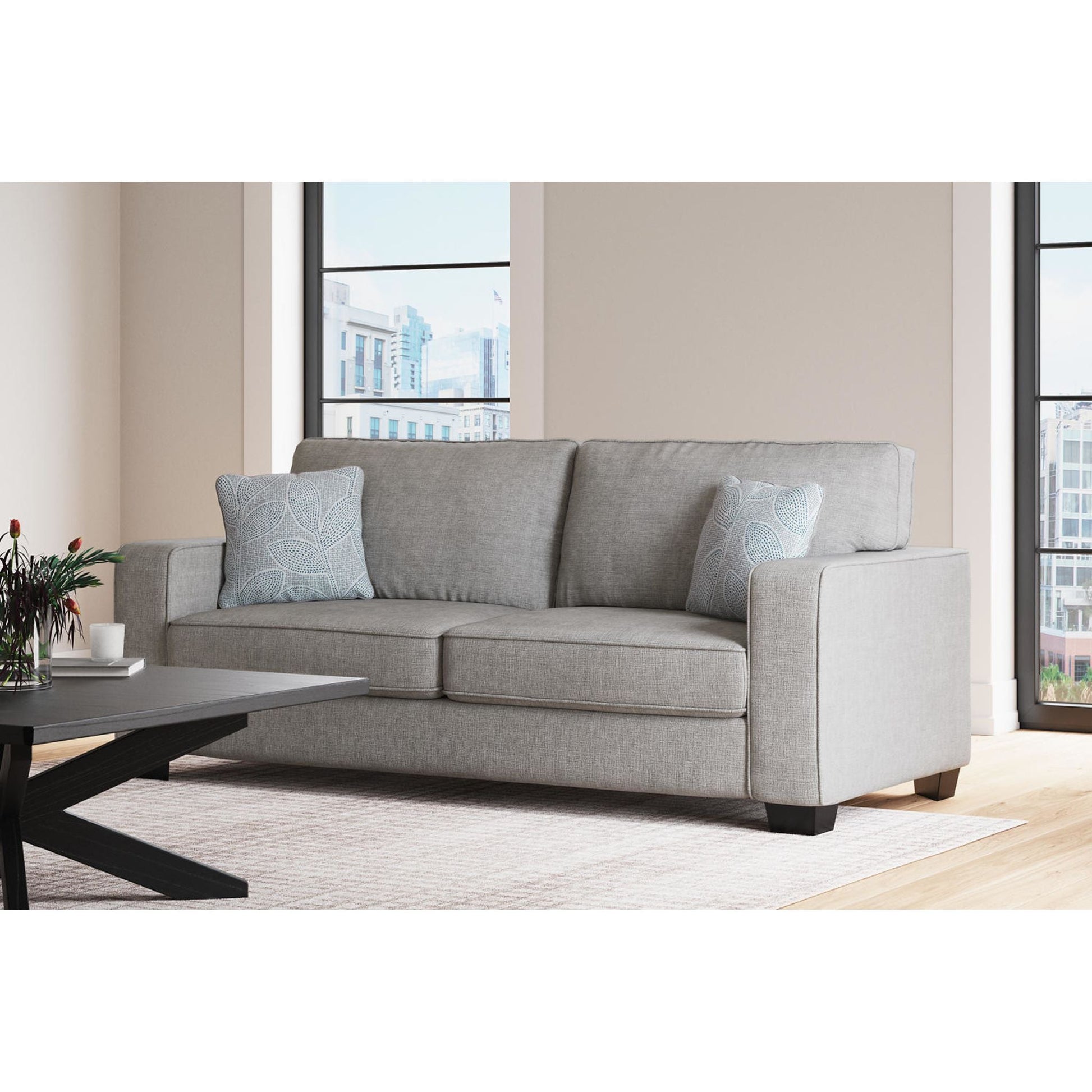 Si le style est une question de style, ce canapé est la solution. Arborant des lignes épurées et des accoudoirs droits, son profil résolument contemporain est rehaussé d'un rembourrage moelleux et d'un revêtement en chenille agréable au toucher. S'harmonisant parfaitement avec de nombreuses palettes de couleurs, ce canapé gris ardoise est accompagné de deux coussins à motifs floraux discrets pour une touche de fraîcheur et de style.