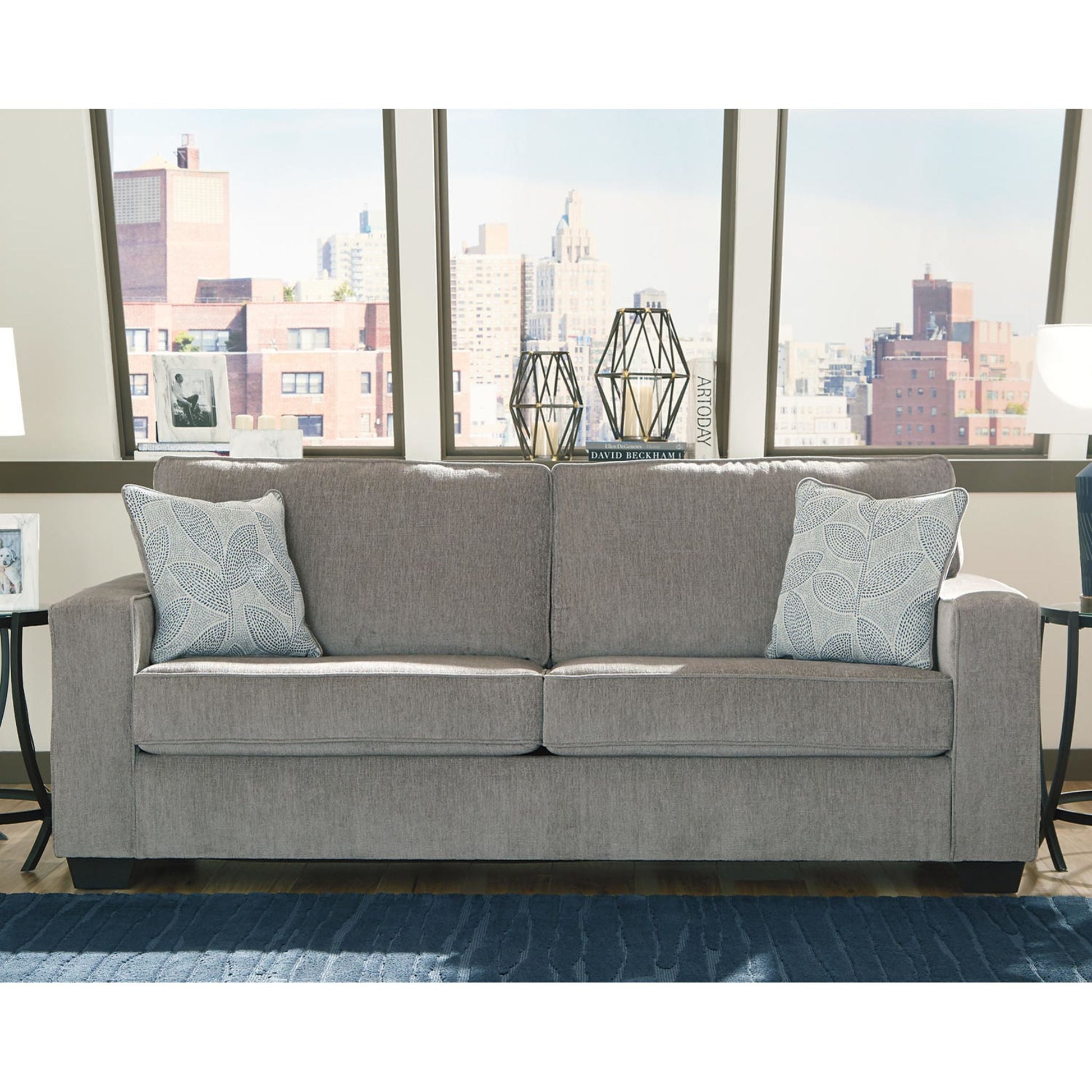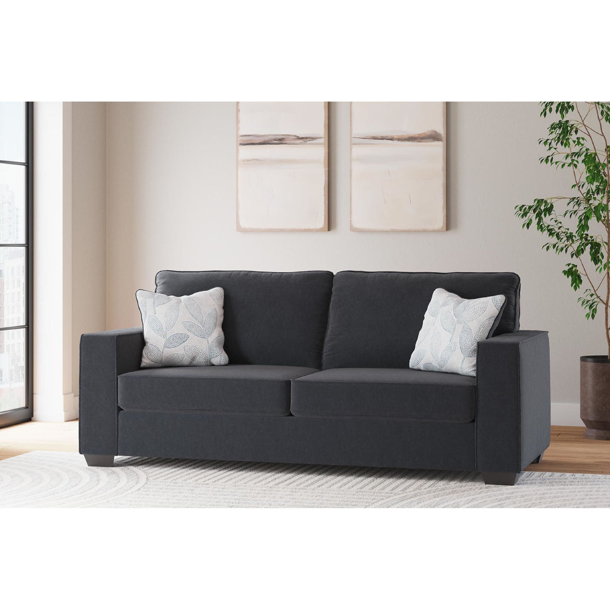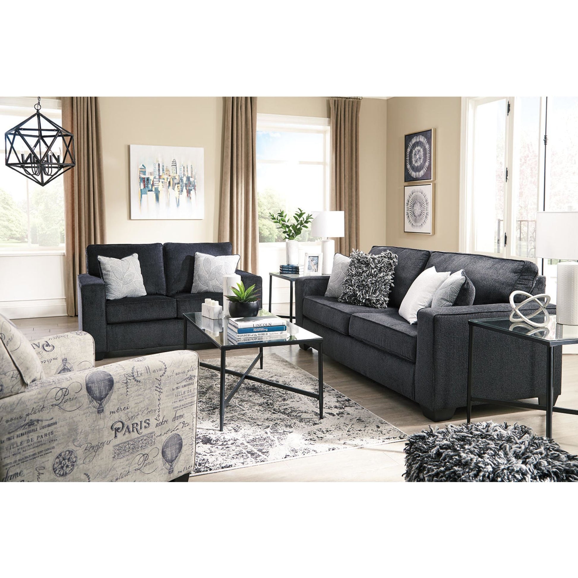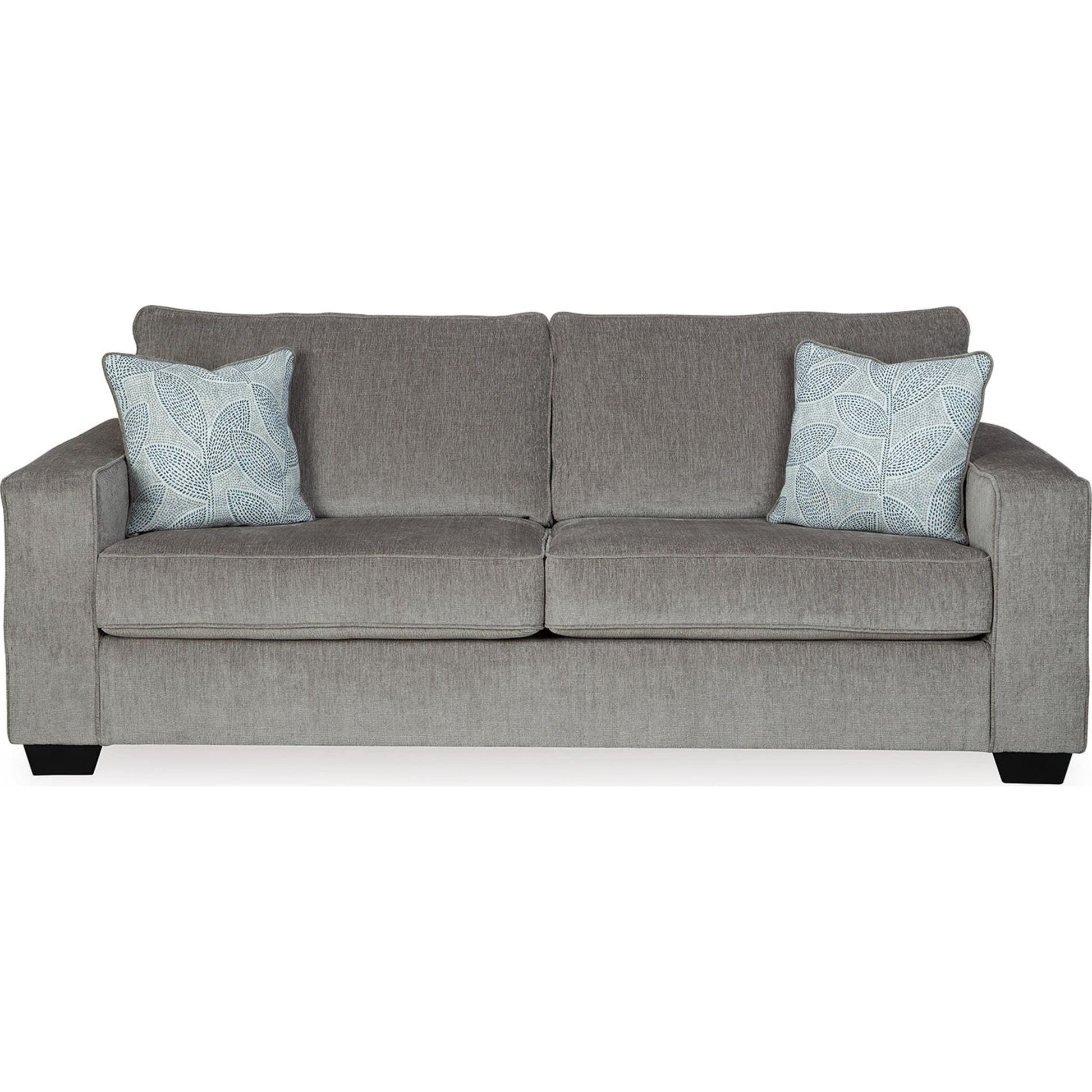 Si le style est une question de style, ce canapé est la solution. Arborant des lignes épurées et des accoudoirs droits, son profil résolument contemporain est rehaussé d'un rembourrage moelleux et d'un revêtement en chenille agréable au toucher. S'harmonisant parfaitement avec de nombreuses palettes de couleurs, ce canapé gris ardoise est accompagné de deux coussins à motifs floraux discrets pour une touche de fraîcheur et de style.
