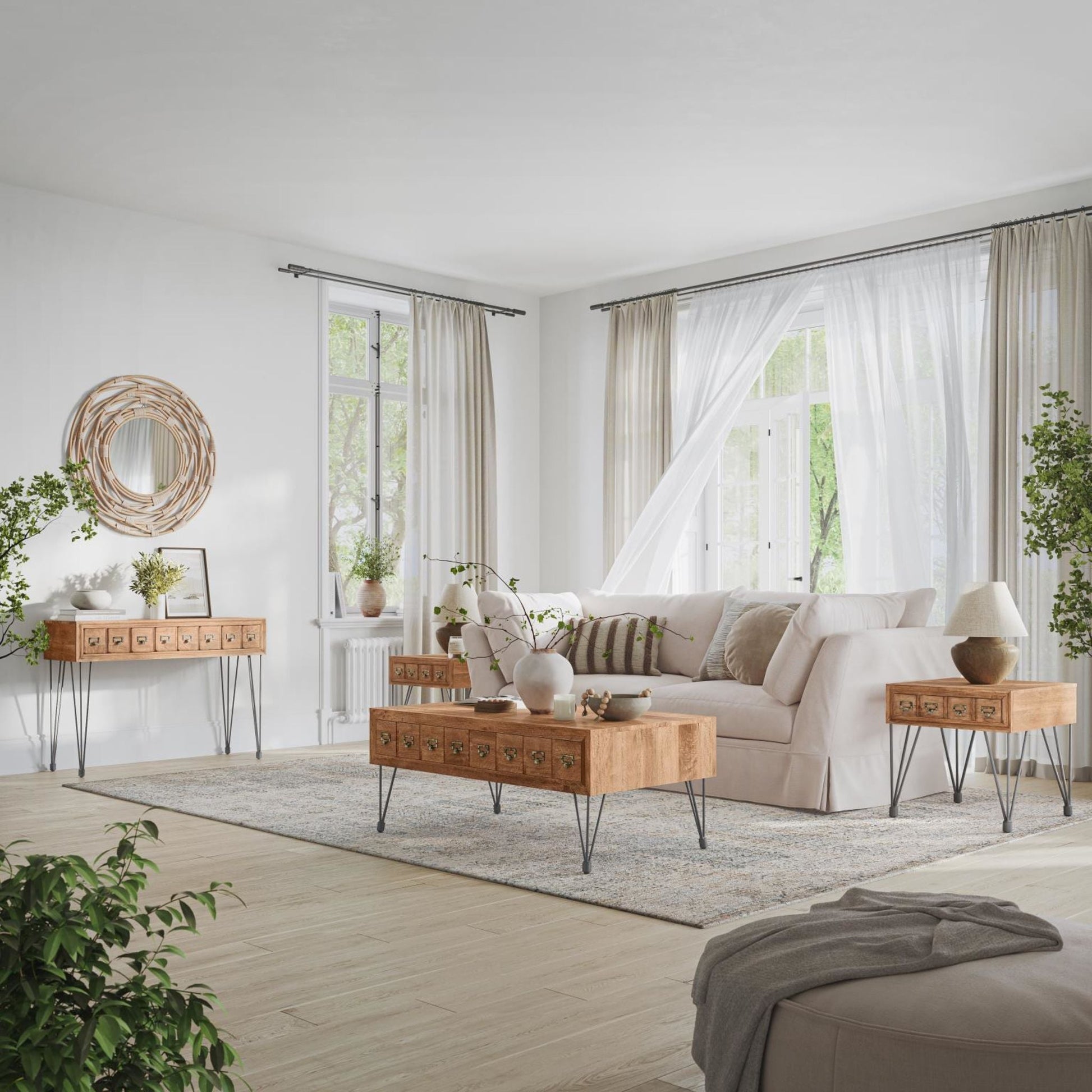 Découvrez la table basse American Vintage, où l'artisanat robuste rencontre le chic industriel. Cette superbe pièce de notre collection American Vintage est composée de bois de manguier massif séché au four, associé à d'élégants pieds en épingle à cheveux industriels et à des détails d'apothicaire. Avec son design fonctionnel et son charme intemporel, cette table basse est un ajout parfait à tout espace de vie.