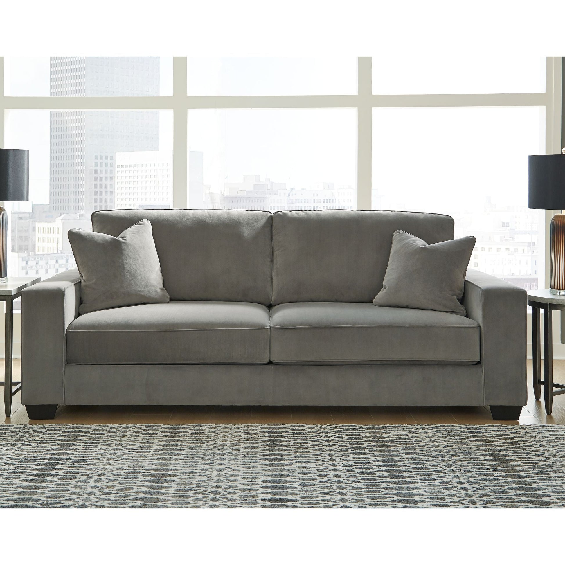 Offrant un style raffiné et haut de gamme à un prix imbattable, ce canapé séduit sous tous les angles. Son design épuré, composé de deux coussins sur deux, ses larges accoudoirs et ses pieds fuselés noirs lui confèrent une esthétique épurée et contemporaine. Son revêtement velouté et doux, d'un élégant gris grès, sublime le style neutre. Les coussins assortis garnis de plumes incarnent l'art du minimalisme.