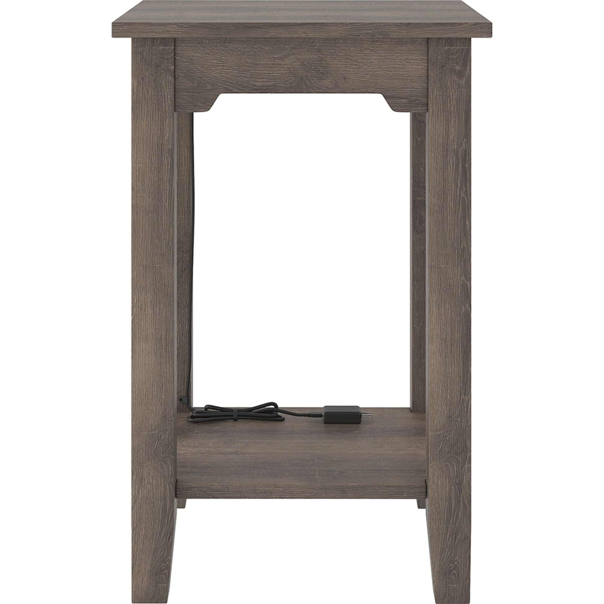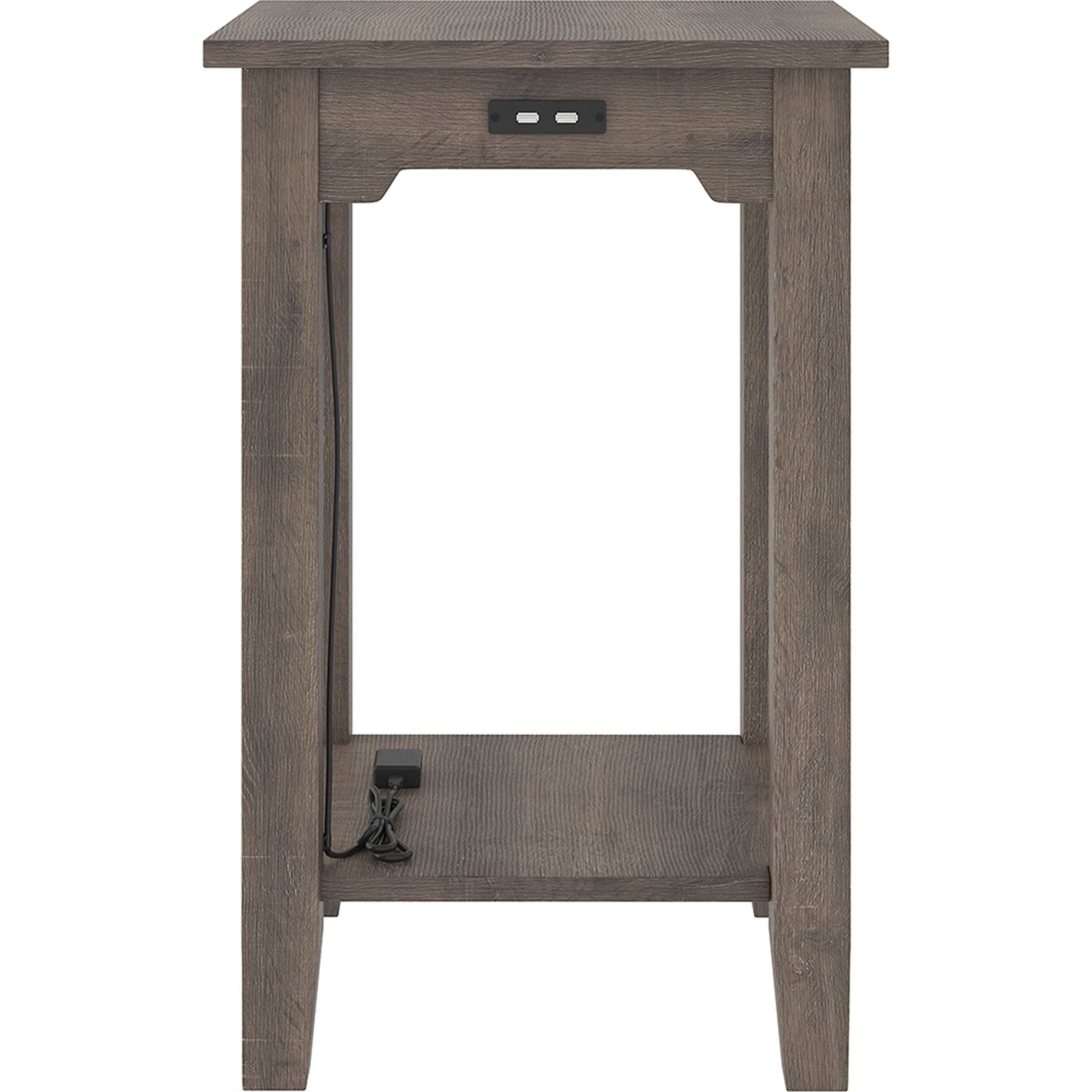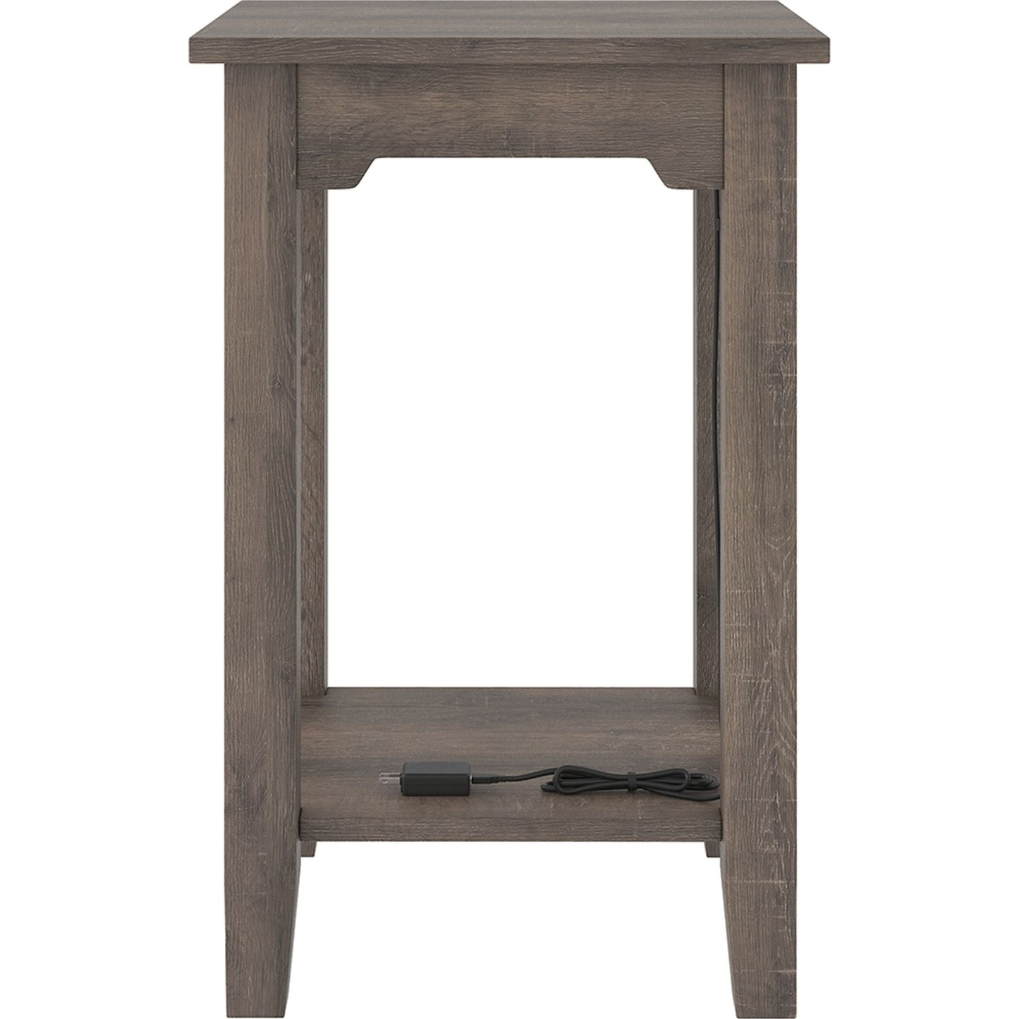Rehaussez le design rustique moderne avec cette élégante table d'appoint électrique. Arborant un élégant effet chêne patiné, elle est équipée de deux ports USB pour vous permettre de passer vos soirées en pleine forme. Apportez une touche de raffinement et de fonctionnalité à votre salon.