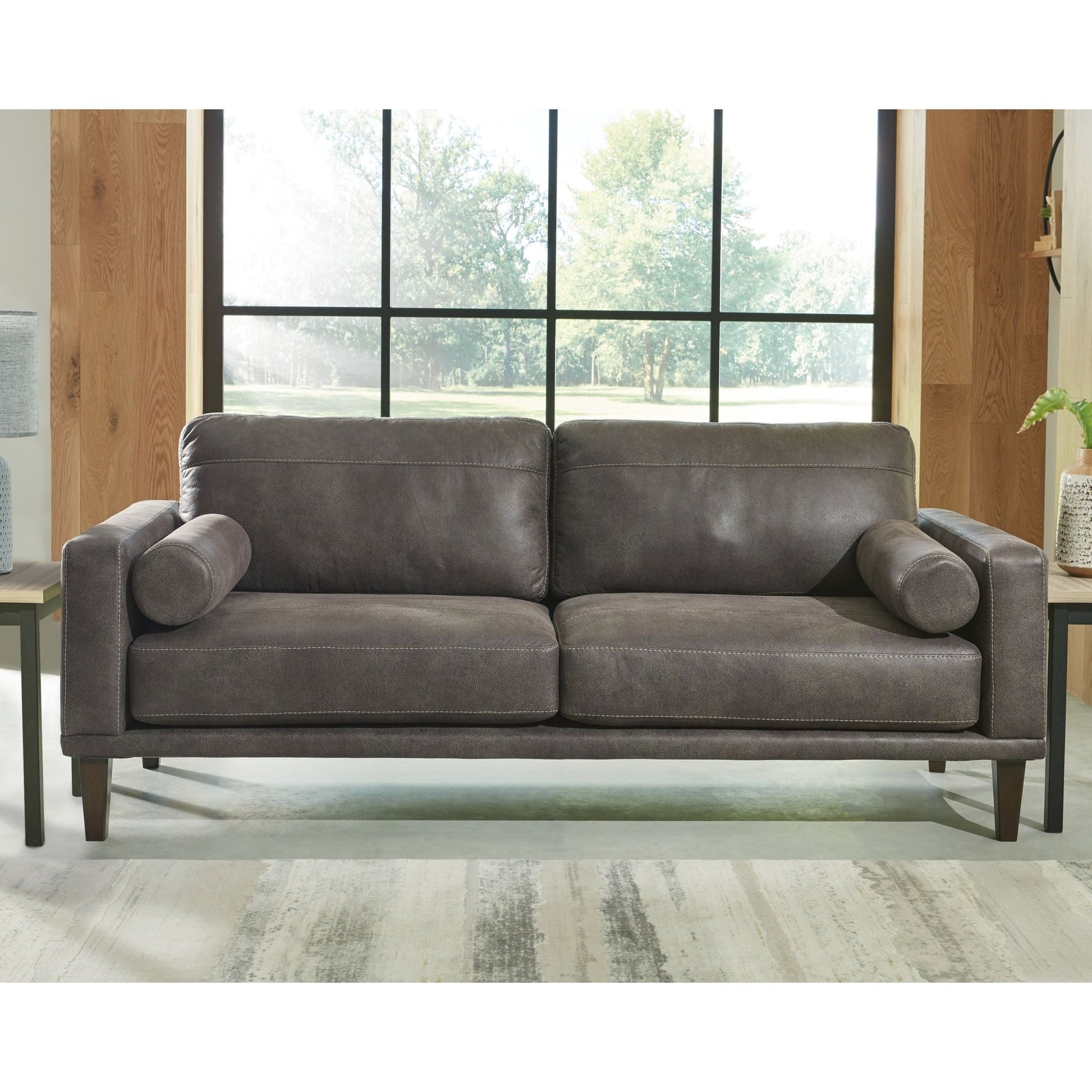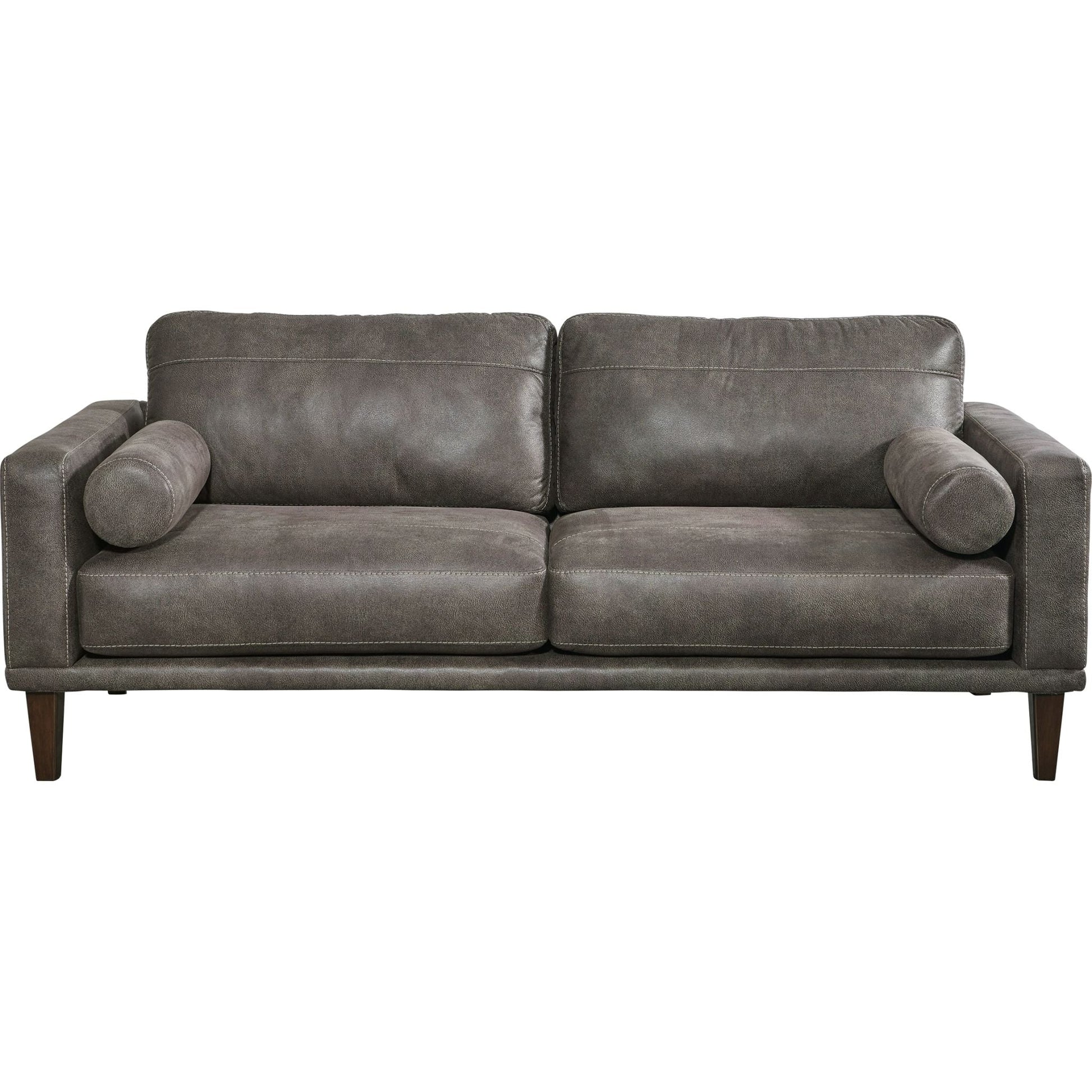 Pour une touche de fraîcheur dans votre intérieur, optez pour ce canapé design. Ce meuble vivifiant insuffle une touche de chaleur à votre intérieur grâce à son revêtement en similicuir gris éclatant, ses coussins traversins modernes et ses pieds fuselés. Détendez-vous après une longue journée en vous laissant bercer par ce havre de paix.