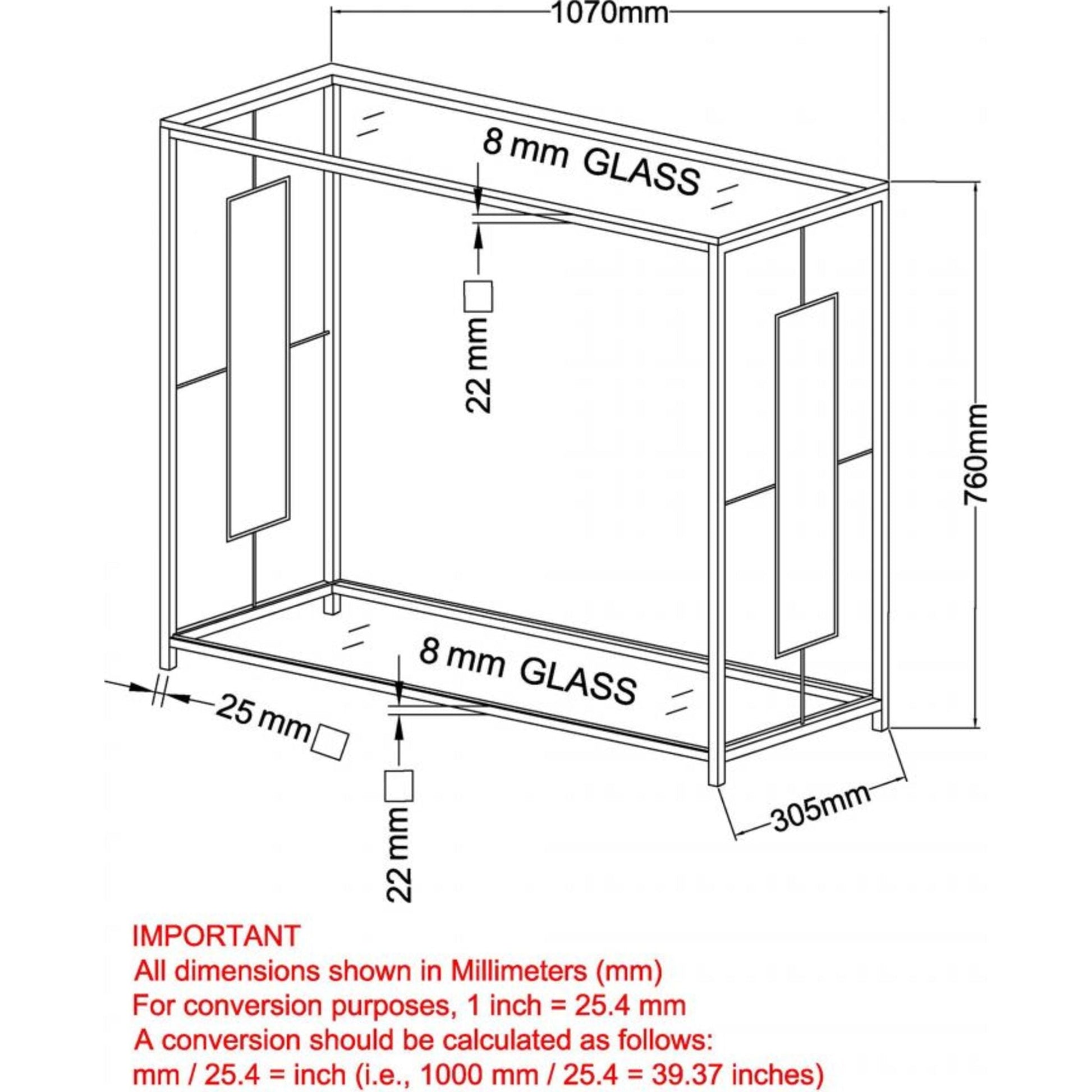 Une belle finition chromée et des étagères en verre transparent s'associent pour créer une table moderne, idéale pour apporter une touche d'élégance à n'importe quelle pièce. Deux niveaux offrent un espace de rangement supplémentaire. Utilisez cette table dans un couloir, une salle à manger ou une entrée.