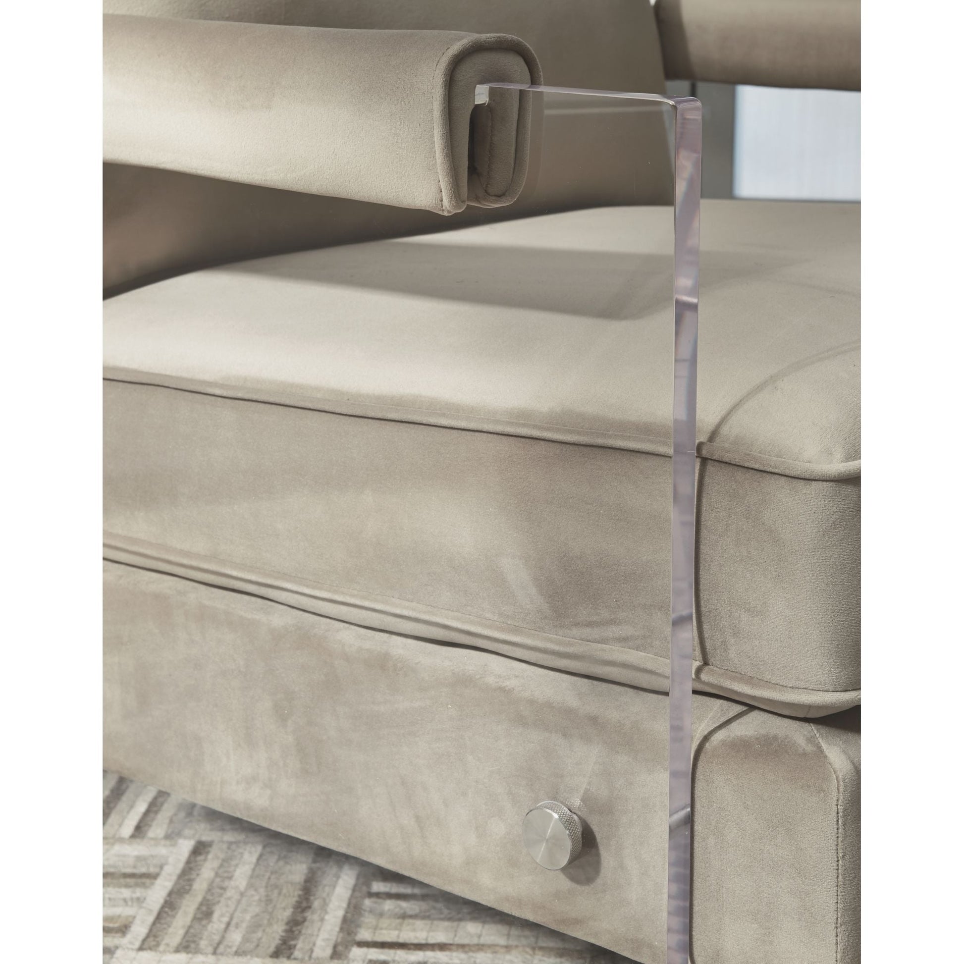 Vous cherchez un ajout spectaculaire à votre intérieur ? Ce fauteuil d'appoint allie confort et style. Ses lignes épurées, claires et modernes, ainsi que sa structure en acrylique massif, offrent une sensation de légèreté et d'aération. Ses boulons métalliques argentés surdimensionnés et son assise profonde et confortable ajoutent une touche d'élégance à l'ensemble. Recouvert d'un doux velours taupe et doté d'accoudoirs rembourrés pour plus de confort, ce fauteuil aux proportions harmonieuses offre un confort optimal. Sophistiqué et confortable, il sera la pièce maîtresse de votre pièce.