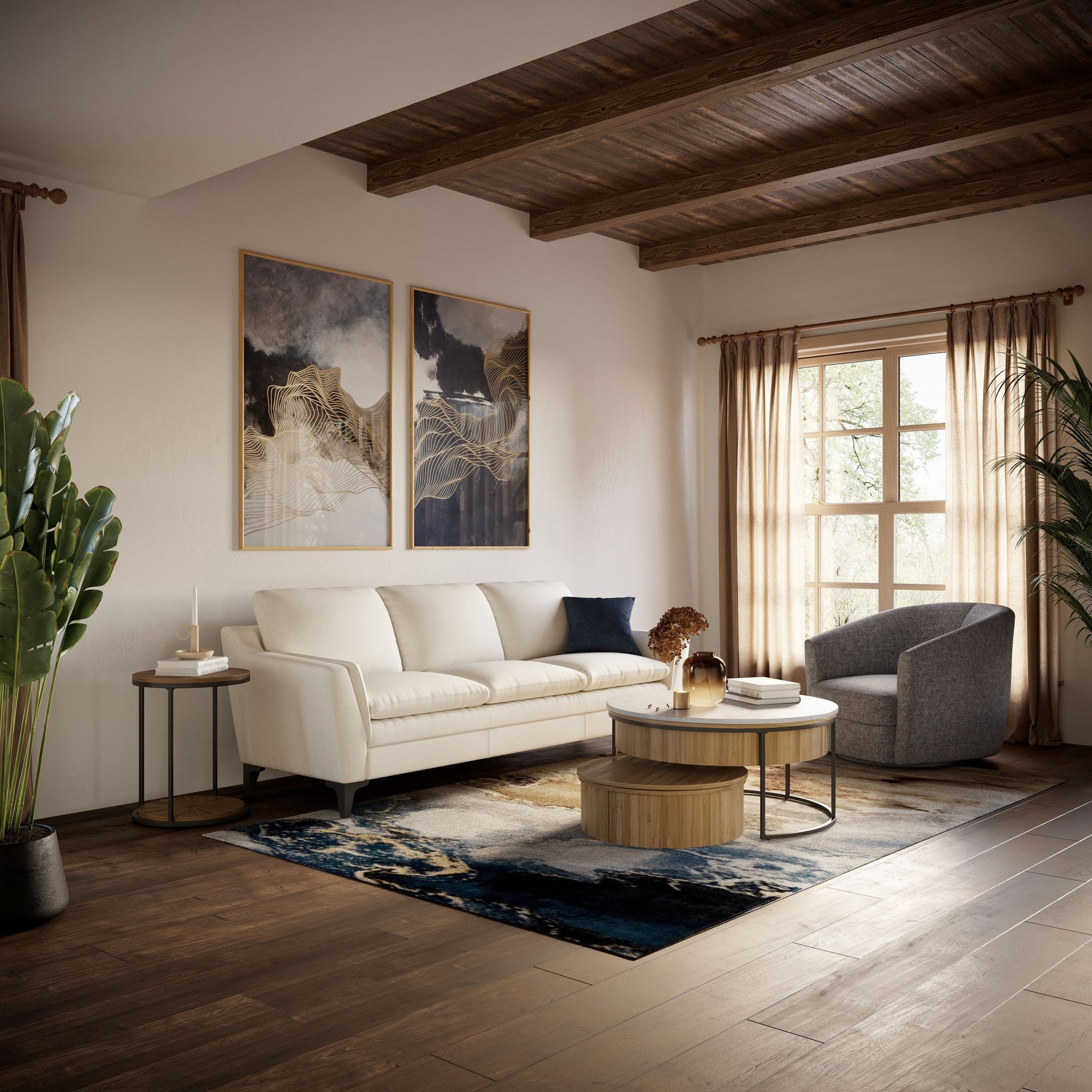 La collection Balmoral présente un design raffiné et contemporain. Avec ses accoudoirs légèrement évasés et ses coussins fins, le Balmoral allie confort et élégance. Conçu pour le confort, chaque accoudoir est rembourré pour une détente optimale, tandis que les coussins de dossier moelleux en fibres soufflées vous permettent de vous enfoncer profondément dans l'assise. Des coutures modernes et un pied en bois massif finition expresso soulignent la structure du Balmoral et l'élégance de son design. Le Balmoral offre un confort sans encombrement, tout en offrant un espace généreux pour se détendre en compagnie, dans un intérieur moderne comme traditionnel.