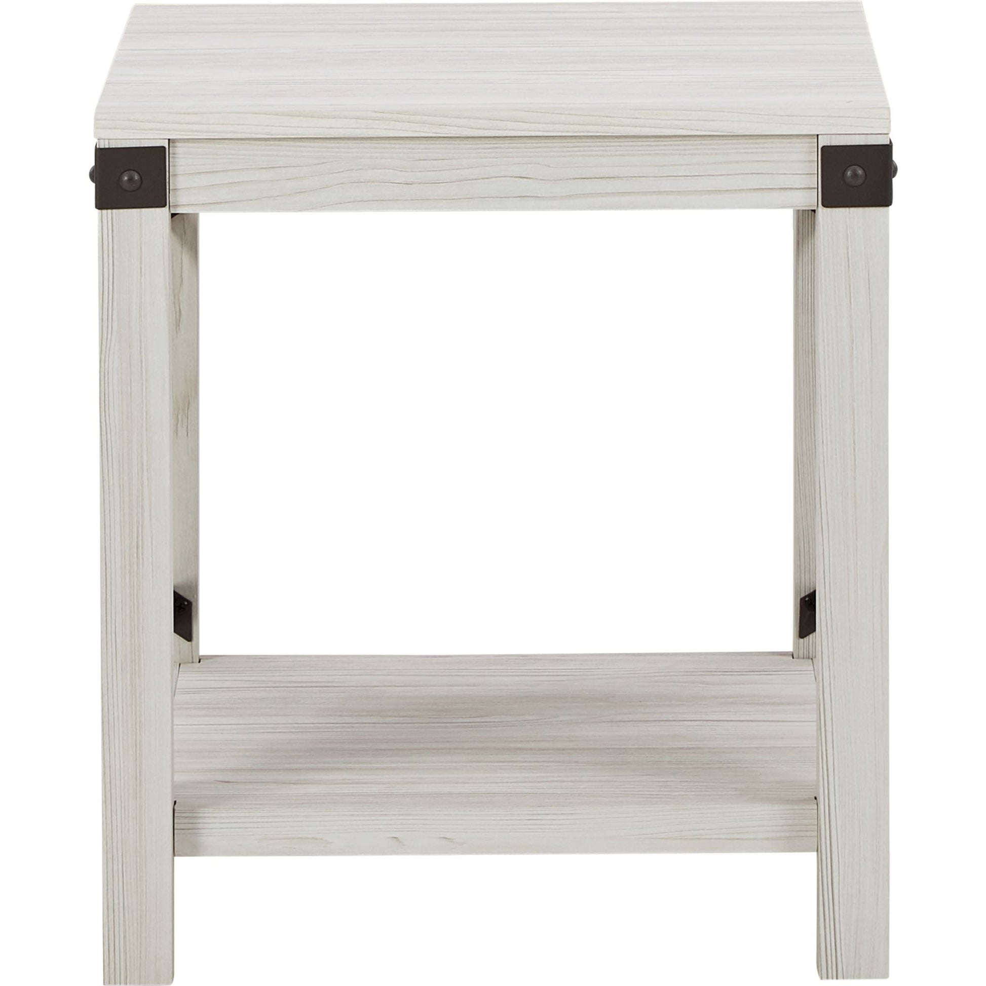 Recevez en toute simplicité avec cette table d'appoint contemporaine et décontractée. Conçue pour les adeptes de la modernité, son design minimaliste séduit par ses accents métalliques en forme de croix et sa surface stratifiée à l'effet blanchi. Une étagère ouverte offre un espace généreux pour vos livres et paniers, ou pour mettre en valeur vos accessoires de décoration.