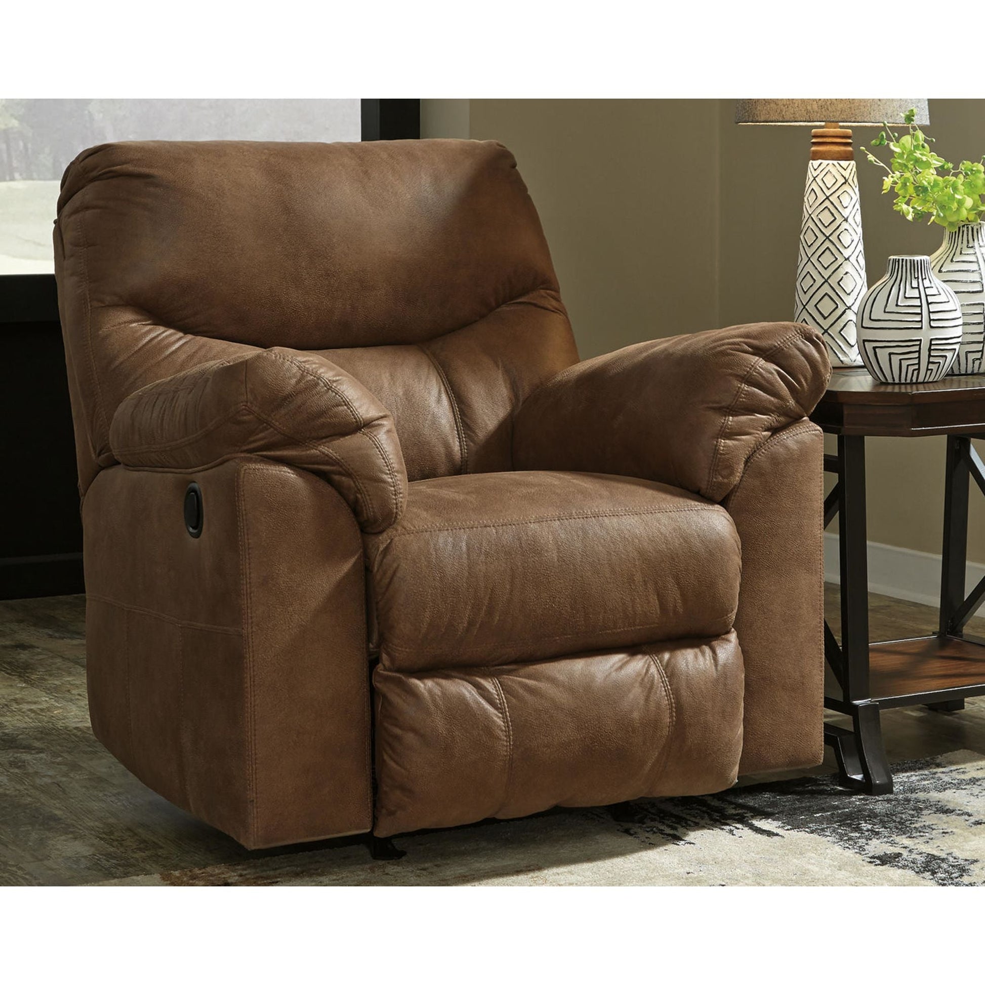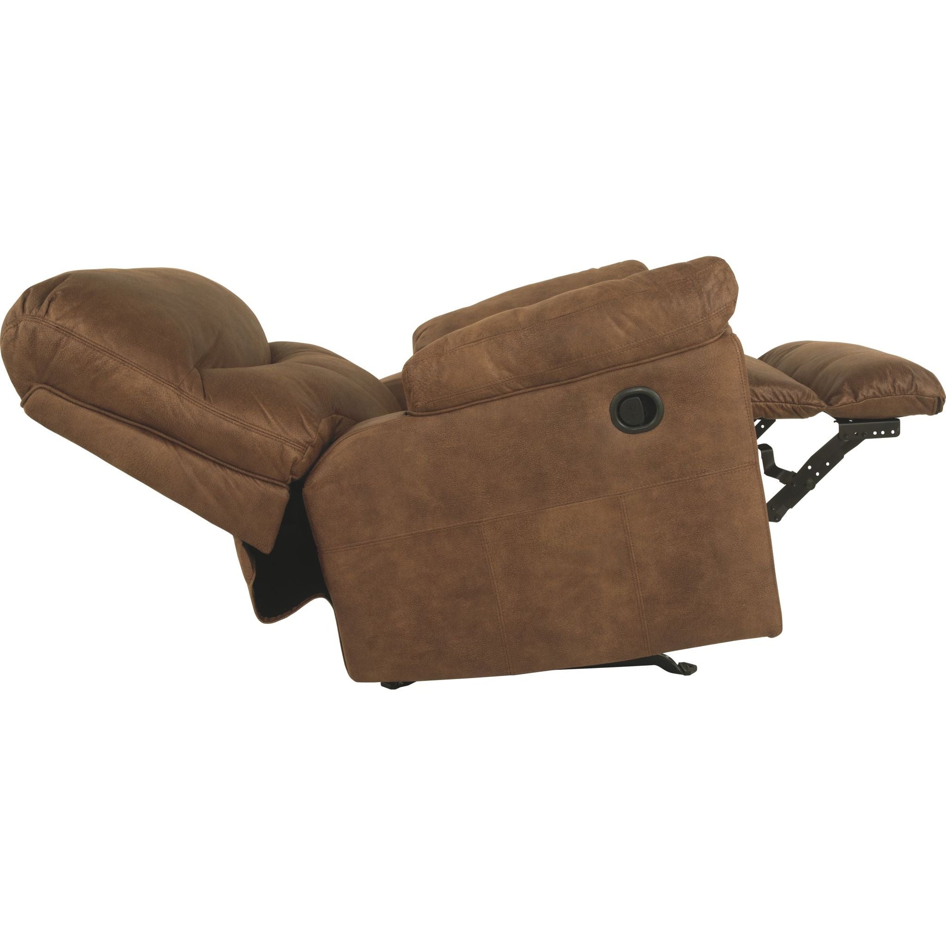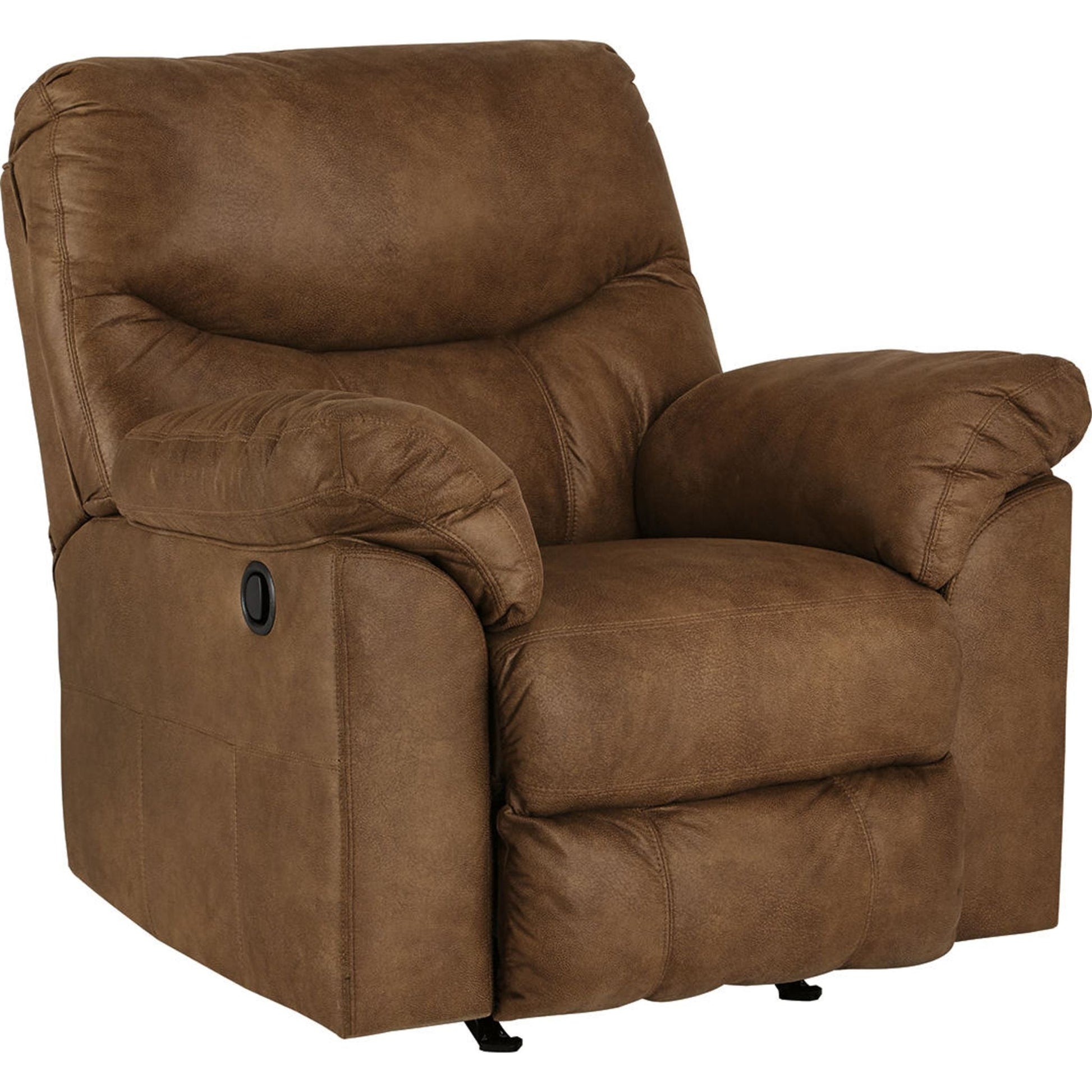 Adoptez le look tendance du cuir sans le prix exorbitant avec ce fauteuil inclinable à bascule. Riche en variations de tons, son revêtement moelleux et moelleux ressemble à s'y méprendre à du cuir véritable. Et quel confort ! Les accoudoirs doublement rembourrés et les somptueux coussins enveloppent et soutiennent parfaitement le corps. Les coutures arrondies distinctives du fauteuil inclinable lui confèrent une touche contemporaine.