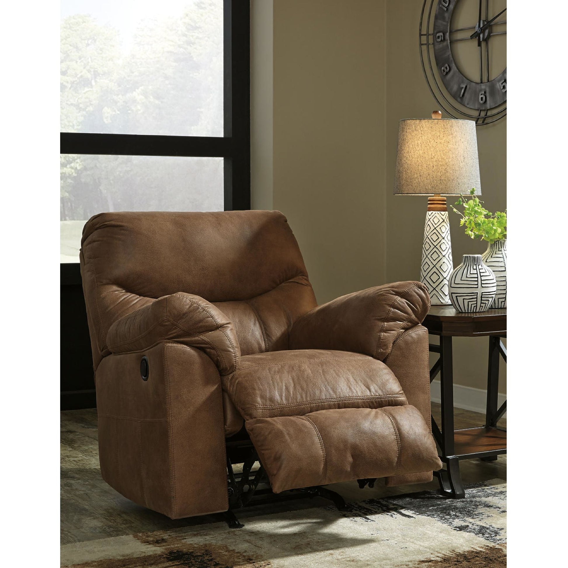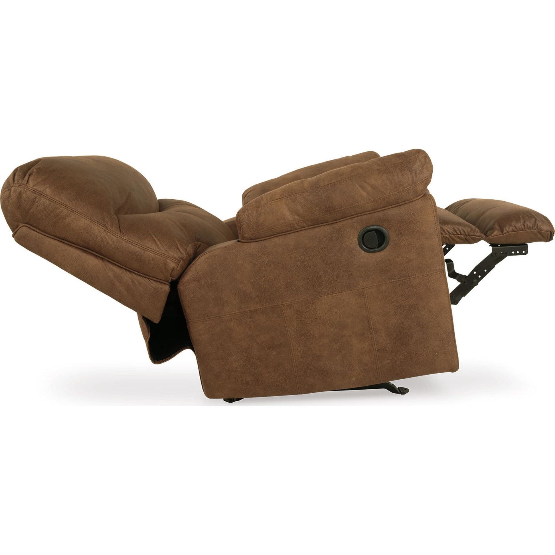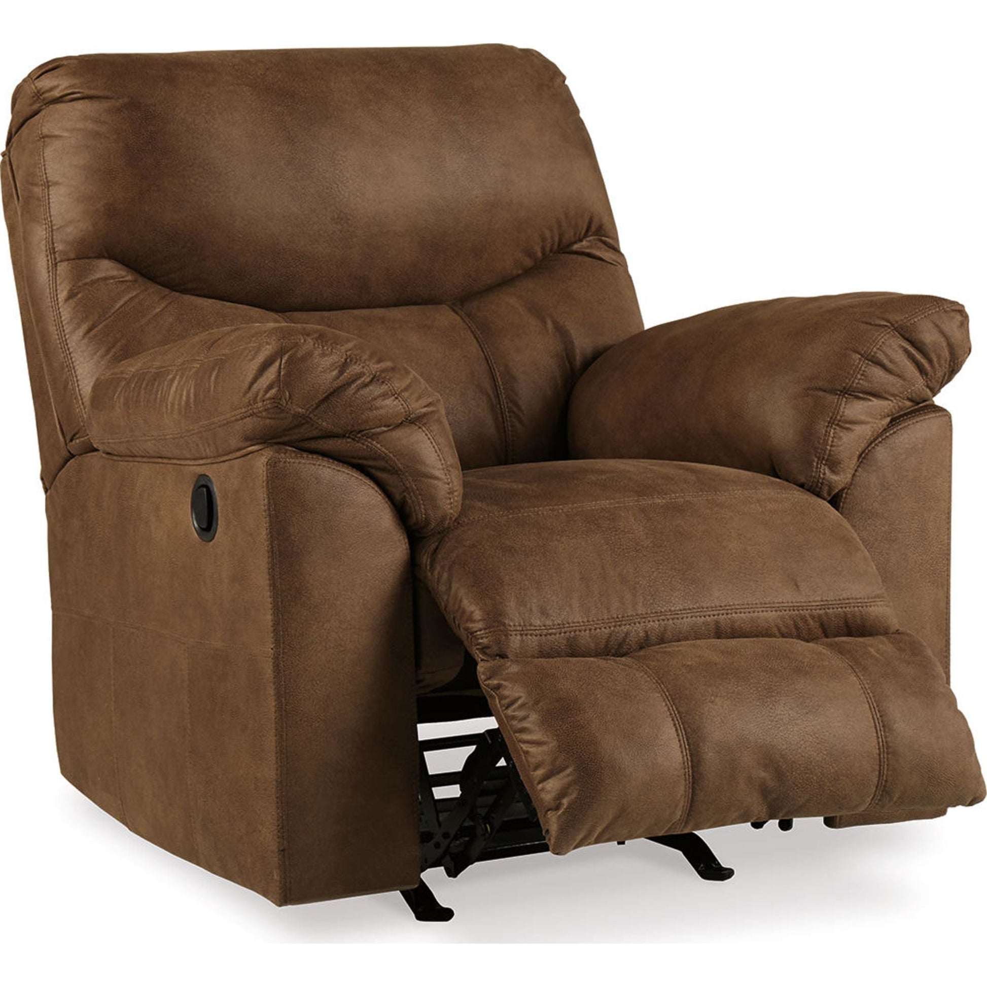 Adoptez le look tendance du cuir sans le prix exorbitant avec ce fauteuil inclinable à bascule. Riche en variations de tons, son revêtement moelleux et moelleux ressemble à s'y méprendre à du cuir véritable. Et quel confort ! Les accoudoirs doublement rembourrés et les somptueux coussins enveloppent et soutiennent parfaitement le corps. Les coutures arrondies distinctives du fauteuil inclinable lui confèrent une touche contemporaine.