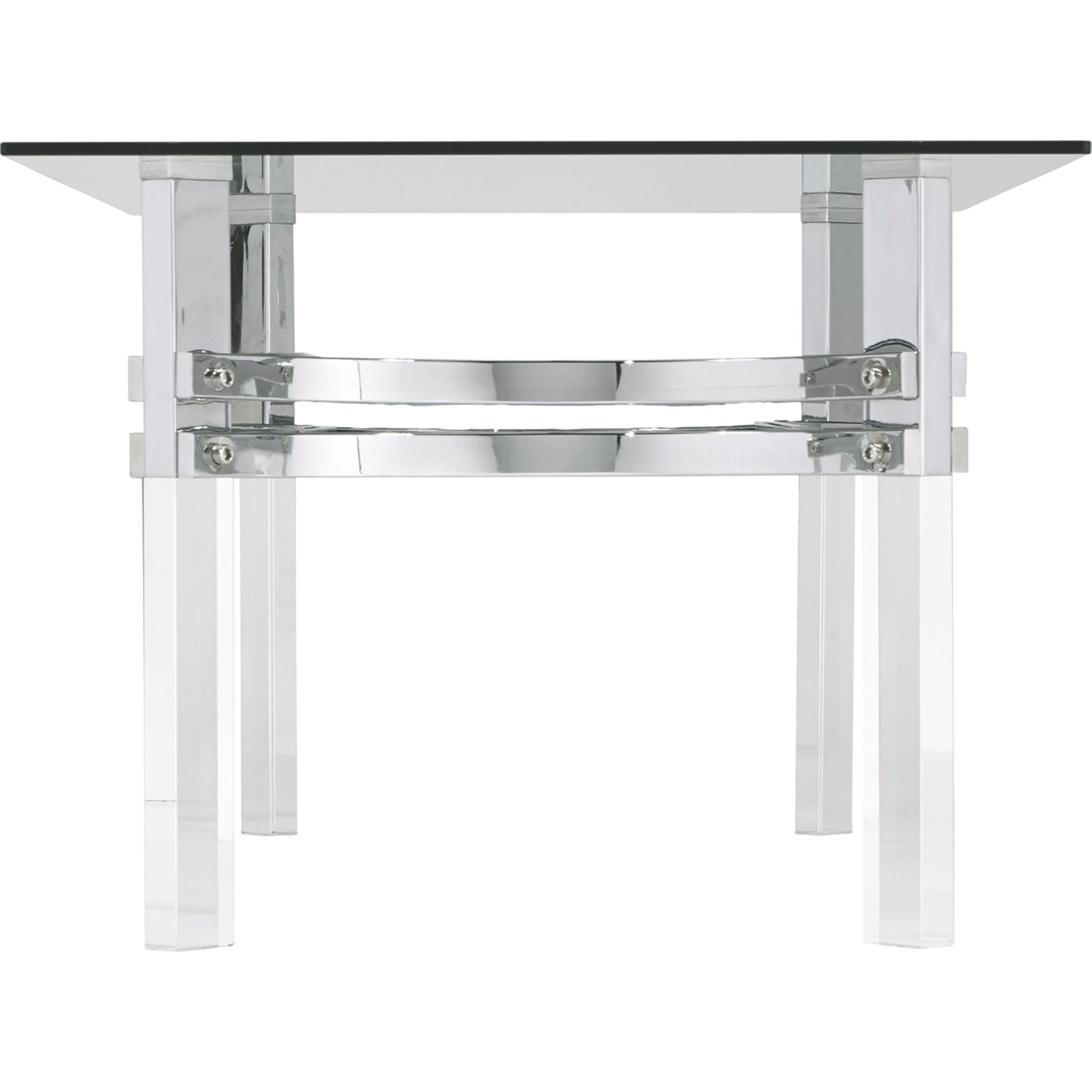 Si vous rêvez de transparence, vous adorerez cette table basse. Associant un plateau en verre transparent à des pieds en acrylique transparent, elle incarne le minimalisme. Son cadre chromé sublime l'esprit contemporain.