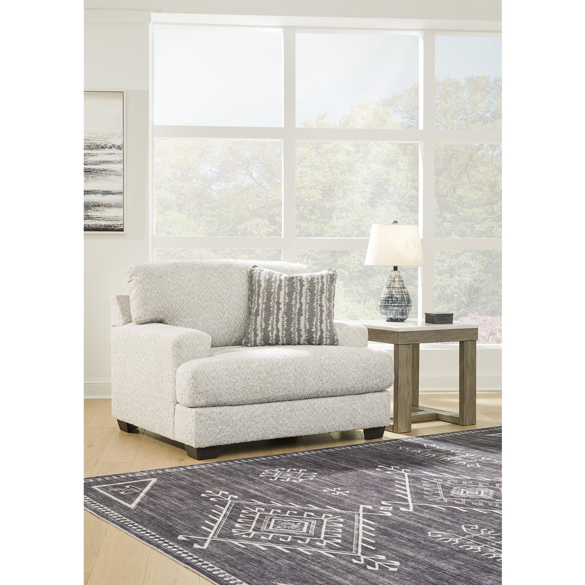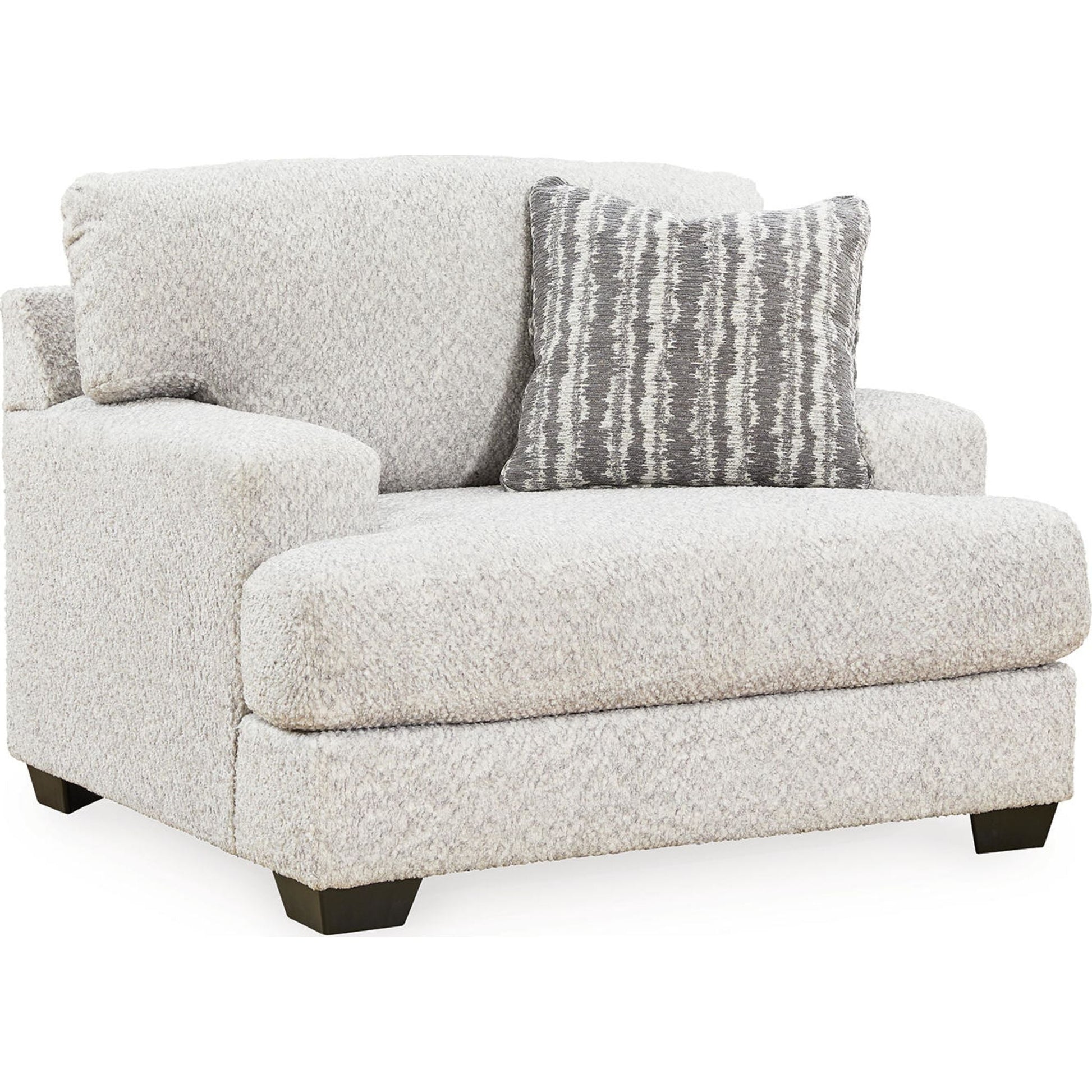 Ce fauteuil surdimensionné séduira les amateurs de style contemporain et frais, avec son charme riche et neutre. Enveloppé dans un tissu merveilleusement moelleux aux multiples nuances, ce fauteuil tendance dégage un charme chaleureux et accueillant. Détendez-vous et installez-vous confortablement dans cet accessoire tendance pour les espaces modernes.