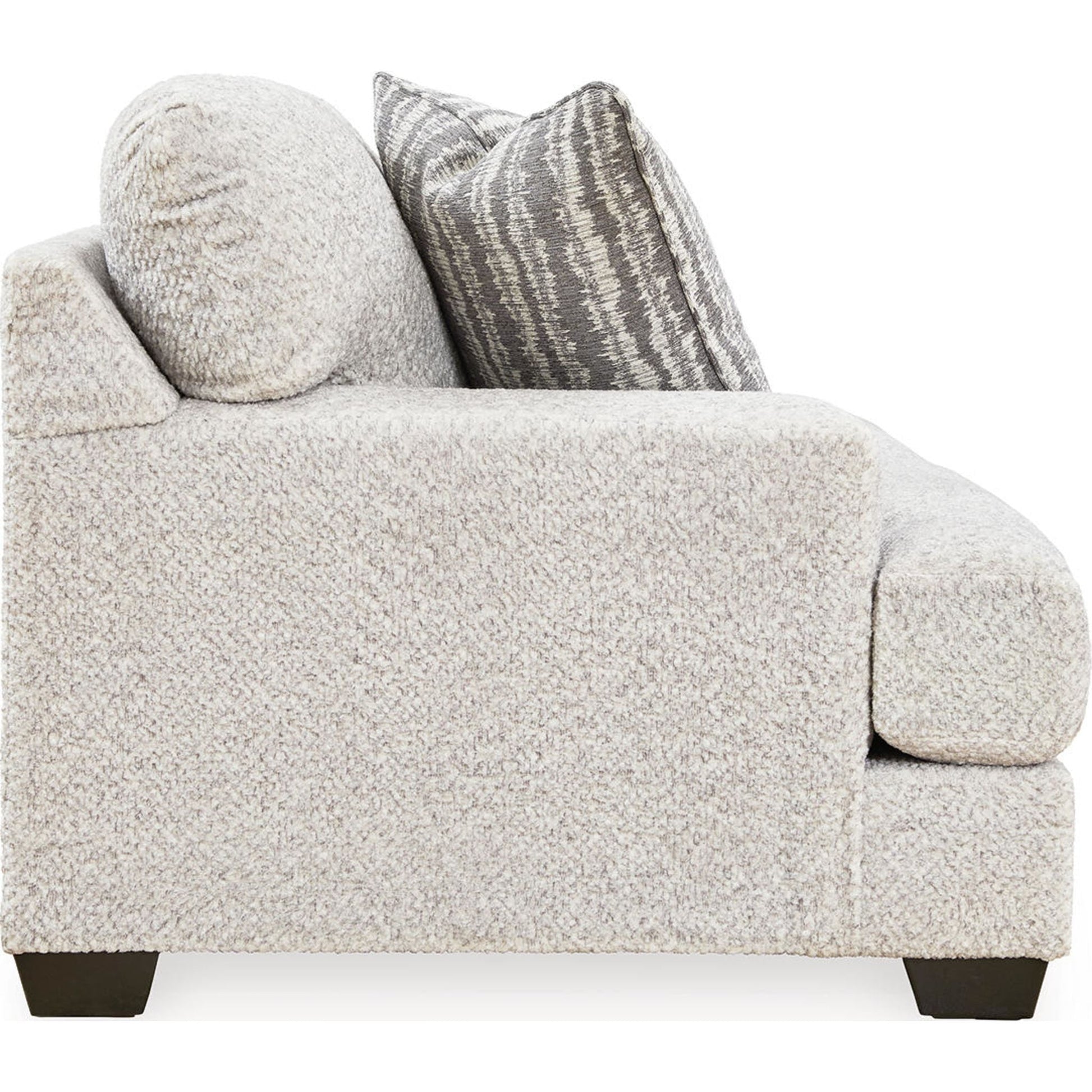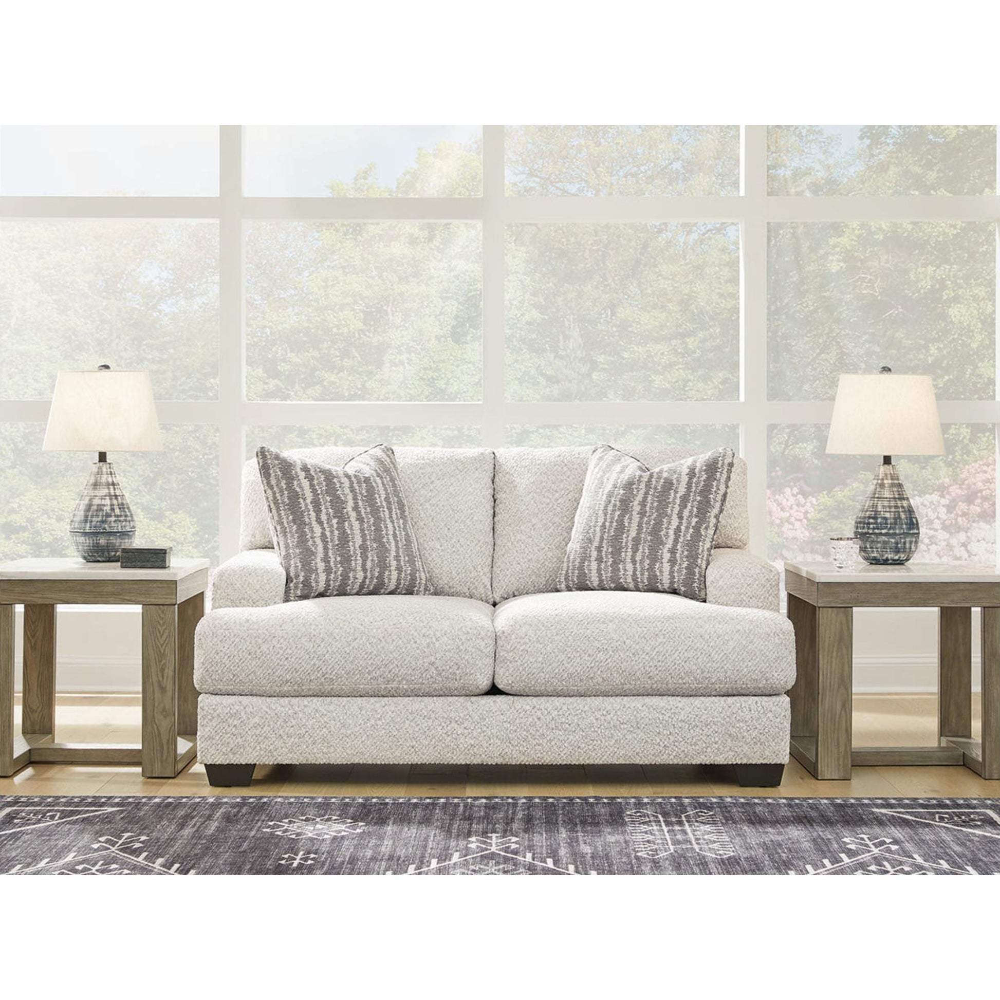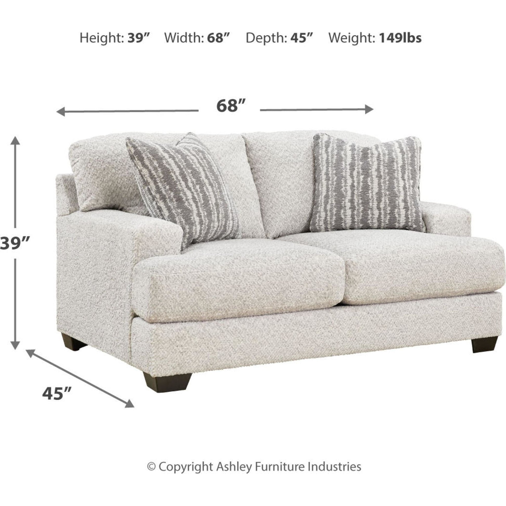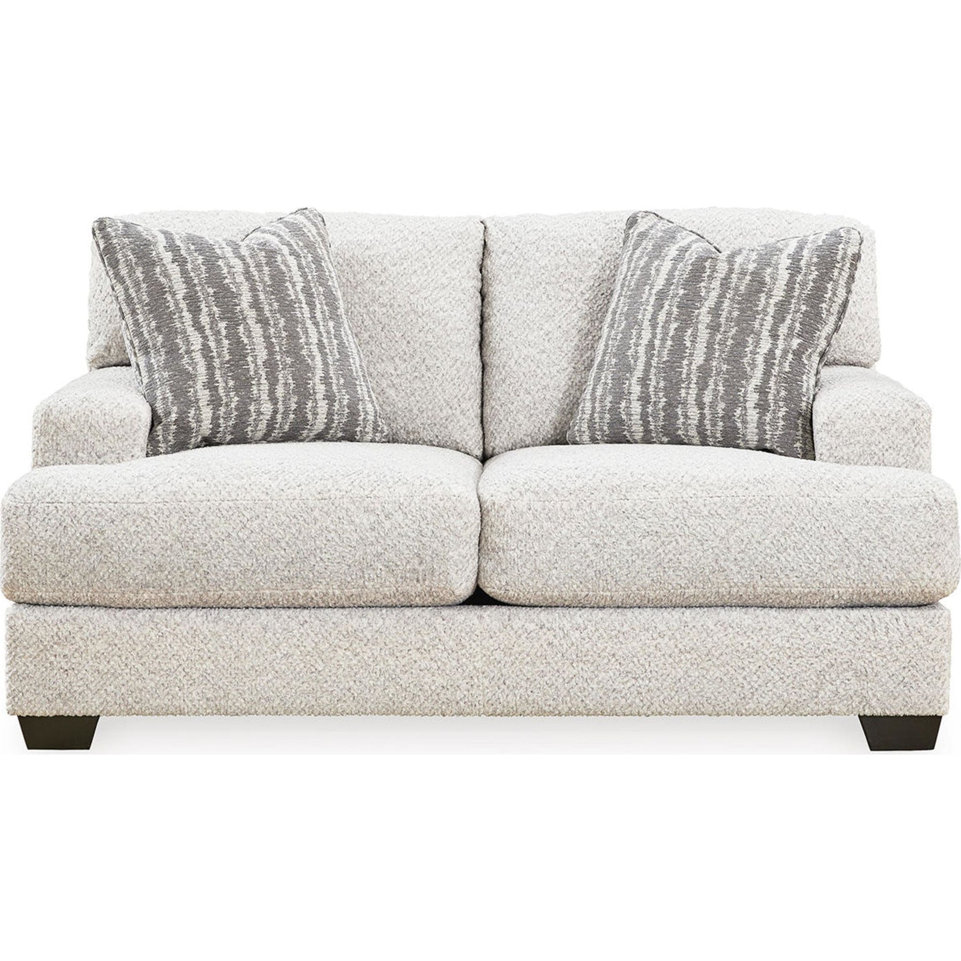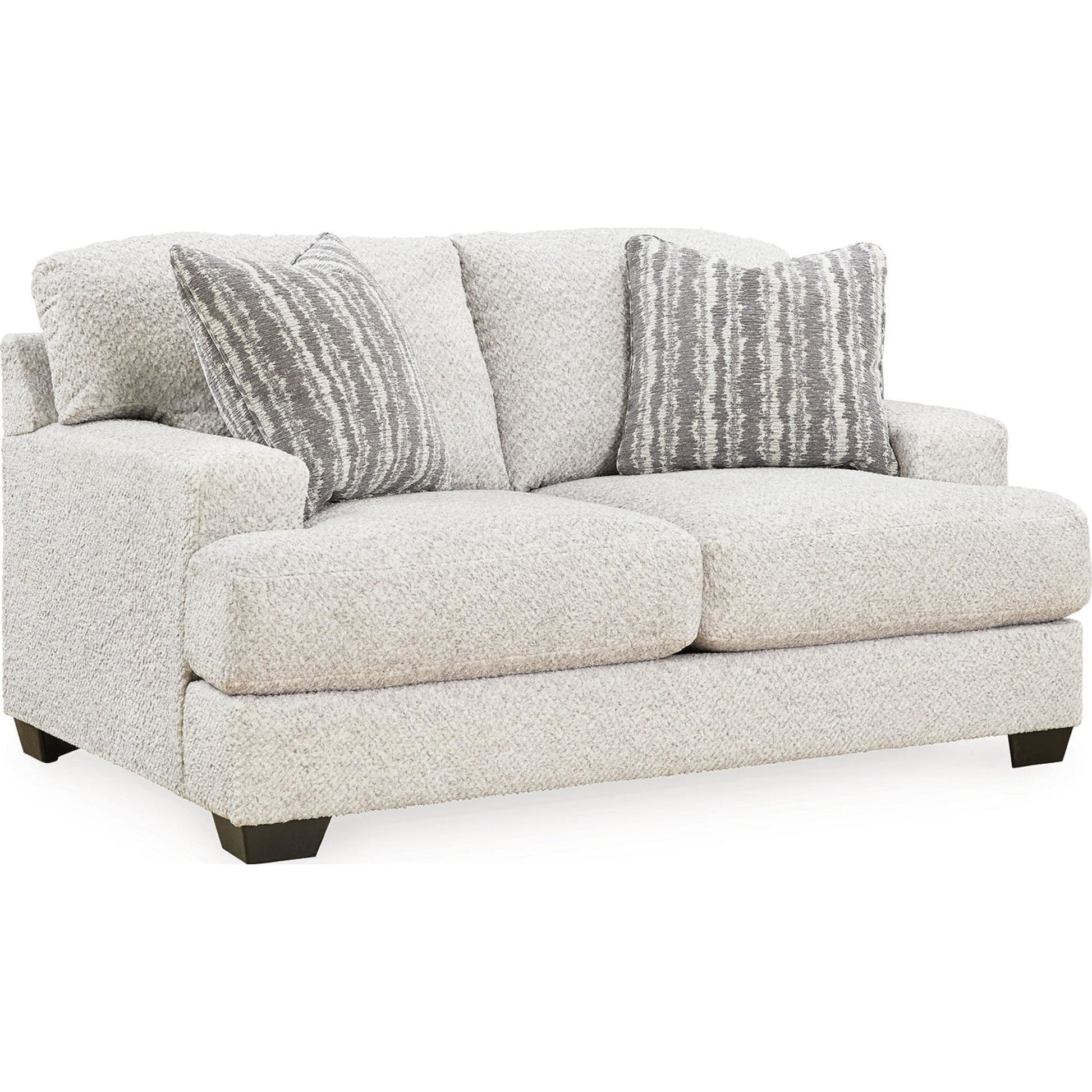 Cette causeuse séduit les amateurs de style contemporain et frais, avec son charme riche et neutre. Enveloppée d'un tissu merveilleusement moelleux aux multiples nuances, cette pièce tendance dégage un charme chaleureux et accueillant. Des coussins décoratifs assortis ajoutent à son charme. Détendez-vous et installez-vous confortablement dans cet ajout tendance pour les espaces modernes.