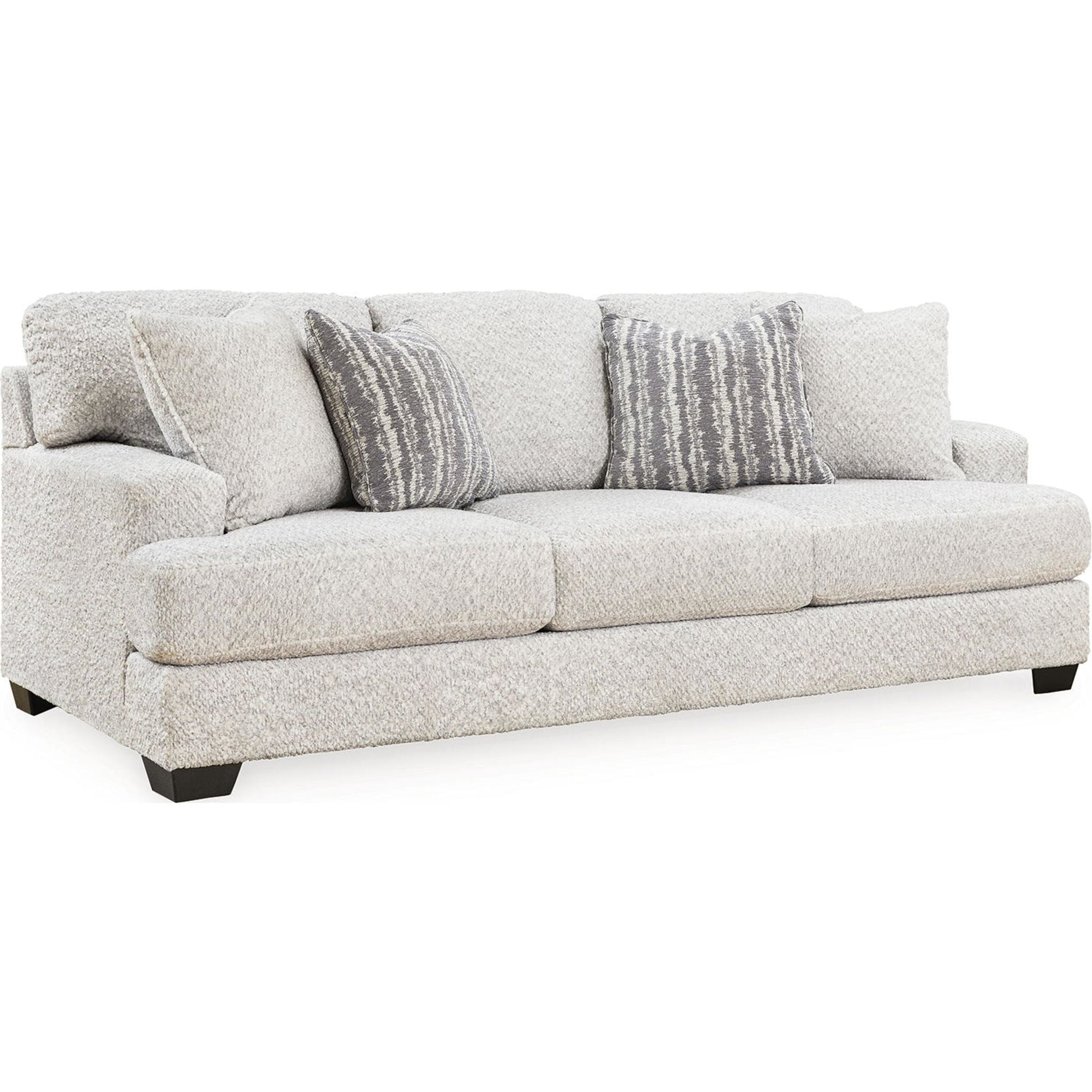 Ce canapé séduit les amateurs de style frais et contemporain, avec son charme riche et neutre. Enveloppé dans un tissu merveilleusement moelleux aux multiples nuances, ce meuble tendance dégage un charme chaleureux et accueillant. Des coussins assortis ajoutent à son charme. Détendez-vous et installez-vous confortablement dans cet accessoire tendance pour les espaces modernes.