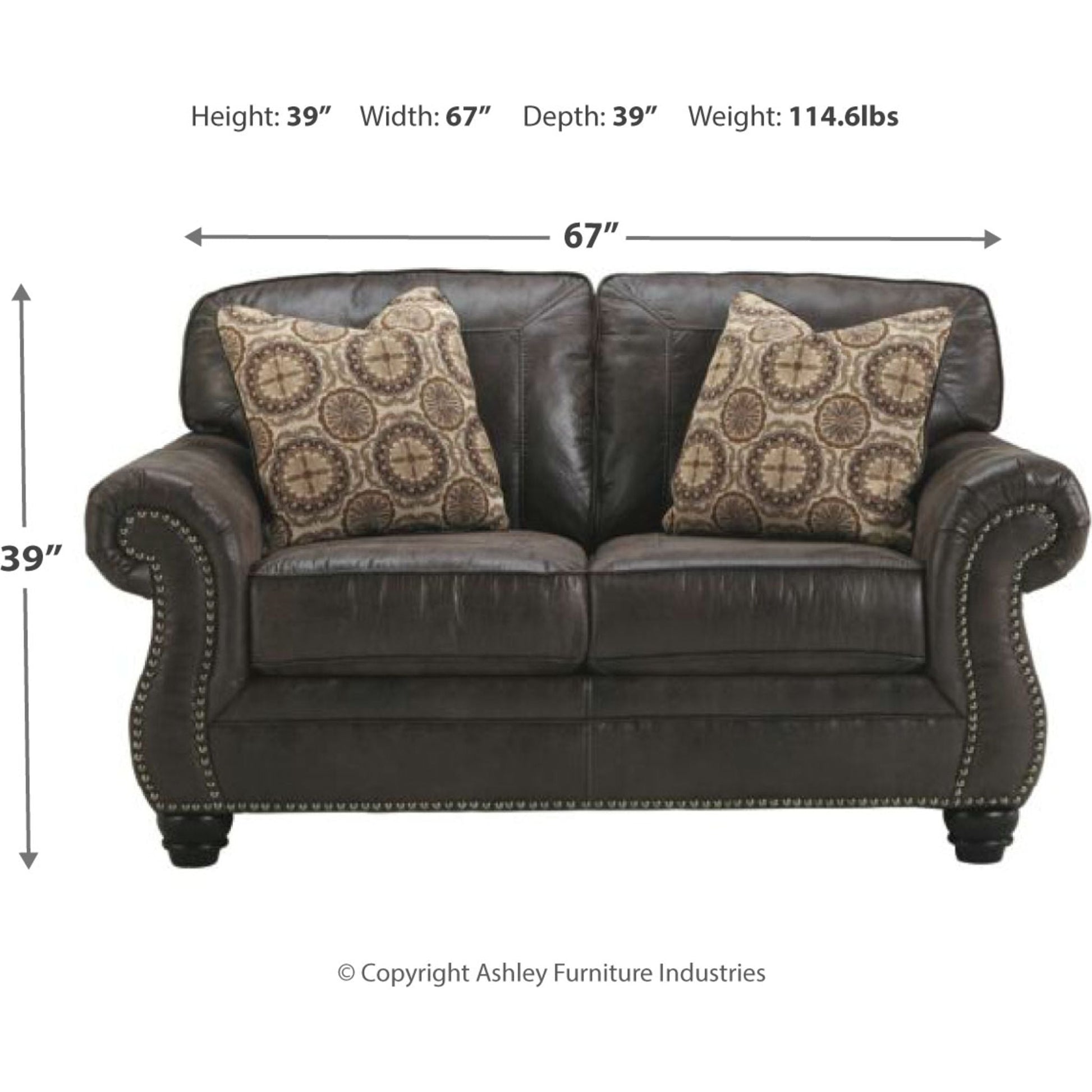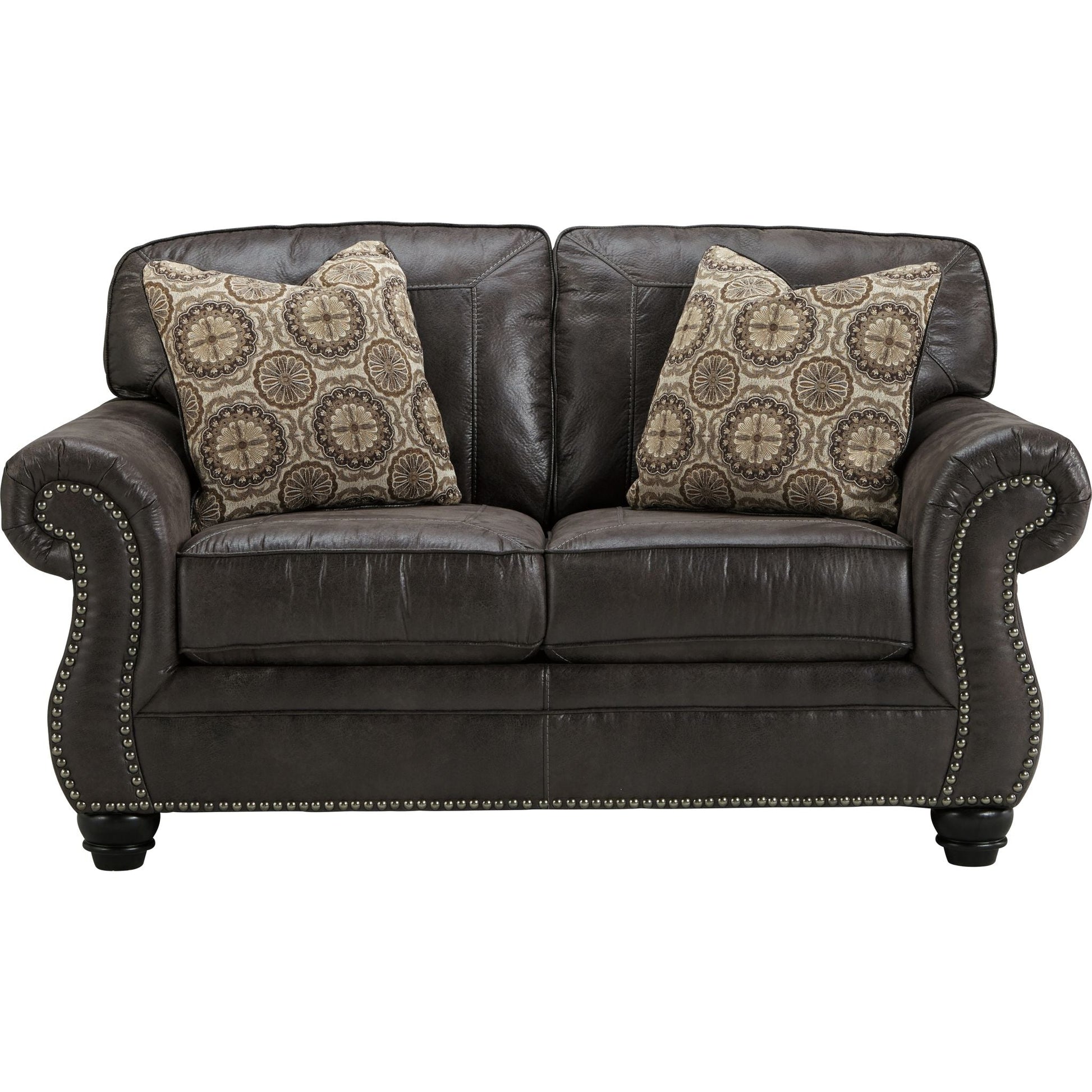 Admirez l'élégance et la robustesse du cuir, à un prix bien inférieur, avec cette élégante causeuse. Inspirée par la beauté brute du Sud-Ouest, elle arbore un similicuir patiné, conçu pour la chaleur, le confort et la vie quotidienne. Une touche de clous décoratifs lui confère une touche de caractère.