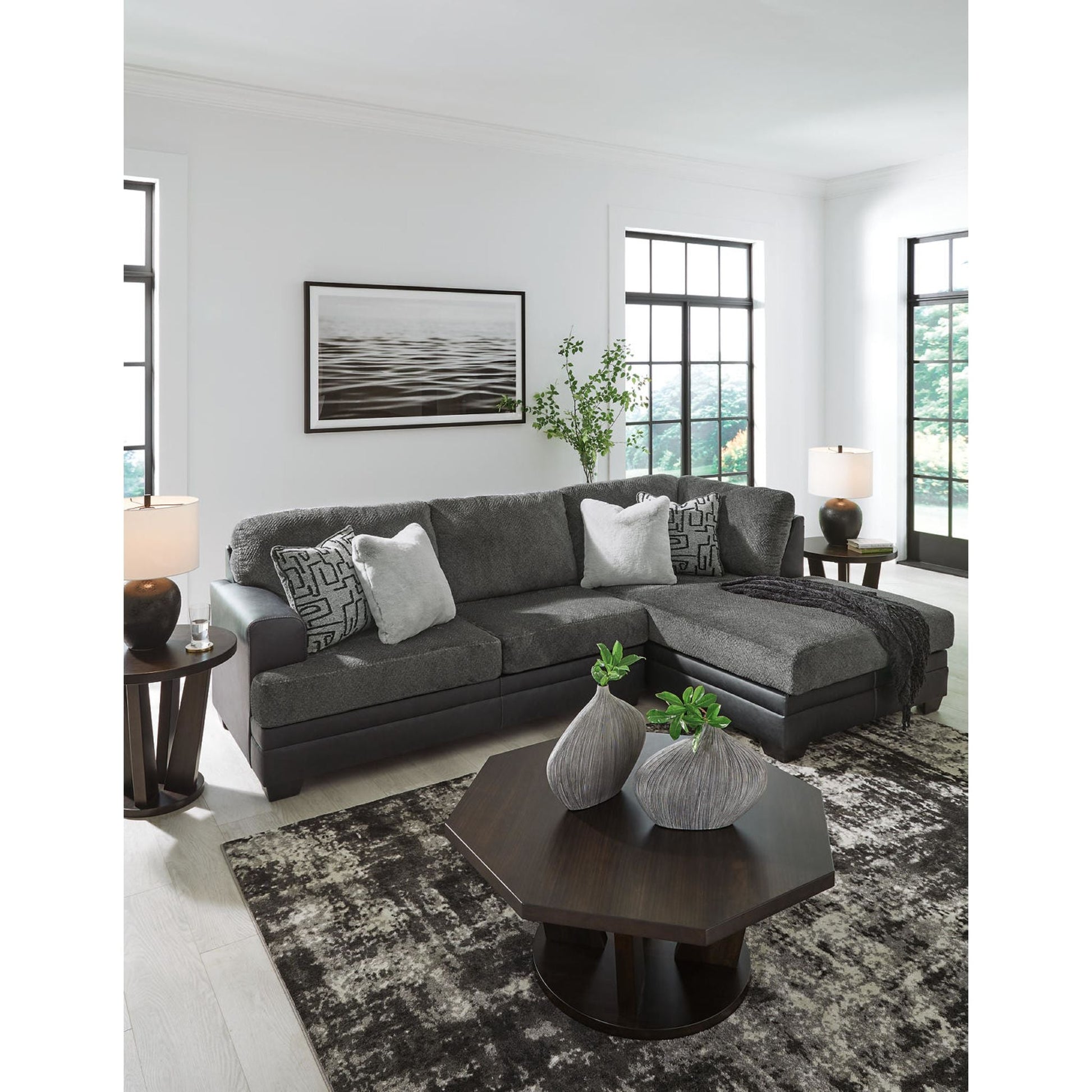 Attirez votre regard avec un design ultra-contemporain grâce au canapé d'angle Brixley Pier. Chic et épuré, décliné dans des tons neutres foncés, il associe un tissu confortable à du similicuir pour un style décontracté et chaleureux. Grâce à sa méridienne spacieuse offrant un espace d'assise supplémentaire, famille et amis peuvent se détendre confortablement et avec style.
