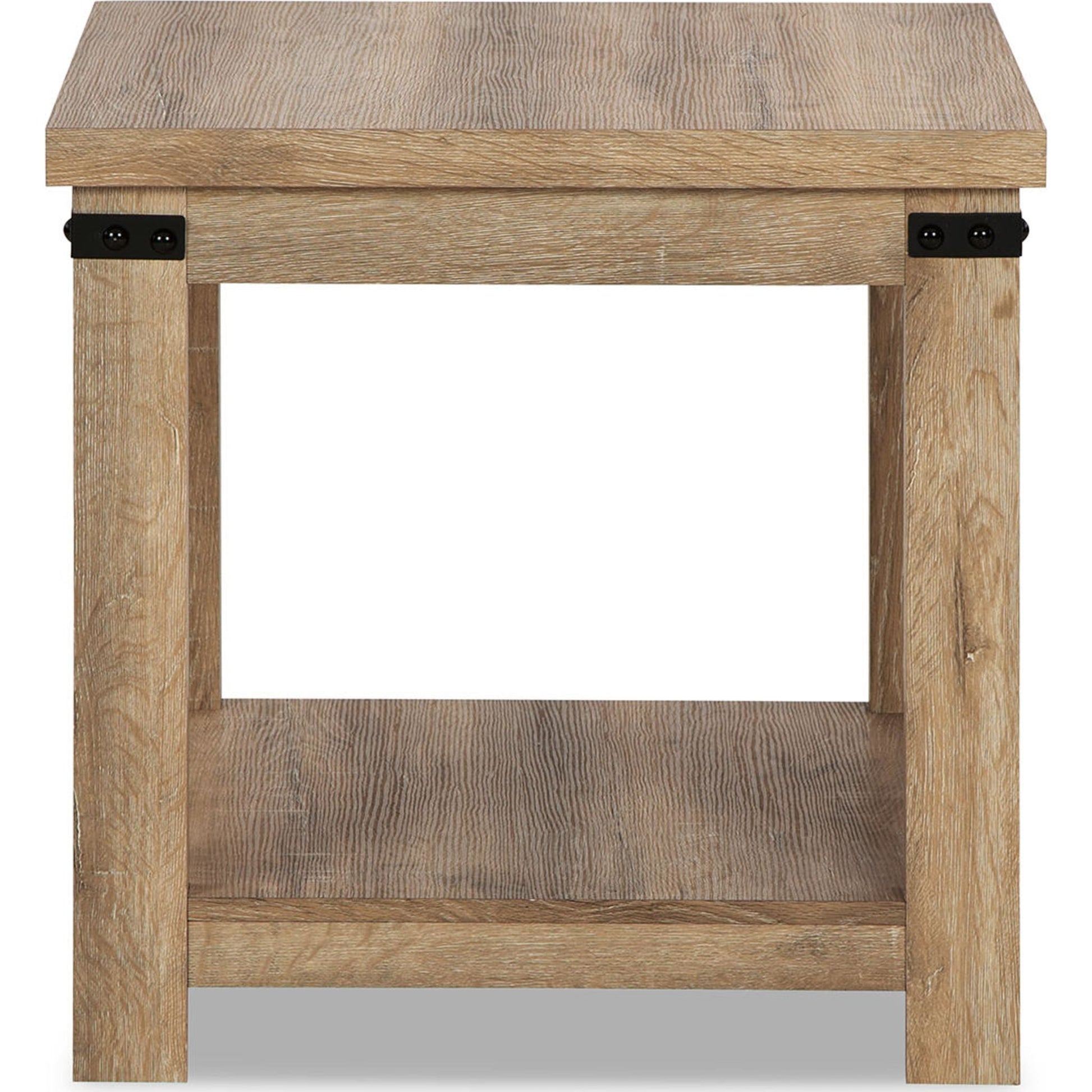 Cette table d'appoint réinvente le style d'antan avec une touche de modernité décontractée. Son grain de chêne naturel reproduit une ambiance chaleureuse et accueillante, tandis que les touches de métal apportent une touche rustique et mixte. Une étagère inférieure, offrant un espace de rangement supplémentaire, complète ce meuble luxueux et décontracté.