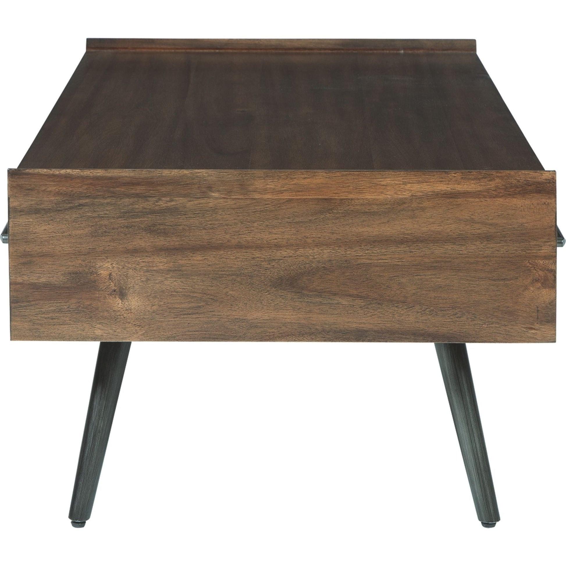 Rétro et actuelle, cette table basse marie parfaitement l'influence du milieu du siècle avec une touche contemporaine et décontractée. Son plateau ultra-linéaire est soutenu par des pieds métalliques ronds et inclinés, pour un style unique qui reflète votre goût pour les belles choses.