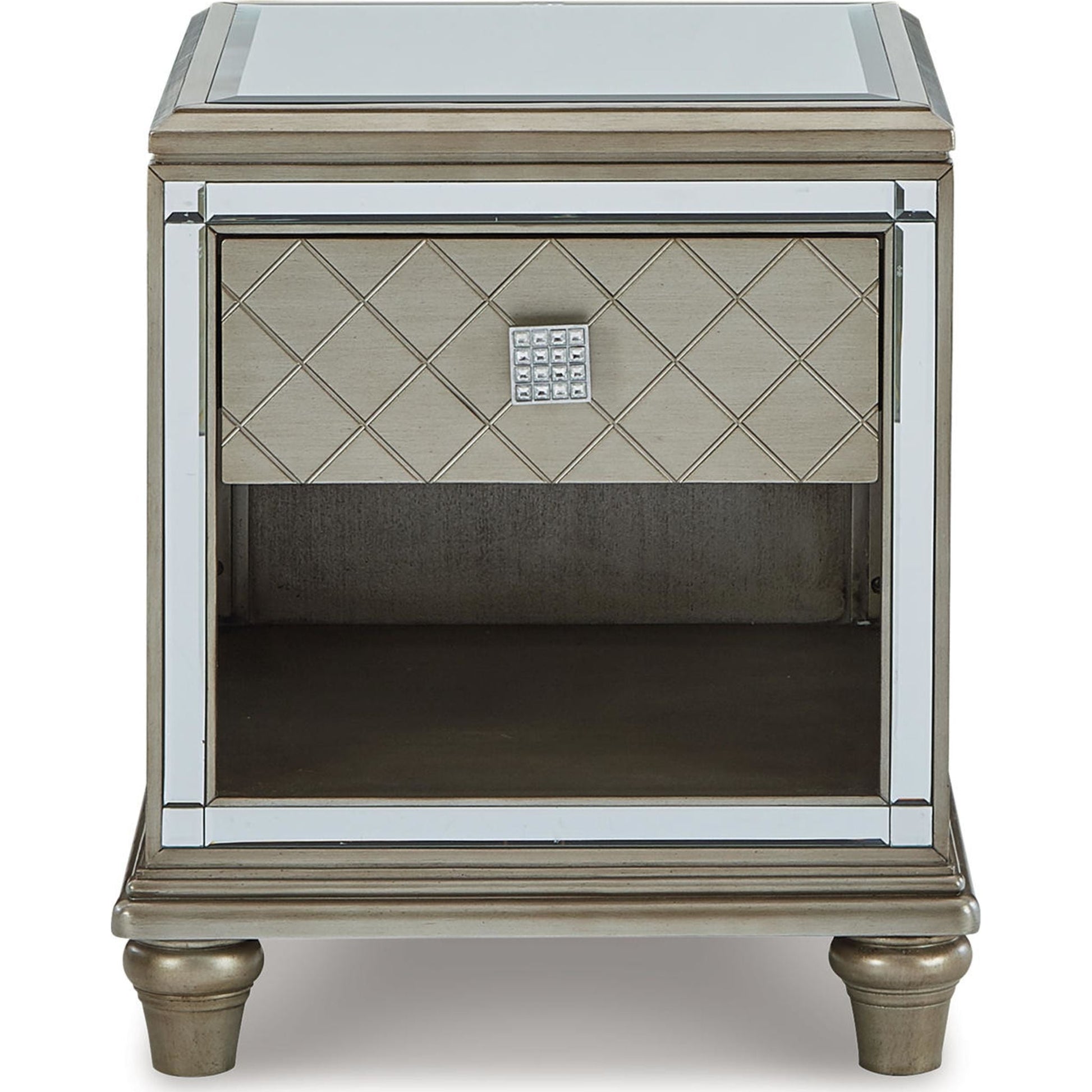 Glamour, chic et sophistiquée, cette table d'appoint rectangulaire arbore une finition métallisée argentée, des panneaux de miroir biseautés et des poignées de tiroir ornées de faux cristaux. Quel que soit son style, elle s'intégrera parfaitement à votre décoration contemporaine.