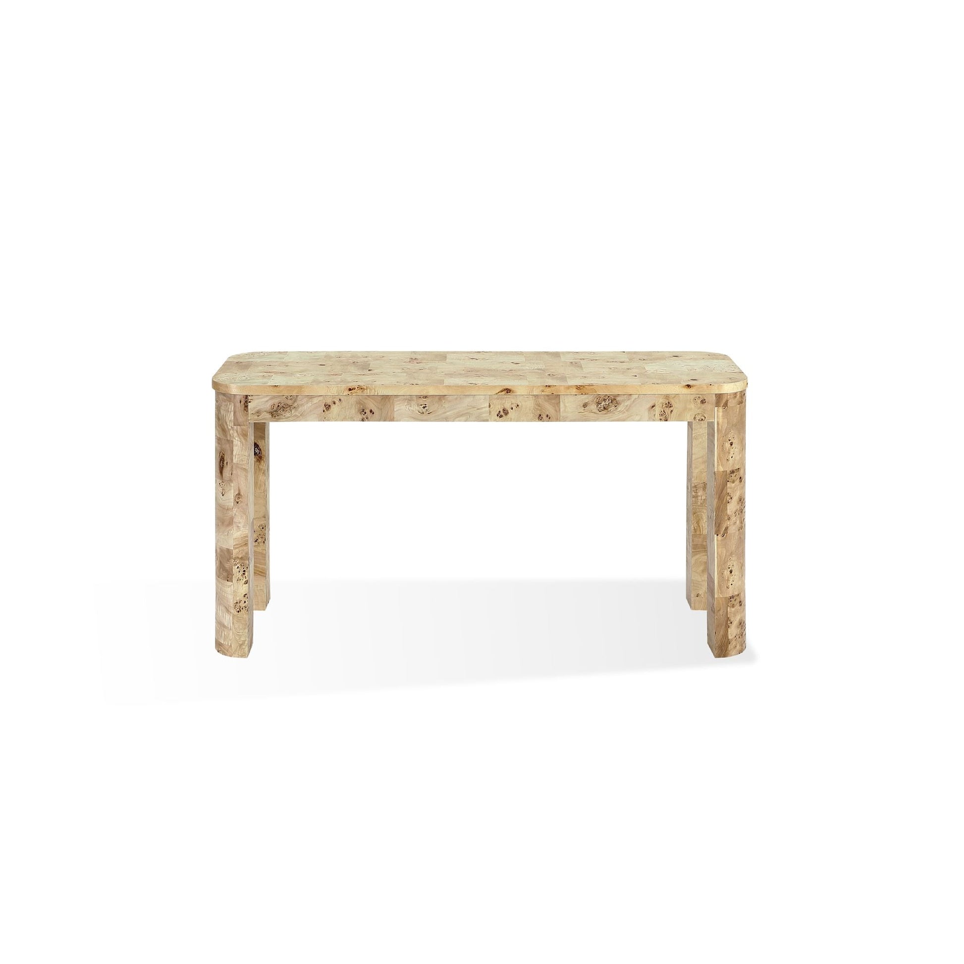 La collection Cosmo évoque l'essence même d'un style de vie luxueux et paisible. Des courbes douces s'harmonisent harmonieusement avec les plateaux rectangulaires arrondis, créant une atmosphère chaleureuse et accueillante qui se prolonge jusqu'au sol grâce aux pieds en quart de rond. Fabriquées en loupe de Mappa, un bois rare et exotique réputé pour ses veinures remarquables, ces pièces d'exception ajoutent une élégance discrète à tout salon.