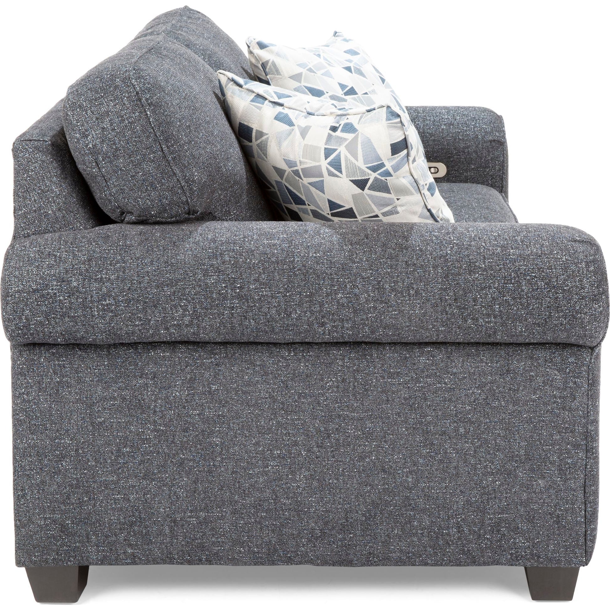 Ce style à la fois transitionnel et traditionnel présente un dossier semi-attaché et des accoudoirs arrondis, offrant une base polyvalente pour votre salon. Fabriqué à la main par nos artisans tapissiers dévoués en Amérique du Nord.