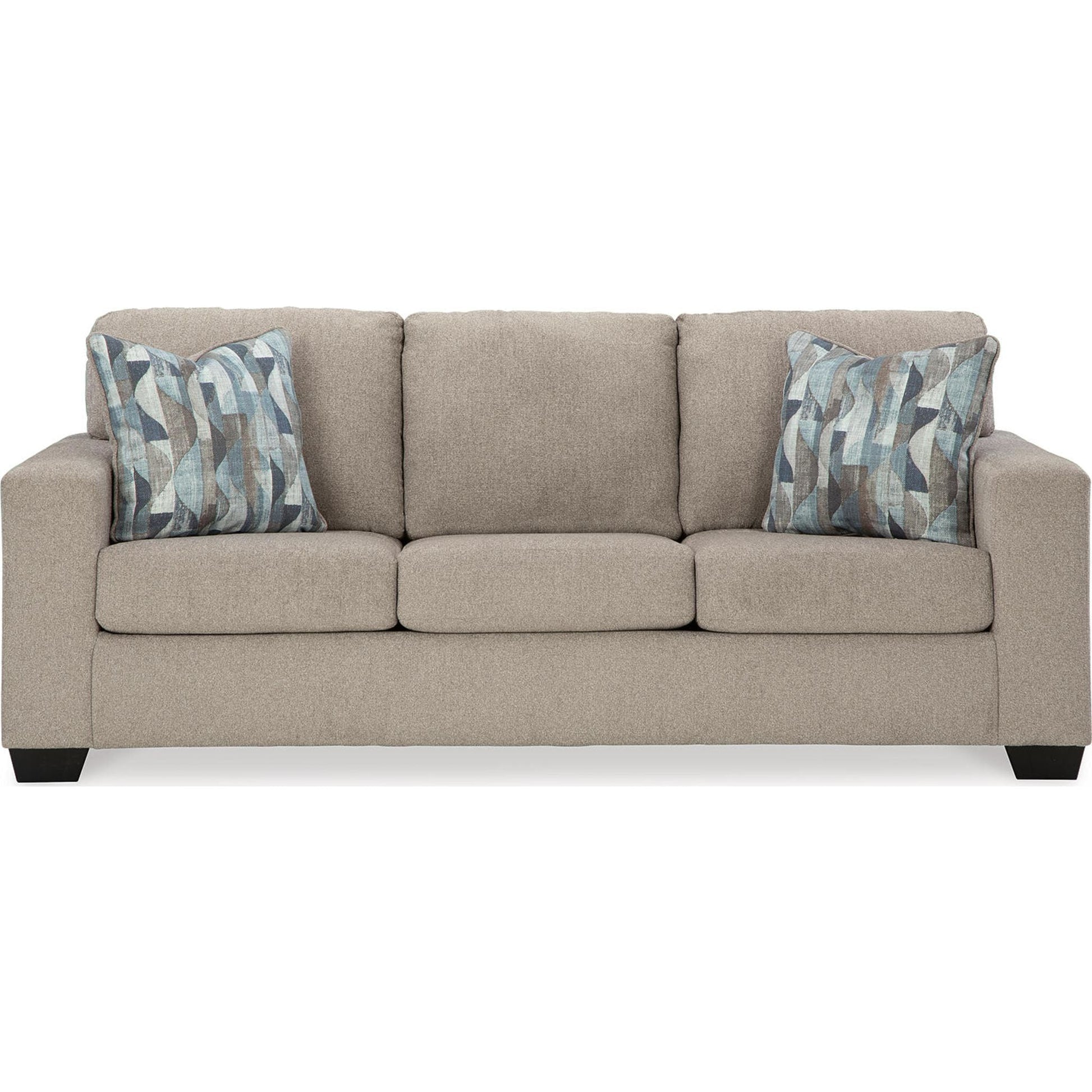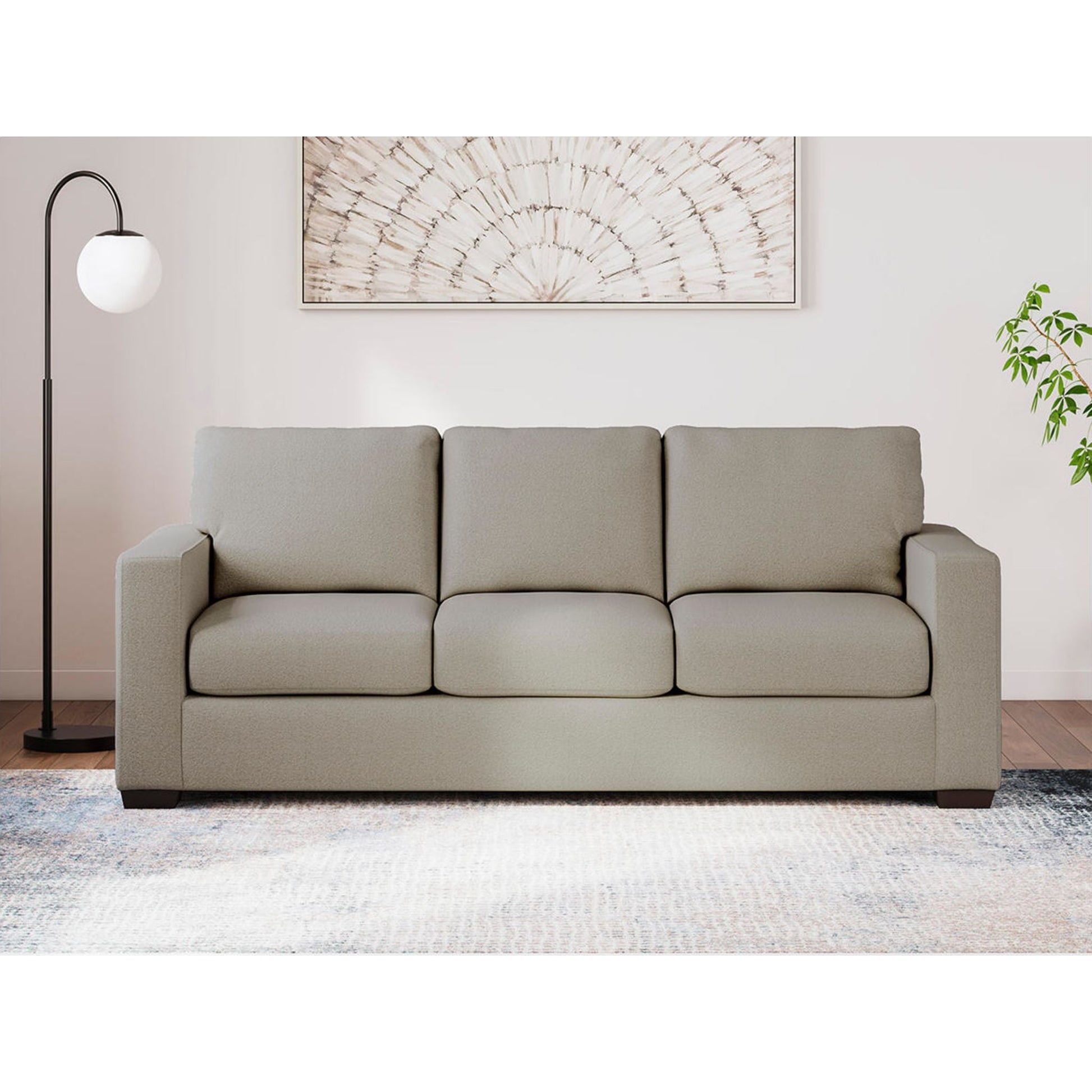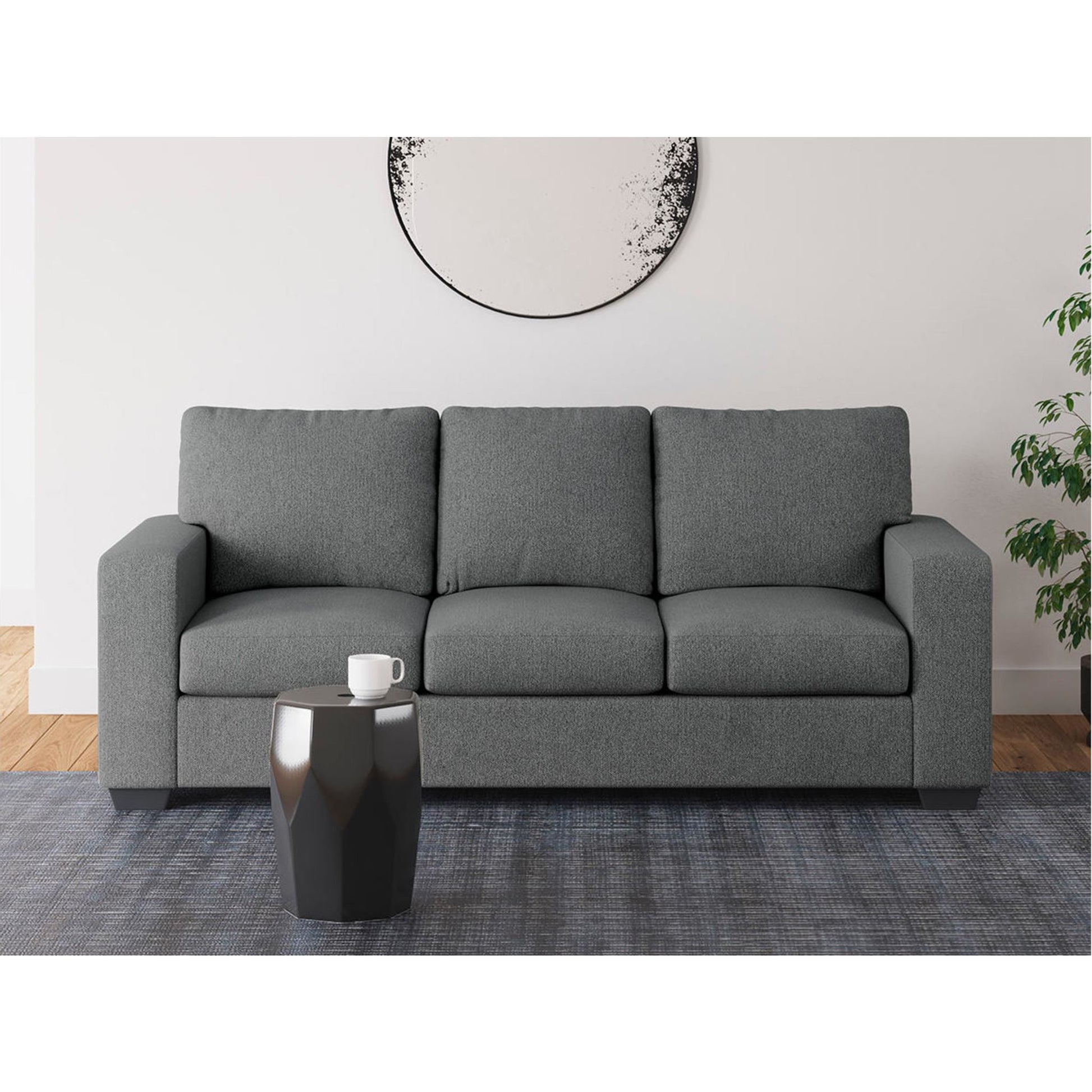 Ce canapé vous promet un séjour agréable. Ses assises confortables sont recouvertes d'un revêtement doux et texturé, et ses larges accoudoirs vous invitent à la détente absolue. Des coussins décoratifs aux motifs abstraits et vieillis apportent une touche de modernité tout en accentuant la couleur du canapé.