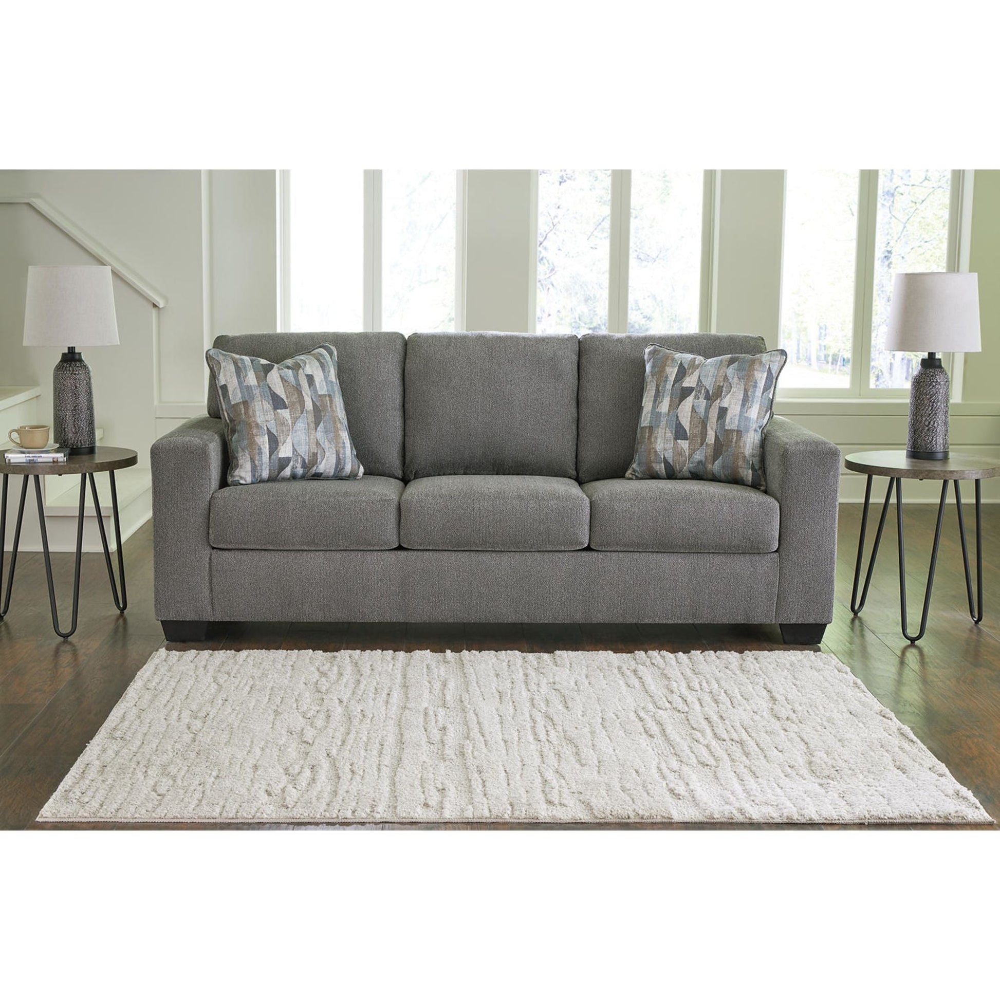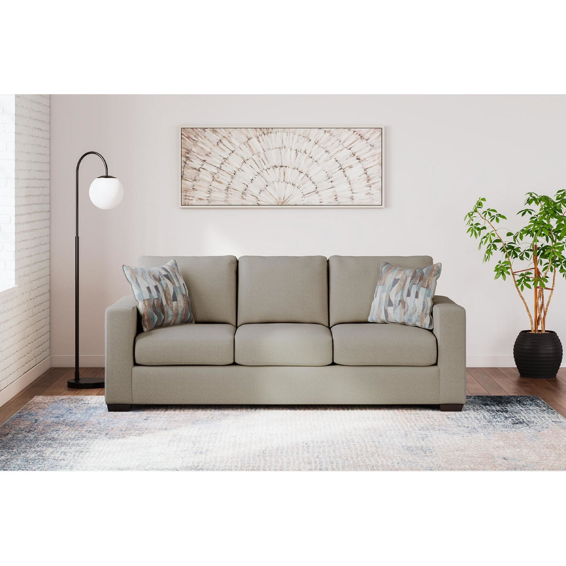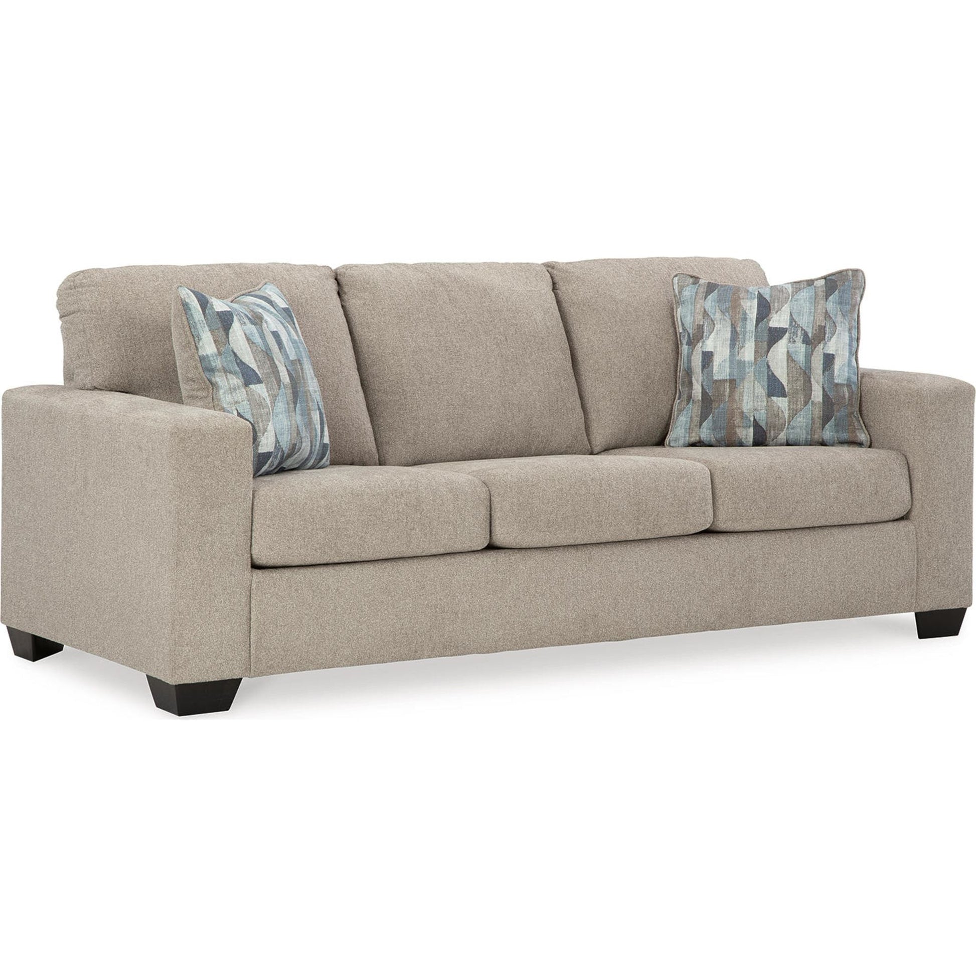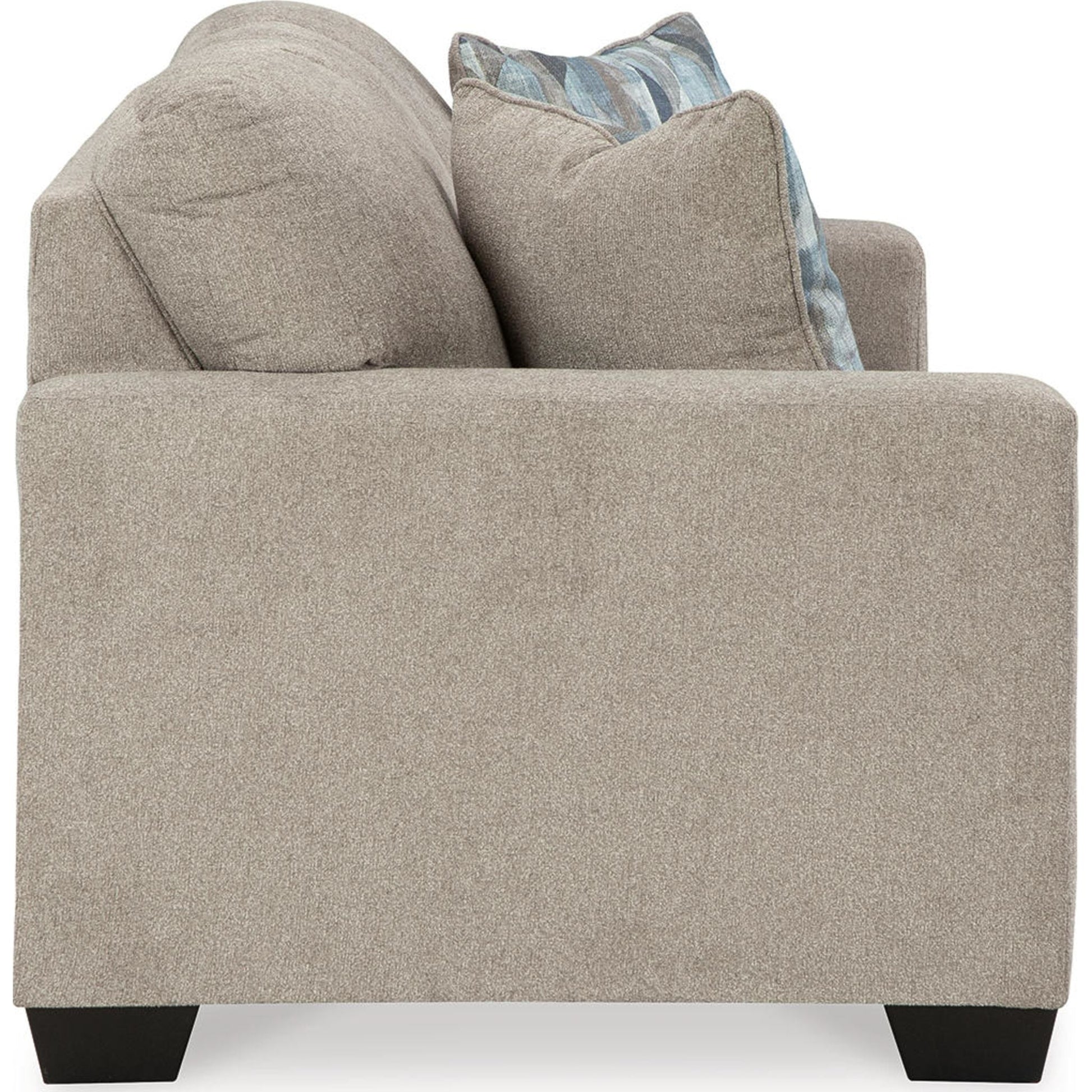 Ce canapé vous promet un séjour agréable. Ses assises confortables sont recouvertes d'un revêtement doux et texturé, et ses larges accoudoirs vous invitent à la détente absolue. Des coussins décoratifs aux motifs abstraits et vieillis apportent une touche de modernité tout en accentuant la couleur du canapé.