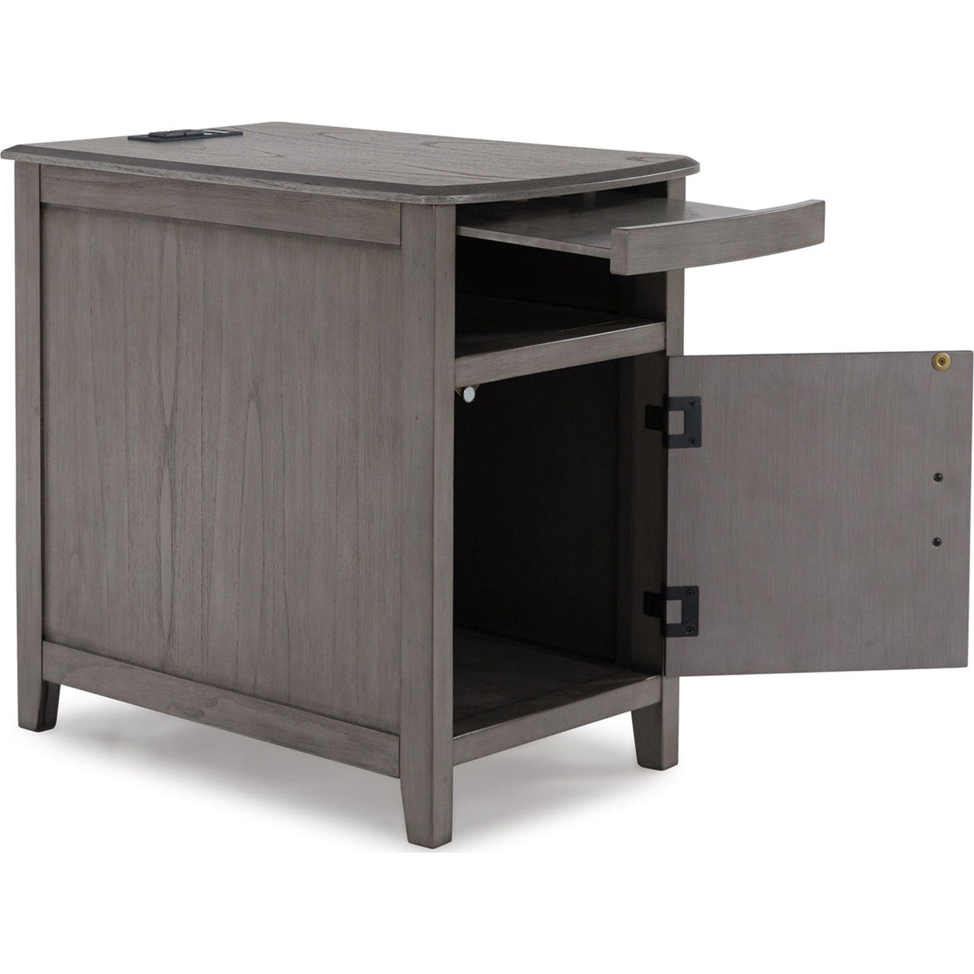 Cette table d'appoint est une démonstration tout simplement époustouflante de fonctionnalité à côté du canapé. Votre quotidien est optimisé grâce à un chargeur USB et un plateau coulissant pratique pour garder télécommandes et boissons à portée de main. Besoin d'espace de rangement supplémentaire ? Cette table est prête à accueillir vos besoins. Conçue pour un style de vie décontracté, elle devient instantanément un indispensable du quotidien.