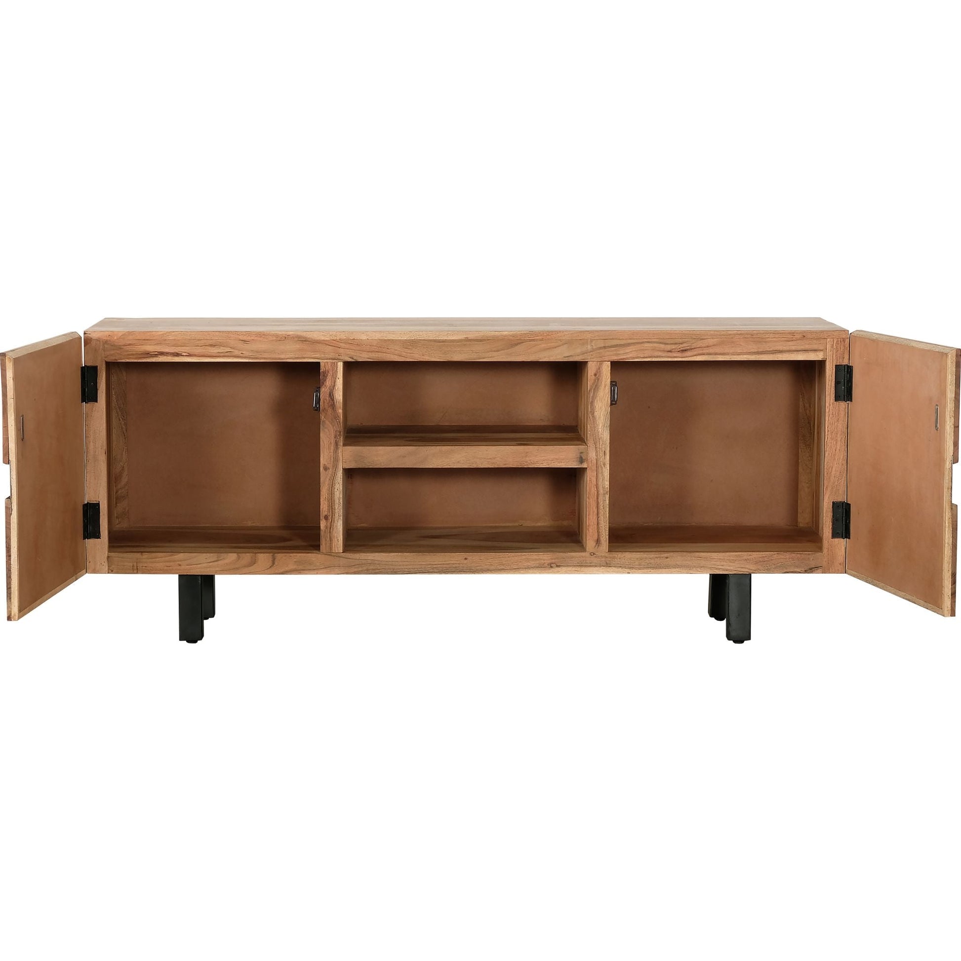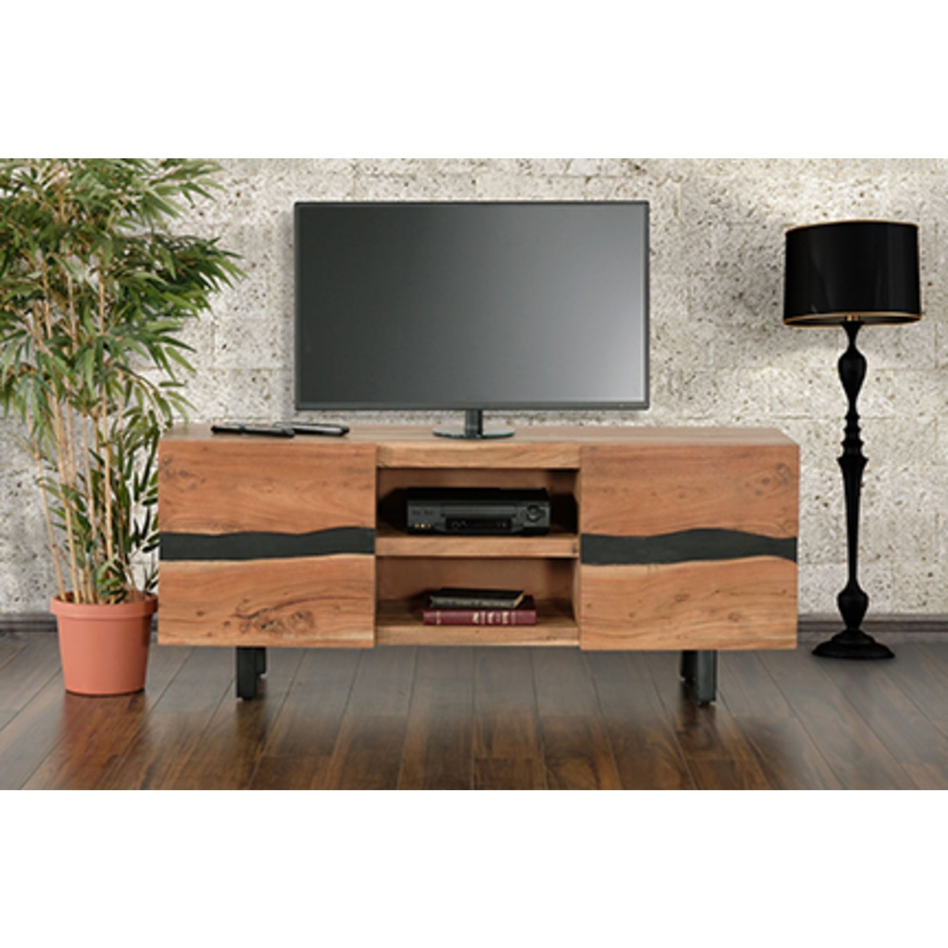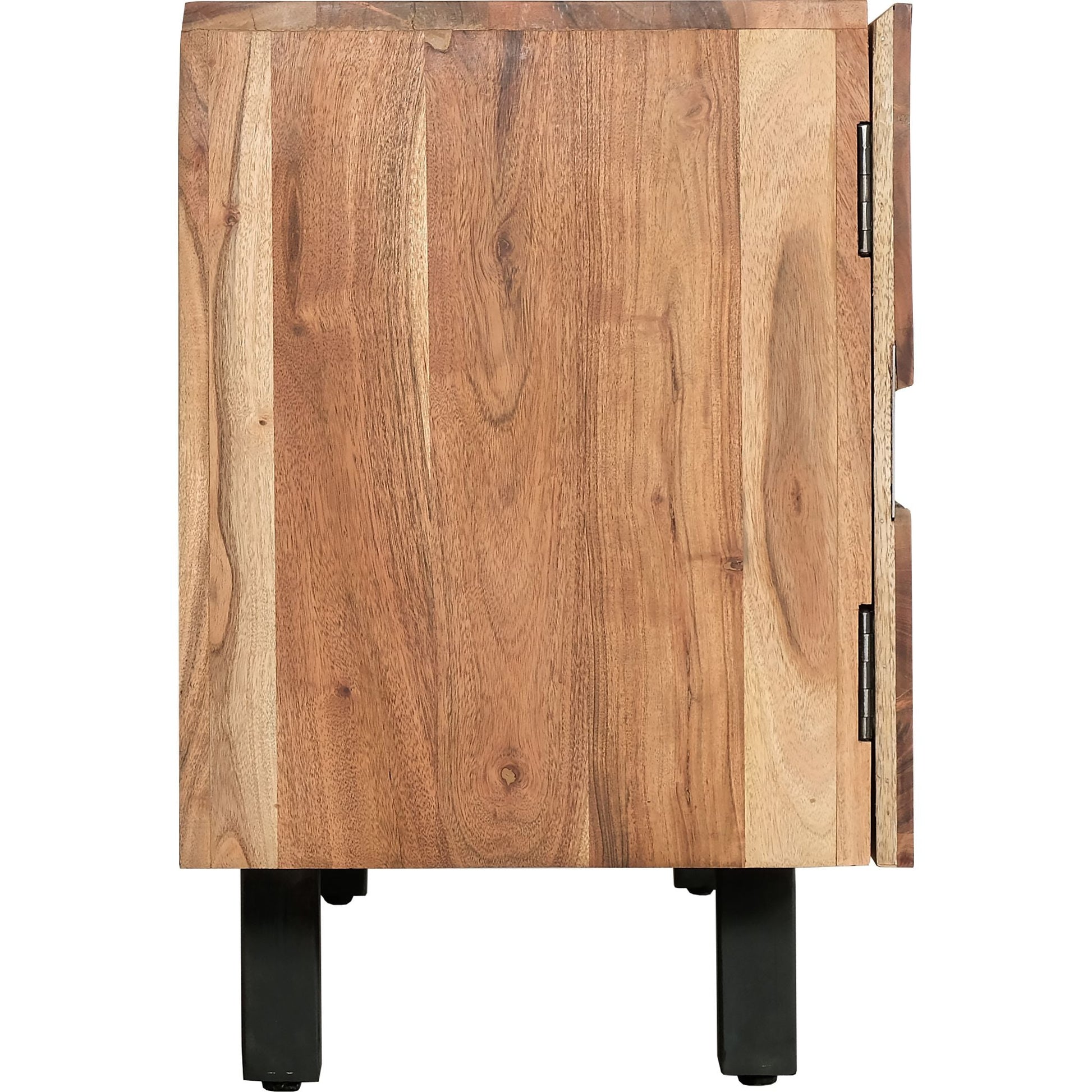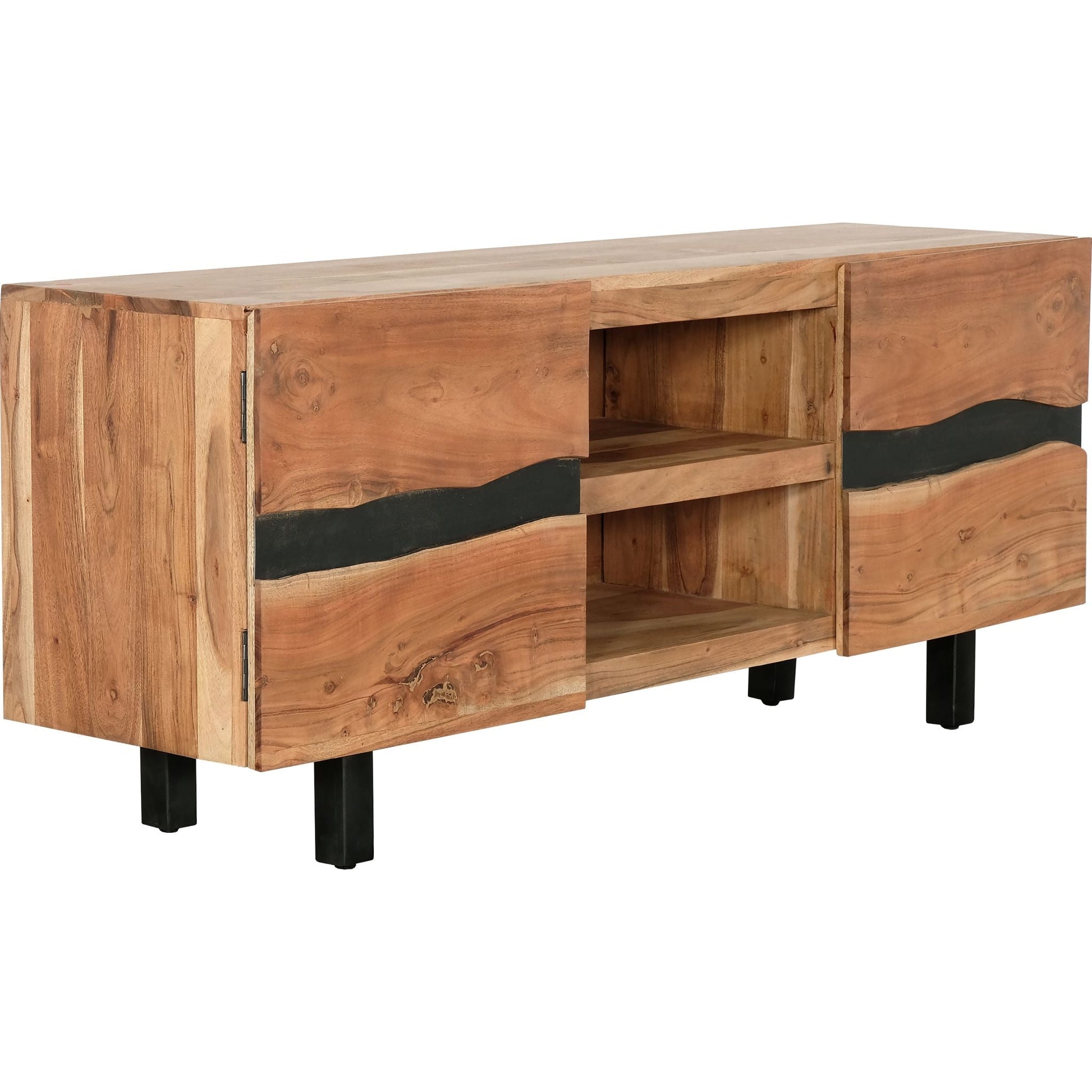 Son style industriel et rustique, ainsi que son généreux espace de rangement, font de la console multimédia en bois un meuble attrayant et pratique, idéal pour votre salon ou votre salle de divertissement. Fabriquée en bois d'acacia écologique, cette console de salon de 160 cm présente les imperfections, nœuds, fissures et couleurs naturelles du bois, lui conférant charme et caractère. Le meuble TV offre une surface suffisamment grande pour accueillir un téléviseur grand écran, deux armoires pour ranger tous vos essentiels de divertissement et deux étagères pour vos appareils préférés. Polyvalente, la console en bois d'acacia de 160 cm s'harmonisera avec votre espace et votre décoration.