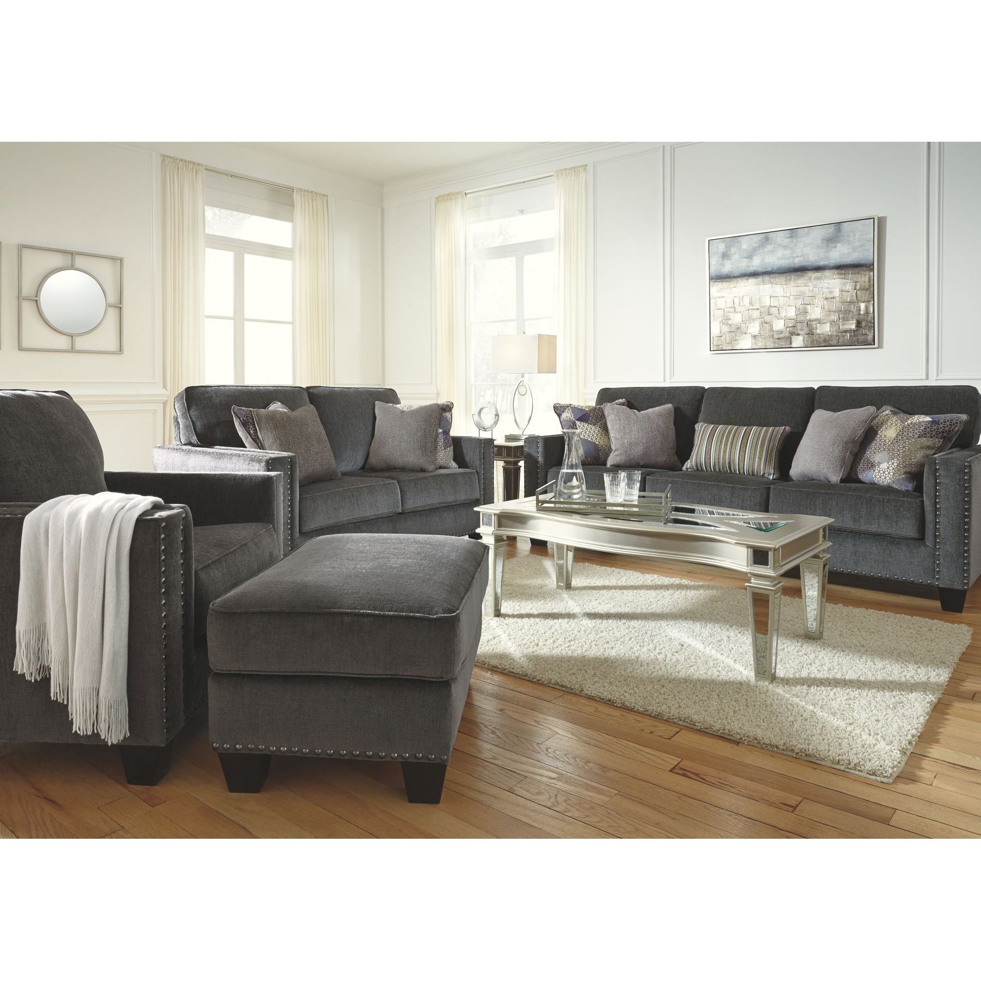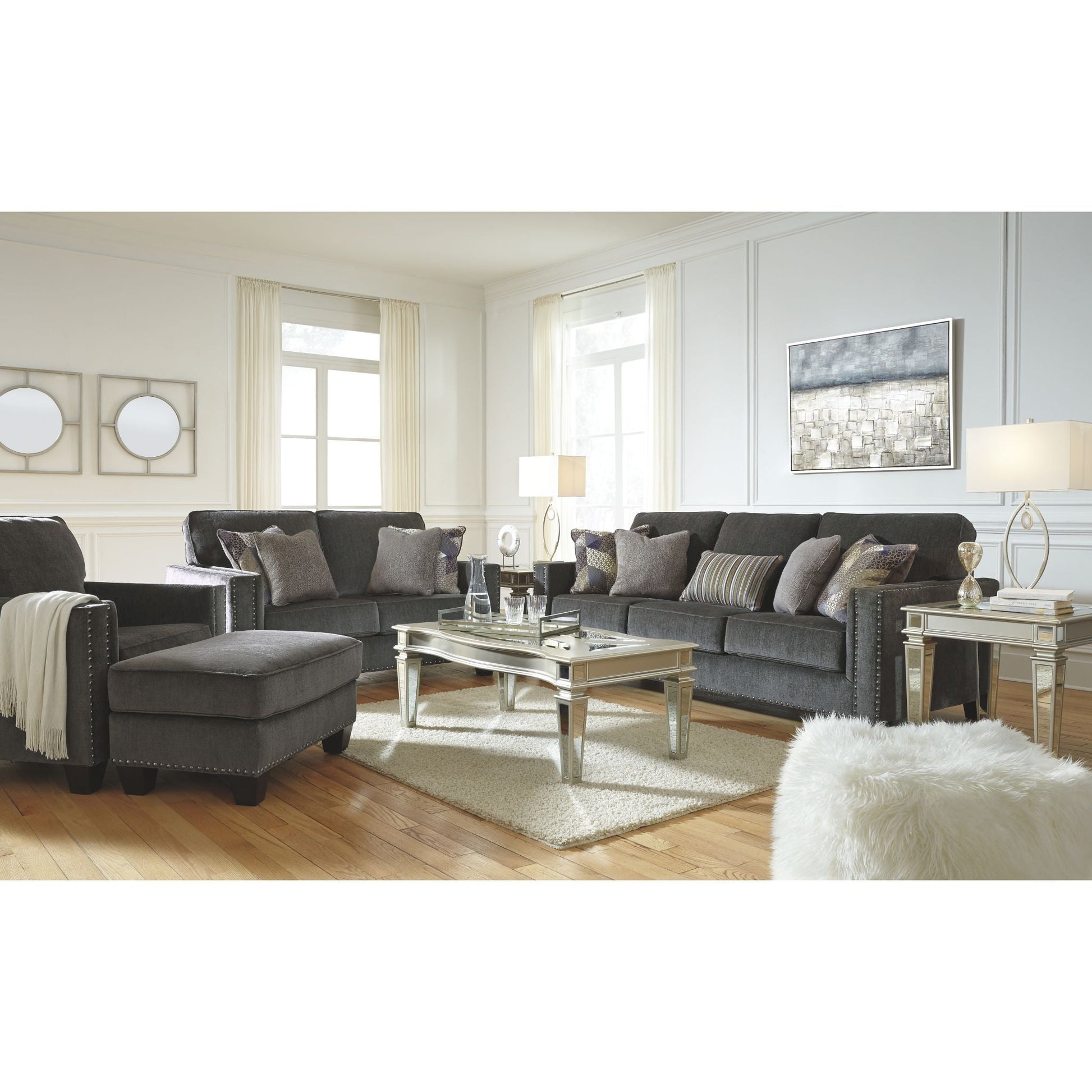 Envie de gris ? Trouvez le confort, le style et la sophistication dont vous avez besoin avec ce pouf design. Son revêtement gris fumé est somptueusement doux au toucher et parfaitement tendance. Ses lignes épurées, ponctuées de clous noirs ton nickel, confèrent à ce magnifique pouf gris une touche contemporaine et tendance.