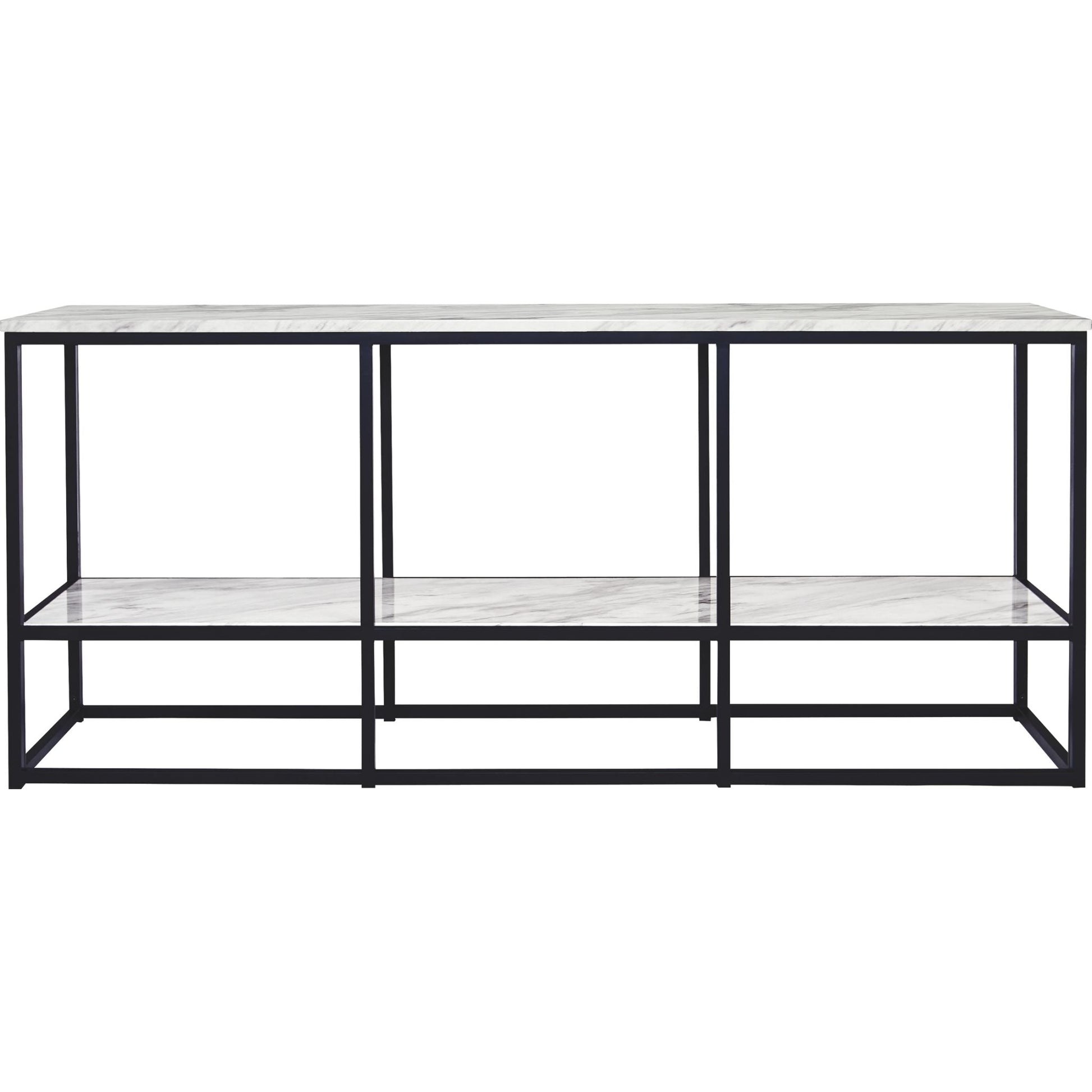 Qu'il s'agisse d'embellir votre espace de divertissement, d'embellir une entrée ou un bureau, ce meuble TV élégant et spacieux offre de nombreuses possibilités. Son association élégante de faux marbre de Carrare et de métal noir linéaire est une véritable prouesse en matière de design ouvert.