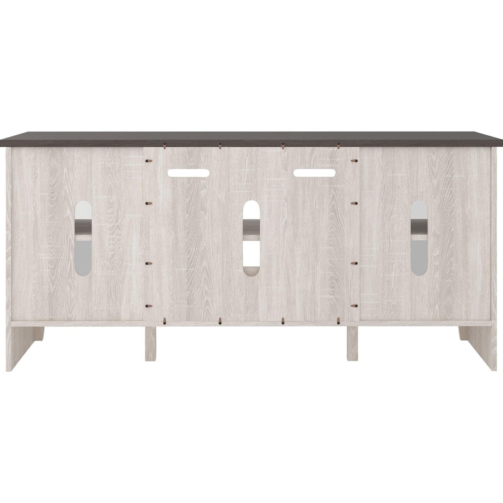 Avec sa finition bicolore et son charme minimaliste, ce meuble TV avec cheminée s'accorde parfaitement avec votre style décontracté. Conçu pour accueillir votre équipement multimédia, il est équipé d'étagères réglables, de découpes pour la gestion des câbles et de deux portes vitrées qui rehaussent son esthétique épurée. Son style est idéal pour les maisons de campagne modernes et les intérieurs contemporains.