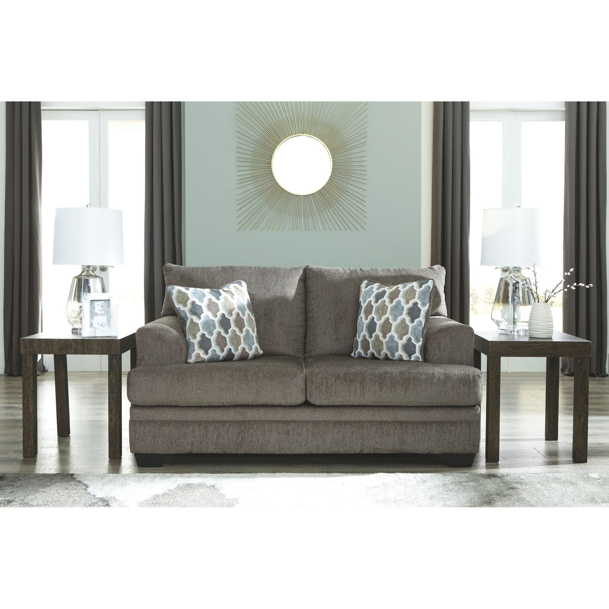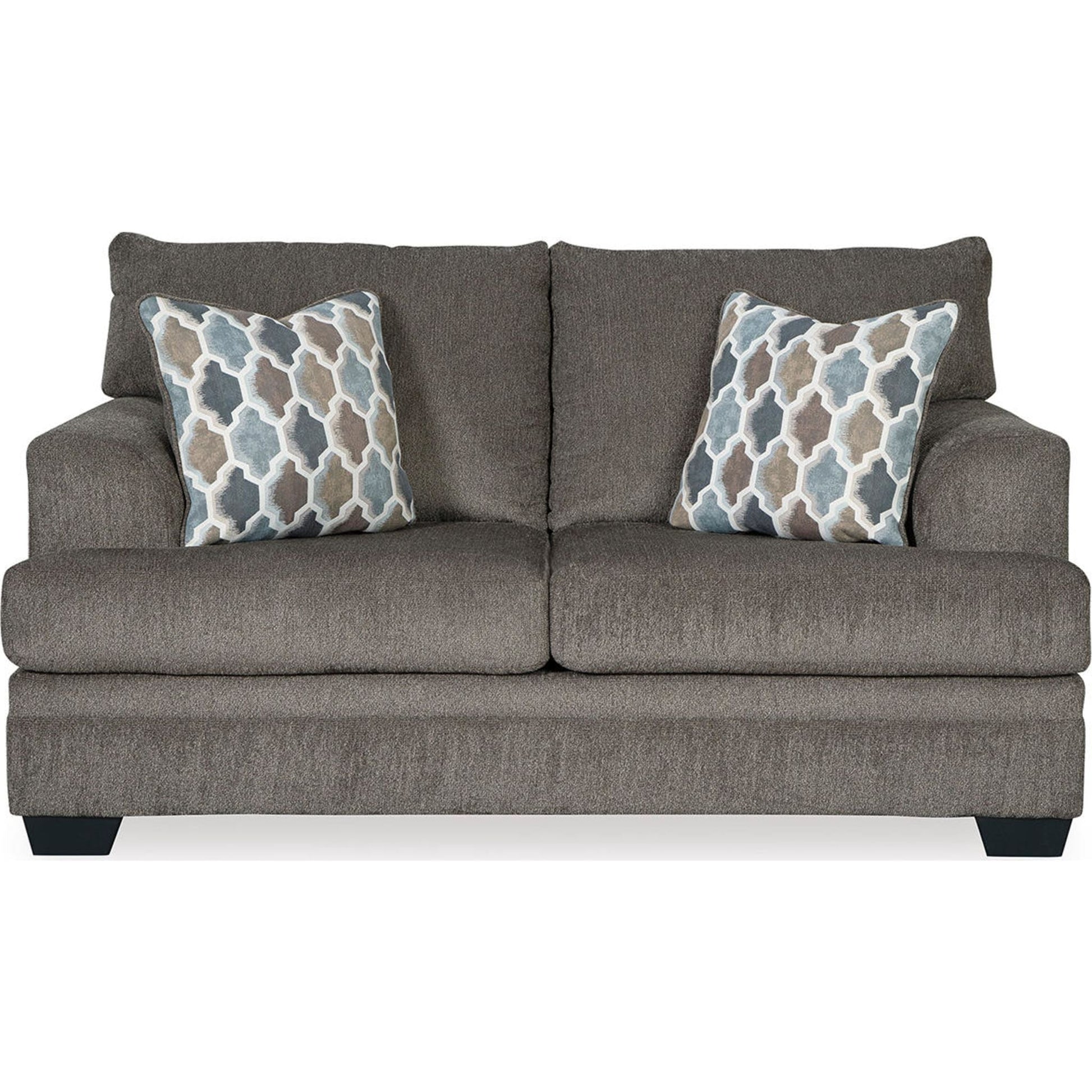 Ce canapé contemporain allie confort et élégance. Des coussins moelleux au tissu gris texturé, il est idéal pour la détente. Les coussins à motifs bleu, marron et beige complètent parfaitement le revêtement somptueux et neutre.