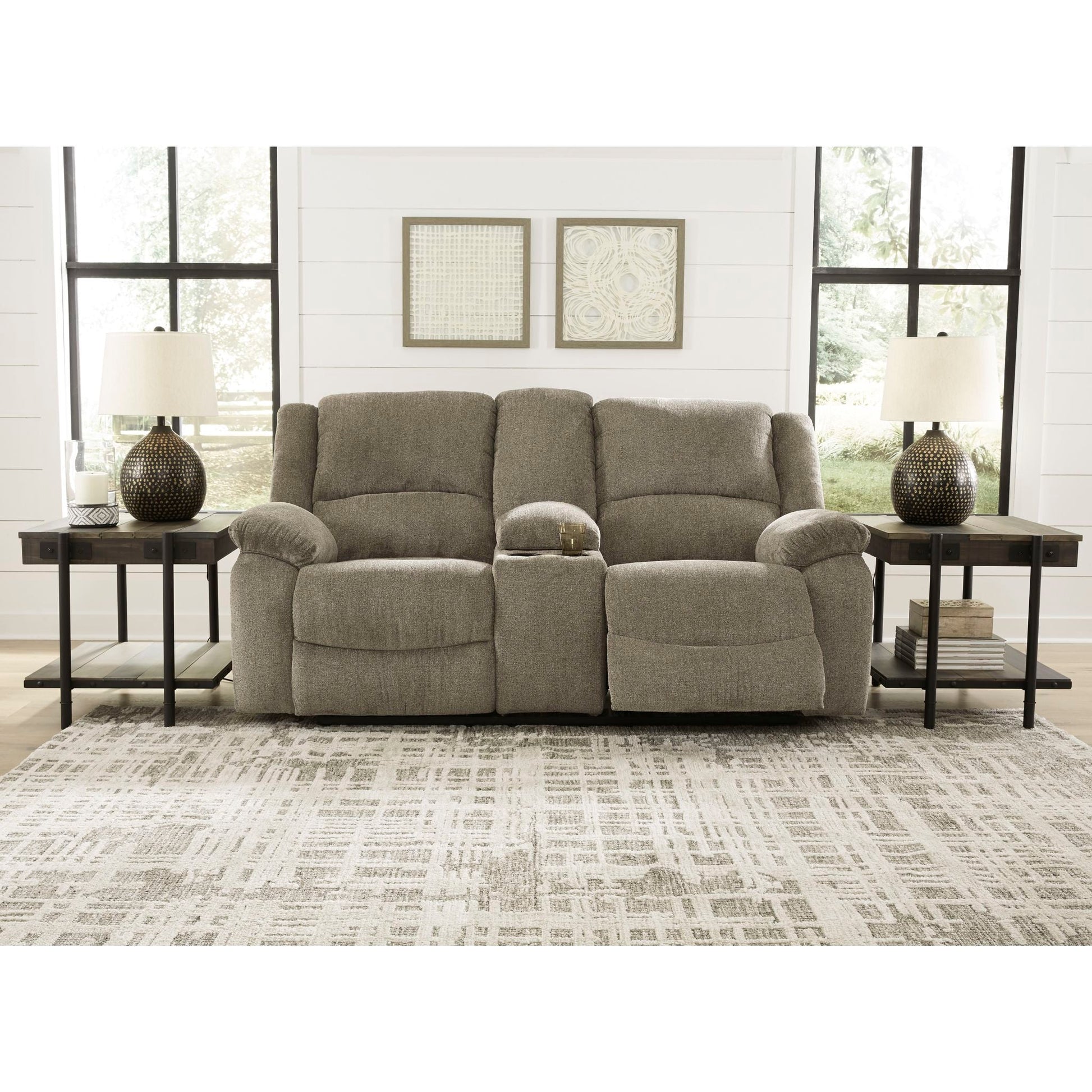 Causeuse inclinable électrique Draycoll avec console - Étain