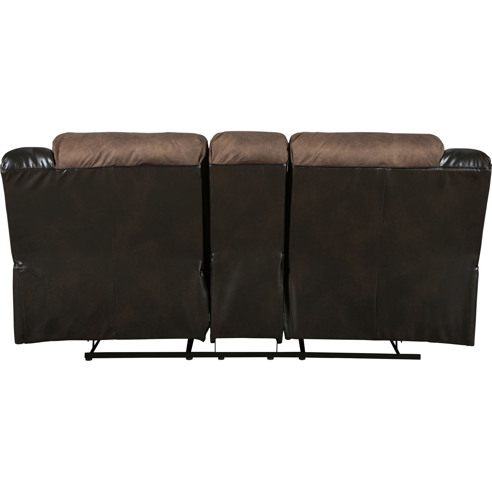 Avec cette causeuse inclinable, chaque jour est une bonne journée. Détendez-vous et oubliez vos soucis en vous laissant bercer par la douceur du tissu imitation daim. Besoin de plus de confort et de soutien ? Optez pour l'assise profonde et le dossier haut. Les surpiqûres contrastées apportent une touche d'élégance aux coussins. Rangez facilement boissons et petits objets du salon dans la console centrale avec porte-gobelets.