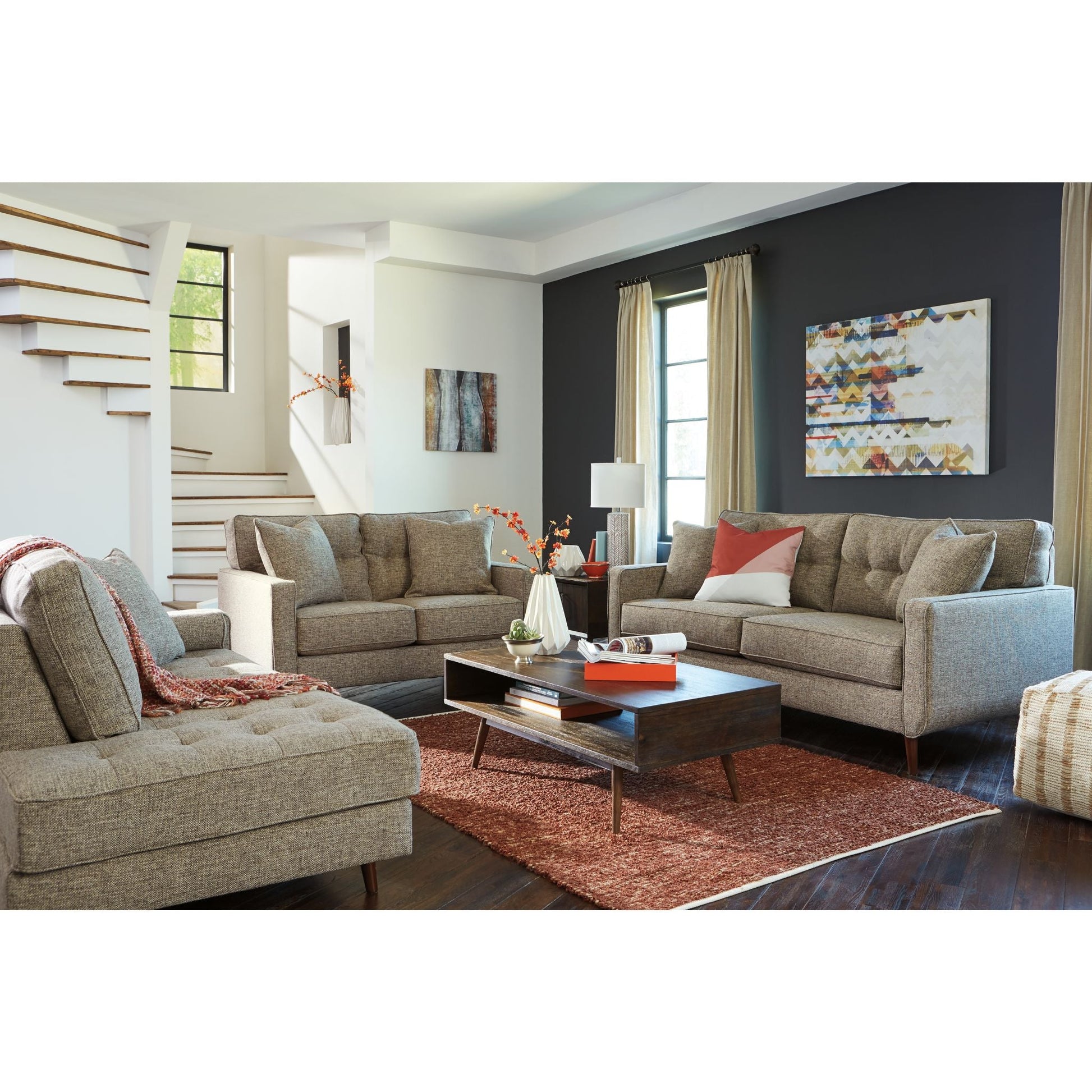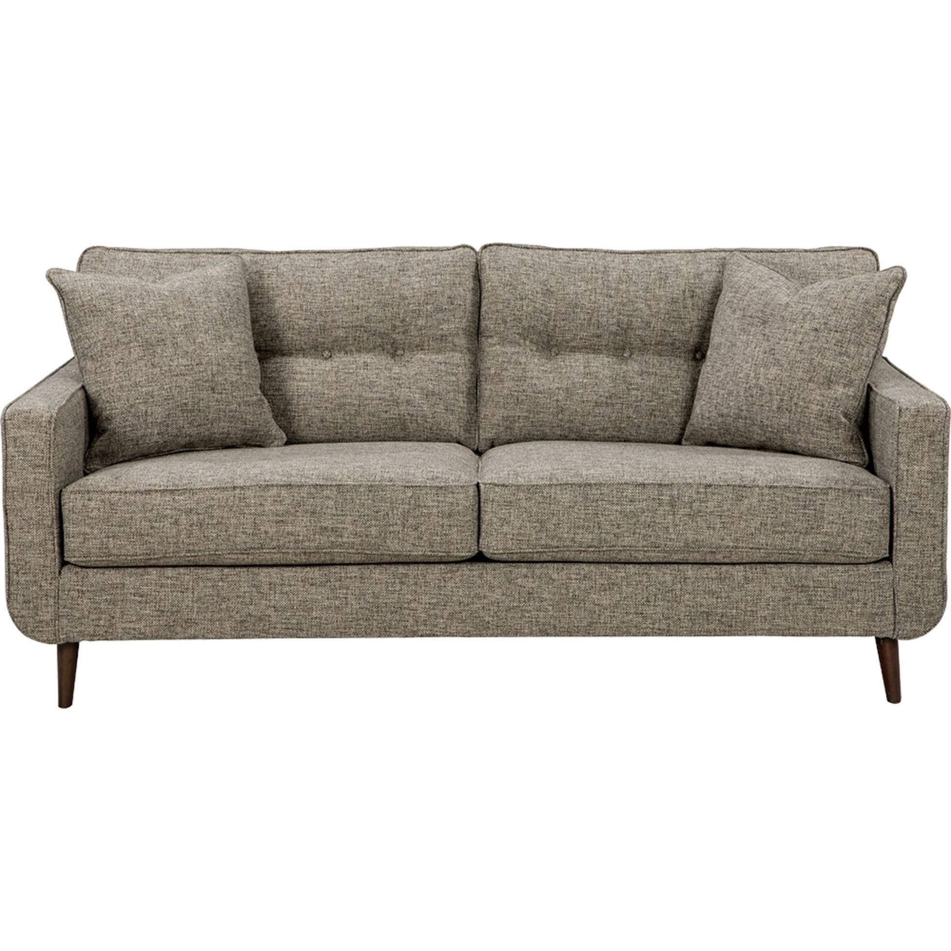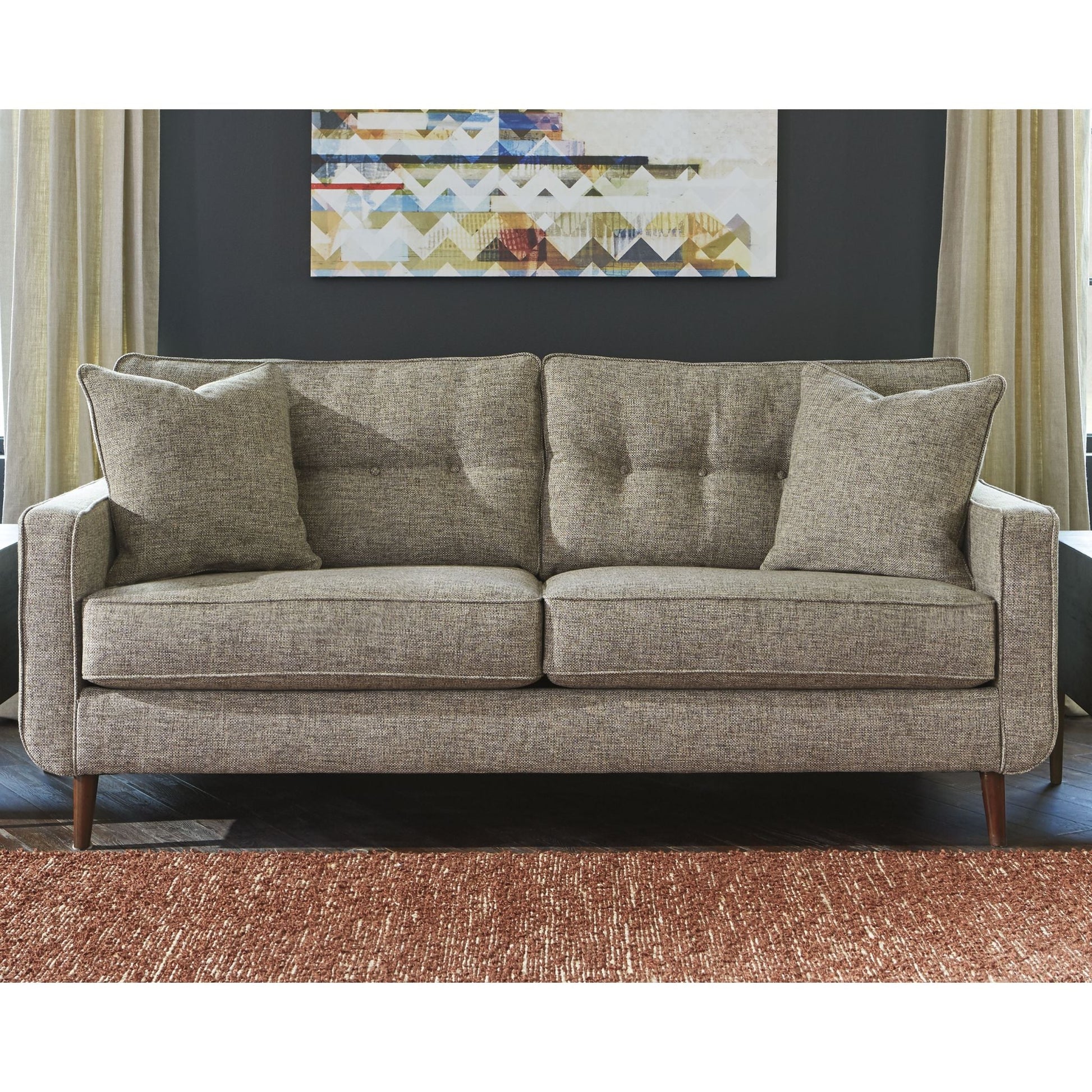 Laissez-vous séduire par le design du milieu du siècle avec ce canapé inspiré. Avec sa coupe impeccable et ajustée, son tissu d'inspiration masculine, son capitonnage subtil et ses pieds chevilles évasés, il incarne le style rétro-chic par excellence.